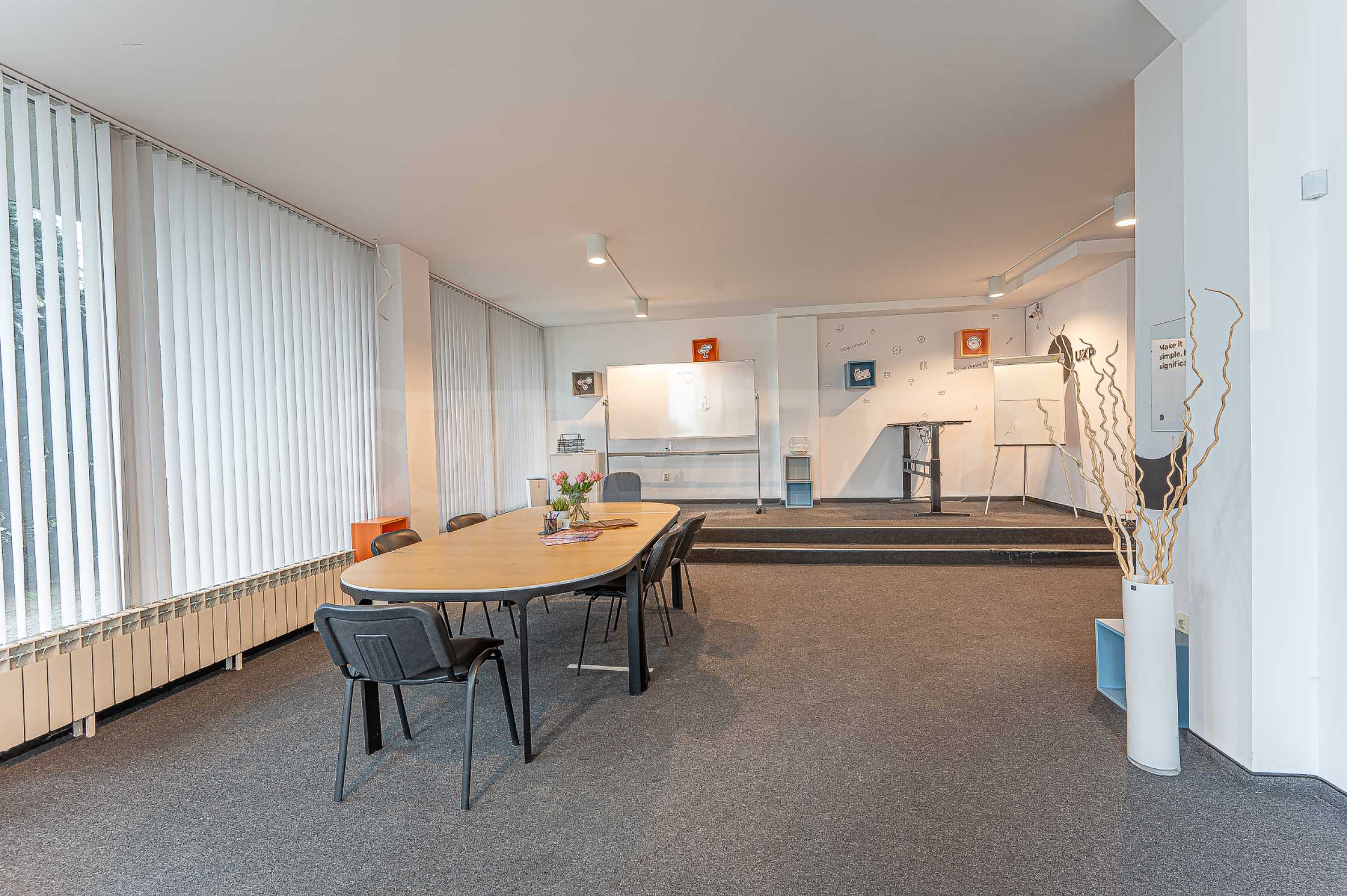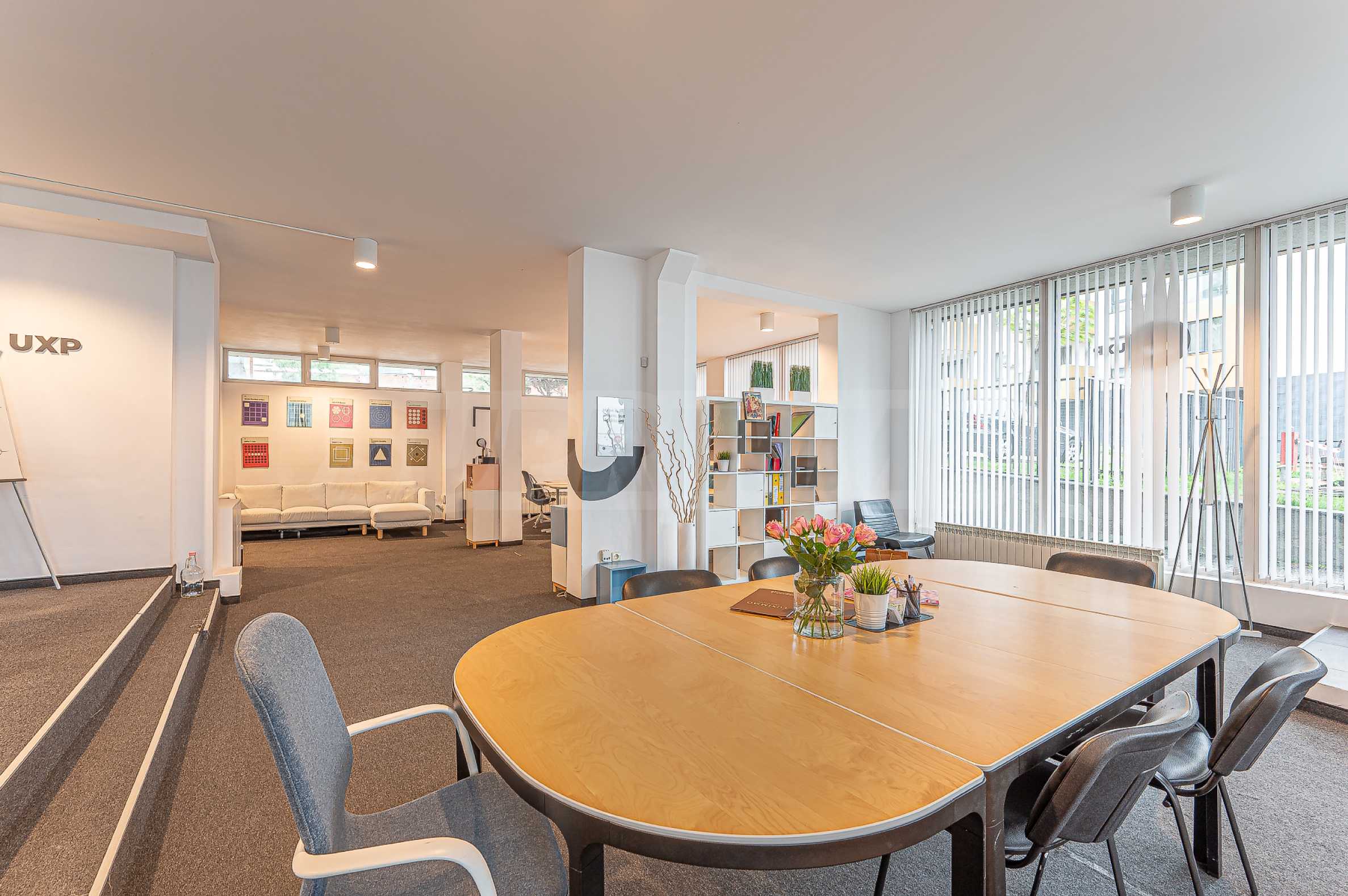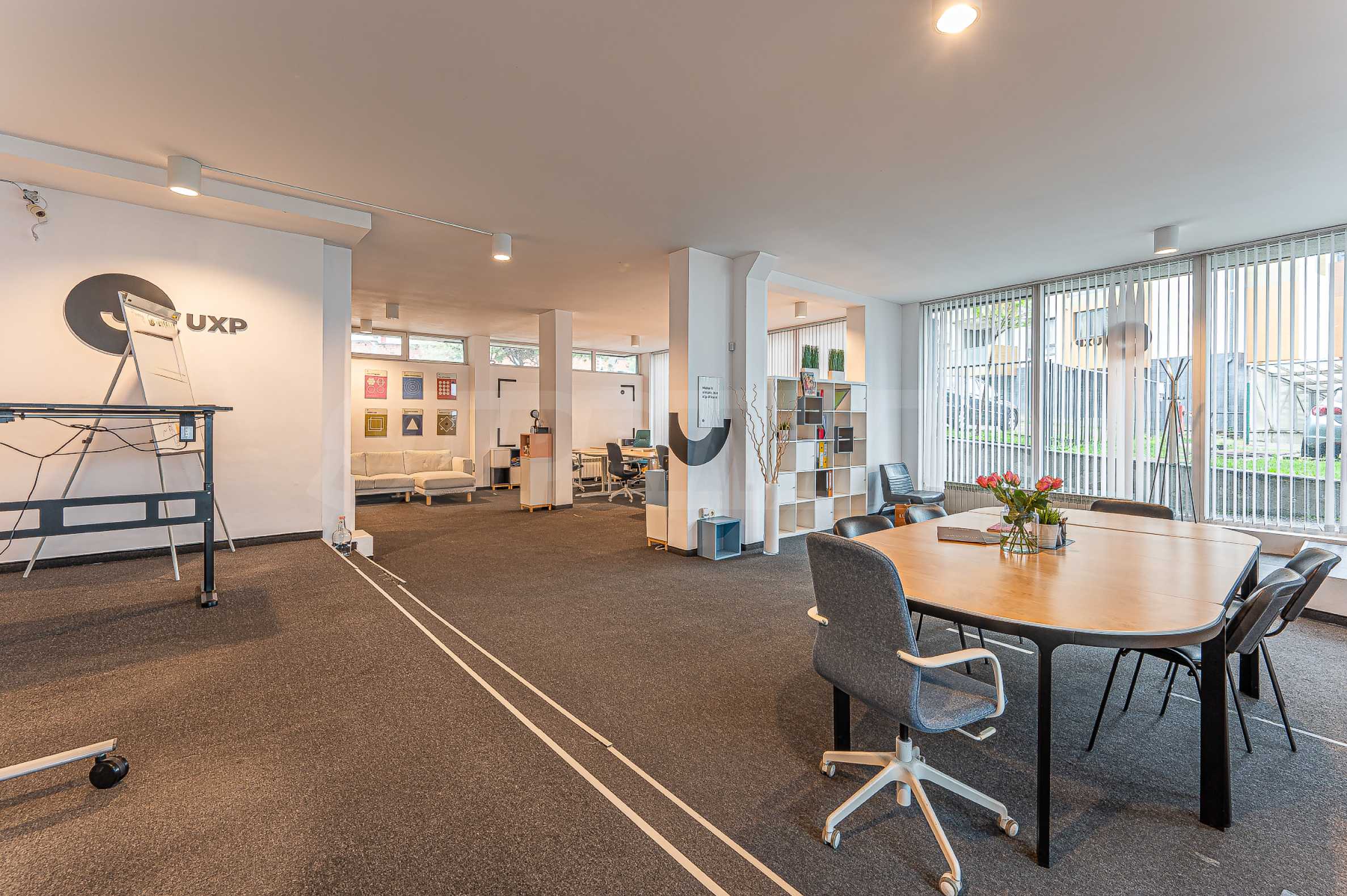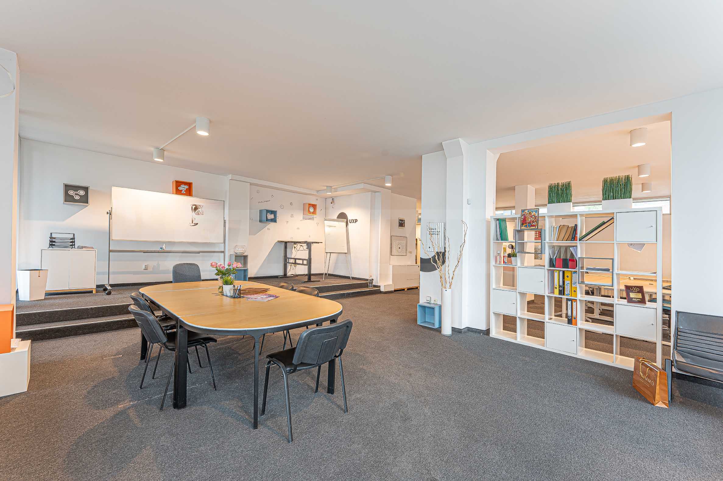 Офис продается полностью меблированным. Есть возможность организовать более удобный для вас способ, а также разместить больше рабочих мест, а также разделить их перегородками. Одно свойство, позволяющее использовать разные макеты и варианты использования.