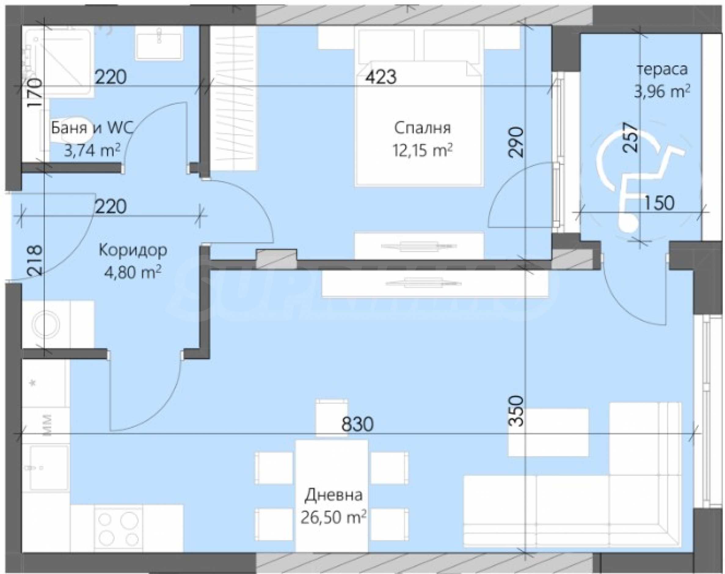 Квартира сдается в состоянии, готовом к застройке в соответствии с Болгарским гражданским кодексом: