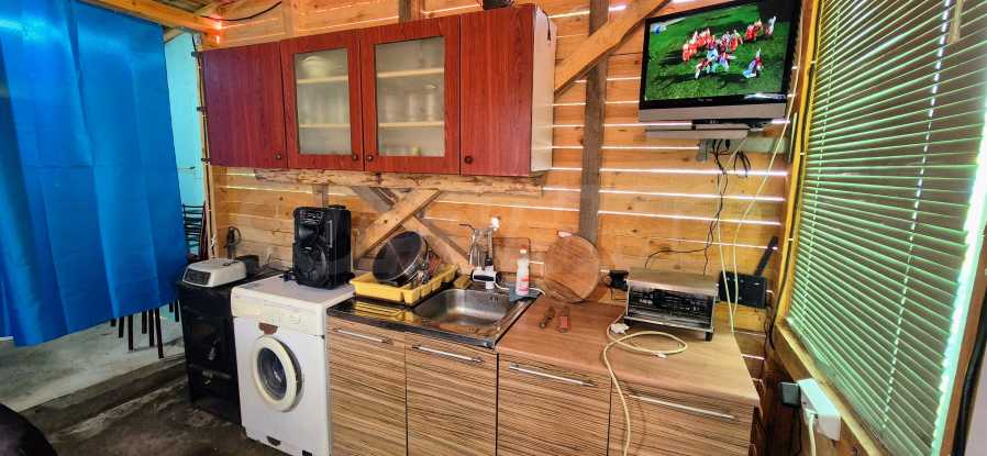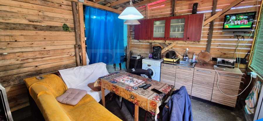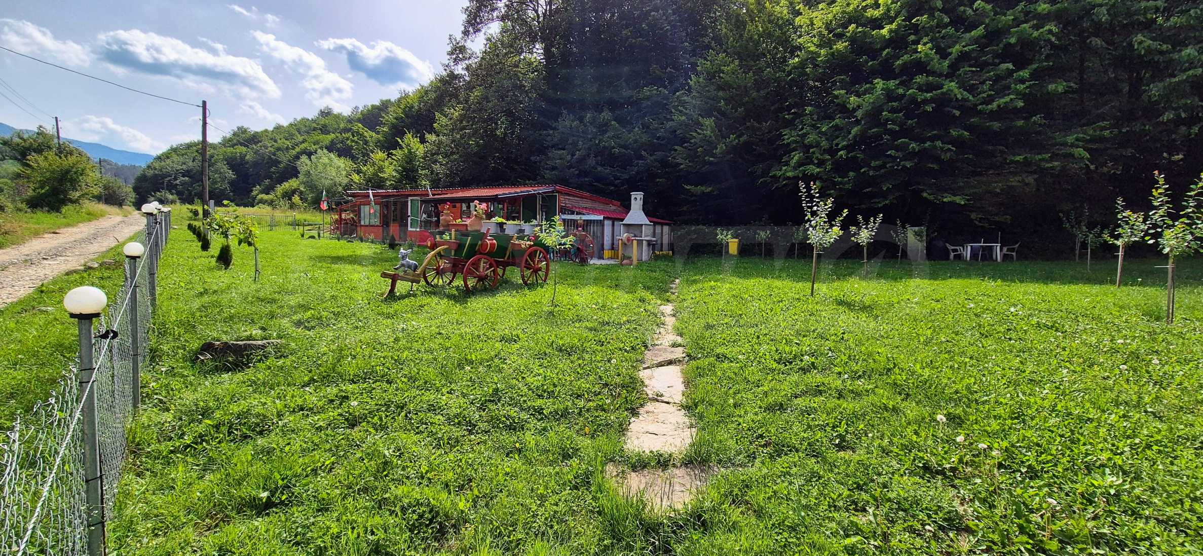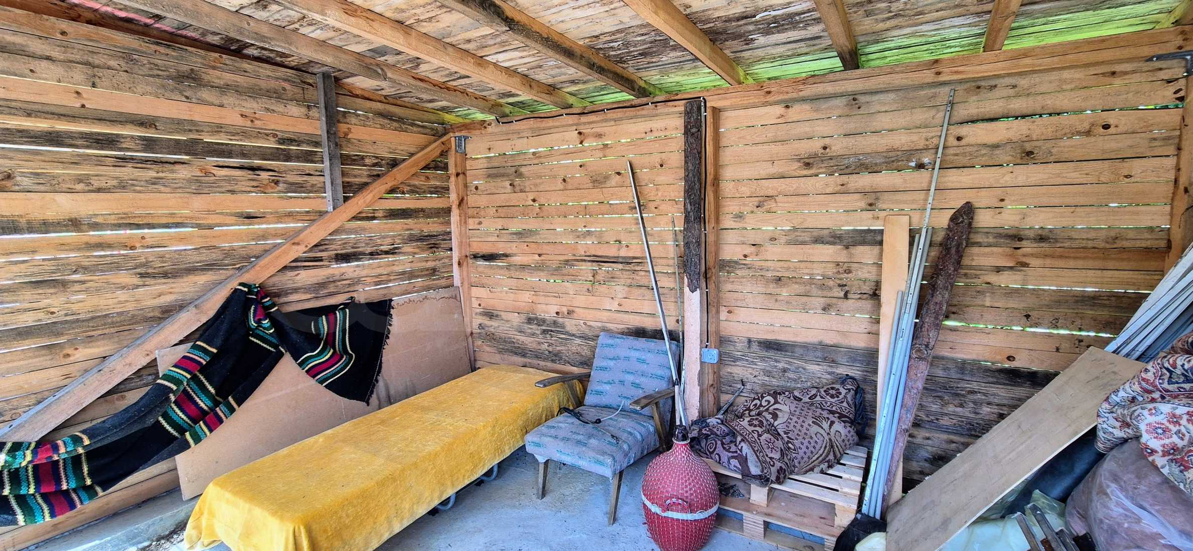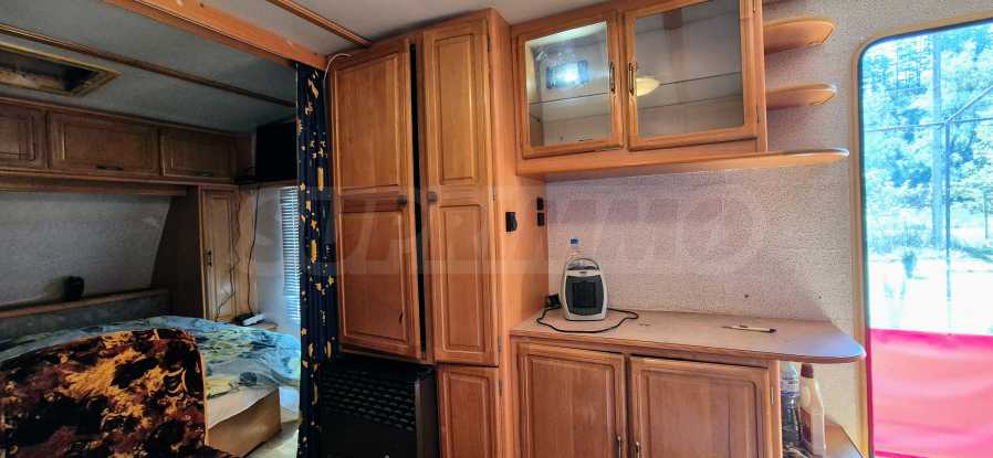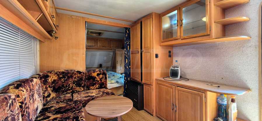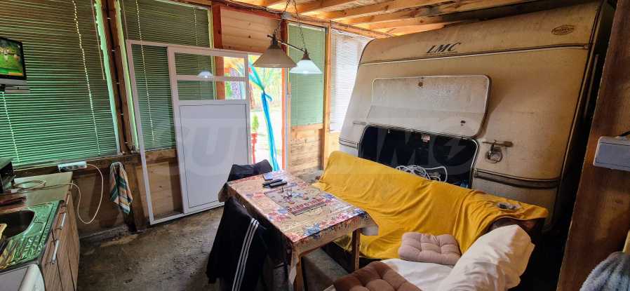 Участок площадью 800 квадратных метров (земля сельскохозяйственного назначения, «лугового» типа использования), на нем размещен фургон длиной 7,60 м с двумя кроватями, кухонным уголком и диваном-кроватью. Вокруг каравана построено деревянное строение со следующими помещениями: кухня с обеденной зоной, комната, подходящая для гостиной, и ванная комната с туалетом. Также имеется: крытая терраса, навес для дров, летняя кухня-навес и мангал.