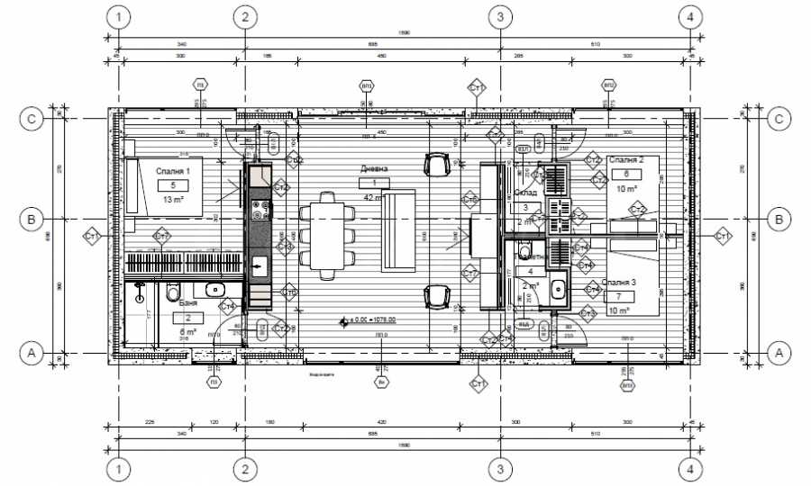 - Они состоят из одного жилого этажа с просторной гостиной и кухней с обеденной зоной. Дома типа B2 имеют три спальни и две ванные комнаты.