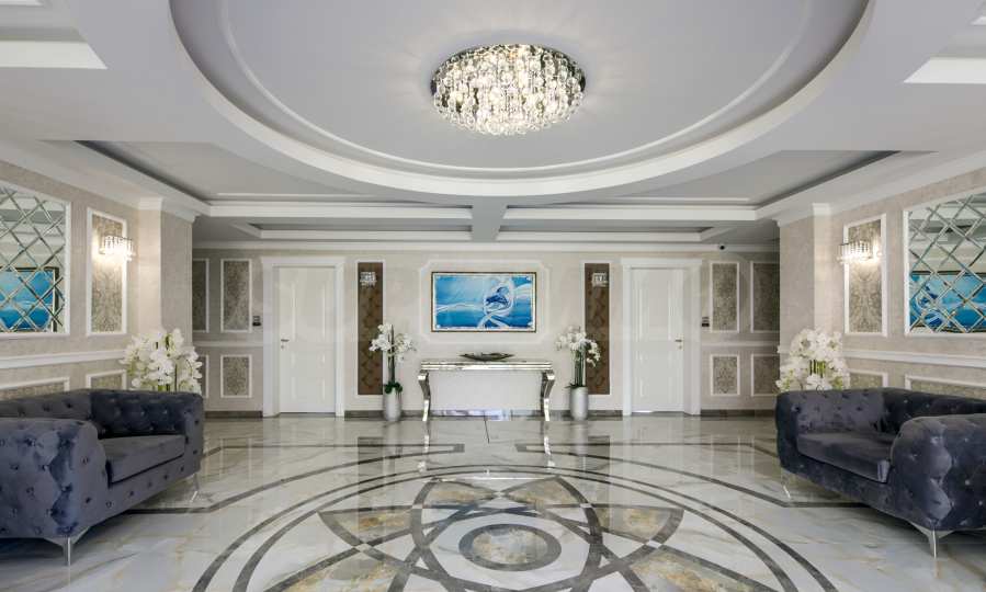 В корпусе «А» есть ресепшн, 2 роскошных 8-местных лифта, коммерческая недвижимость и апартаменты типа двухкомнатные, трехкомнатные, мезонеты и студии, подземная парковка и внешний доступ к круглогодичному ресторану, фитнес- и спа-центру. . Корпус «Б» предлагает 10 шт. таунхаусы, студии, апартаменты с двумя и тремя спальнями, два лифта на 8 человек и роскошный вестибюль.