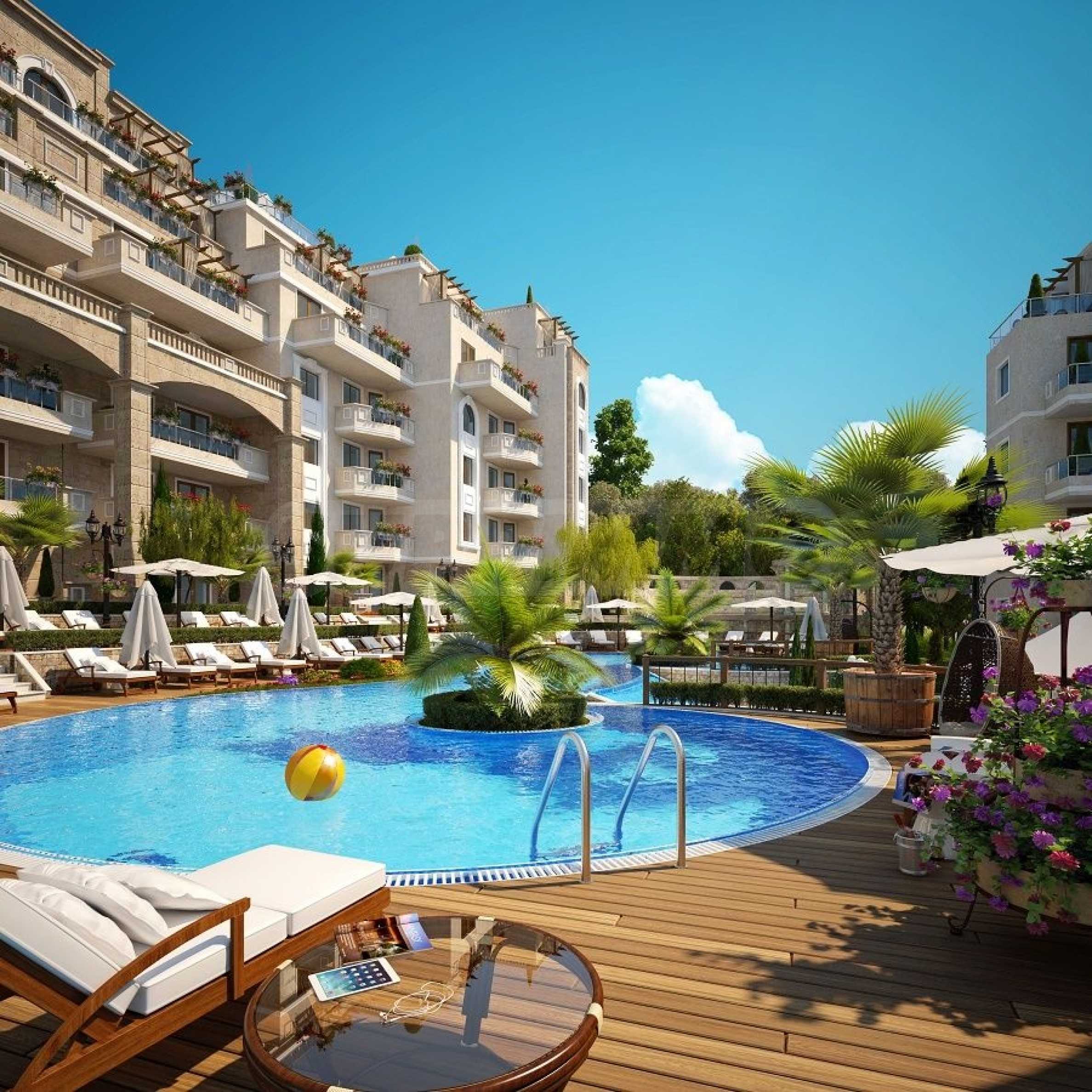 Представляем на продажу дизайнерскую двухкомнатную квартиру с парковочным местом в элегантном комплексе в 150 метрах от пляжа в Святом Власе.