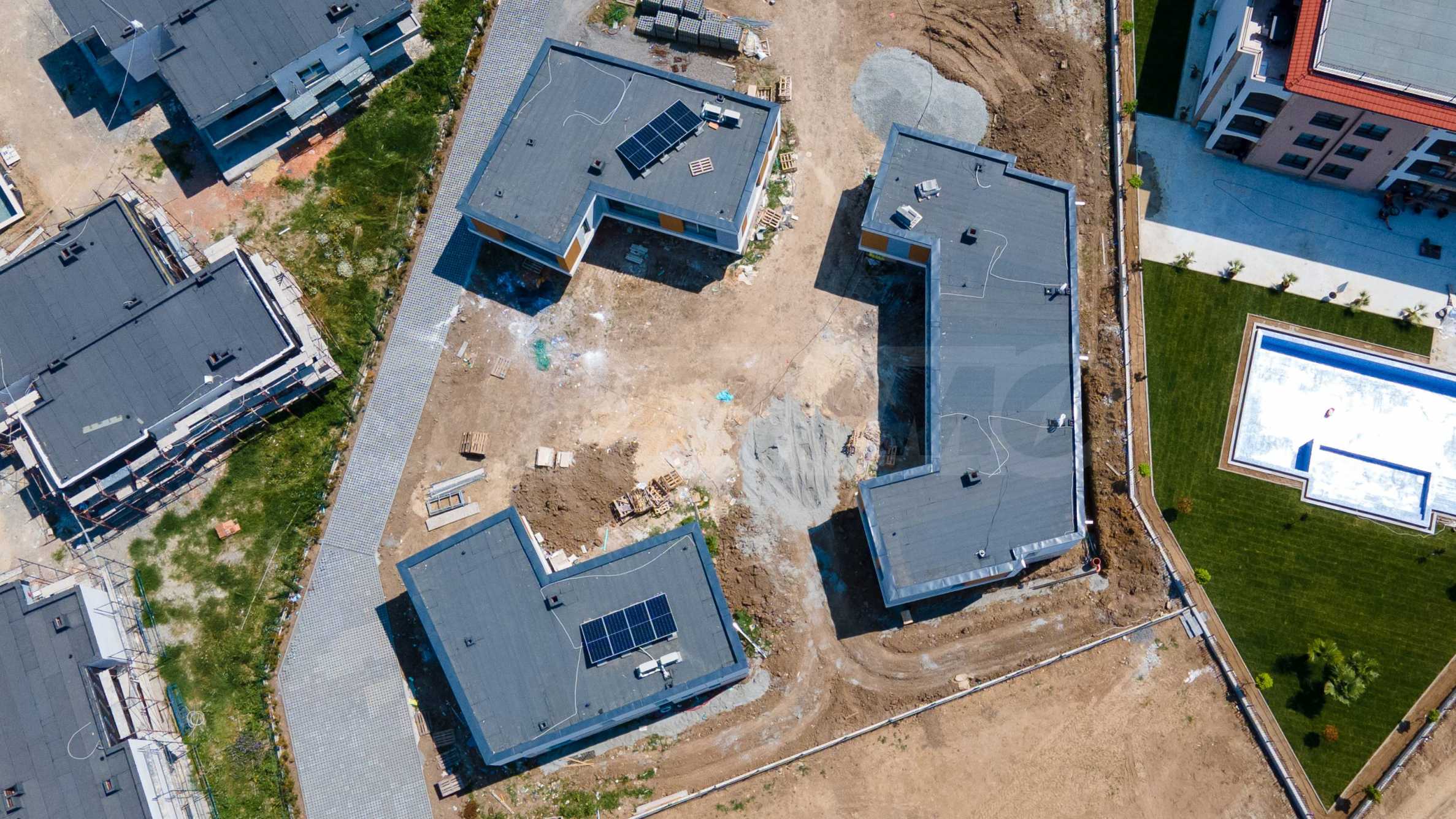 На участке 2650 кв. метров с прекрасно озелененной территорией расположены 4 дома, каждый застроенной площадью 188,30 кв. метров, с двумя парковочными местами каждый.