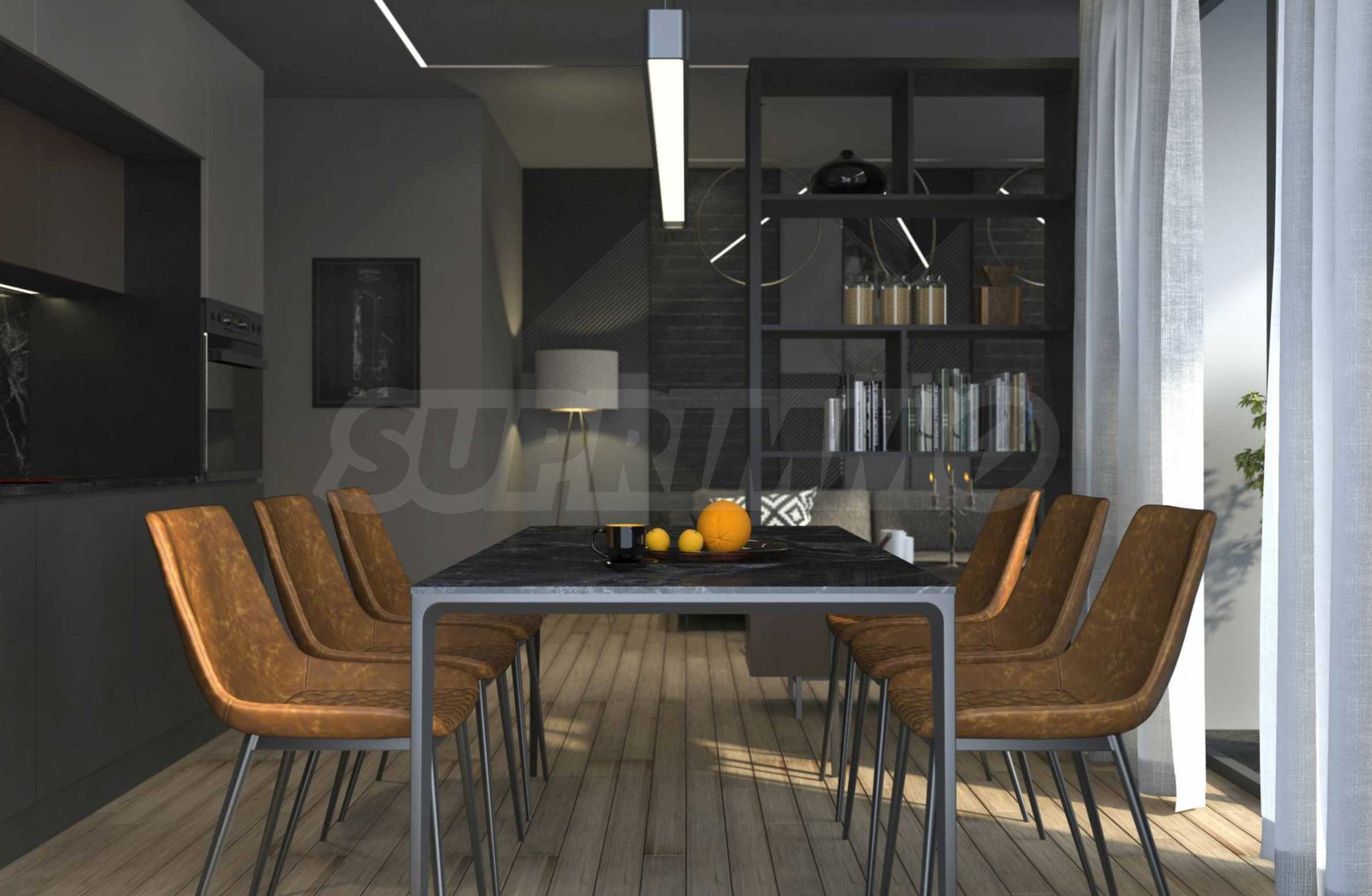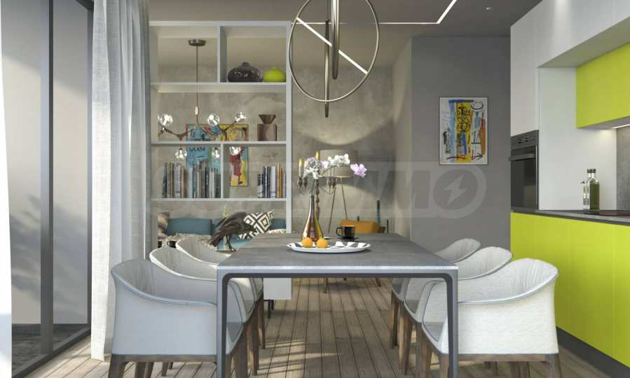 Квартиры представляют собой двух- и трехкомнатные дома, практичной планировки и просторных комнат. С каждого этажа открывается живописная морская панорама, а преобладающее воздействие дневного хода солнца, а также панорамные окна предполагают естественное освещение в жилищах.