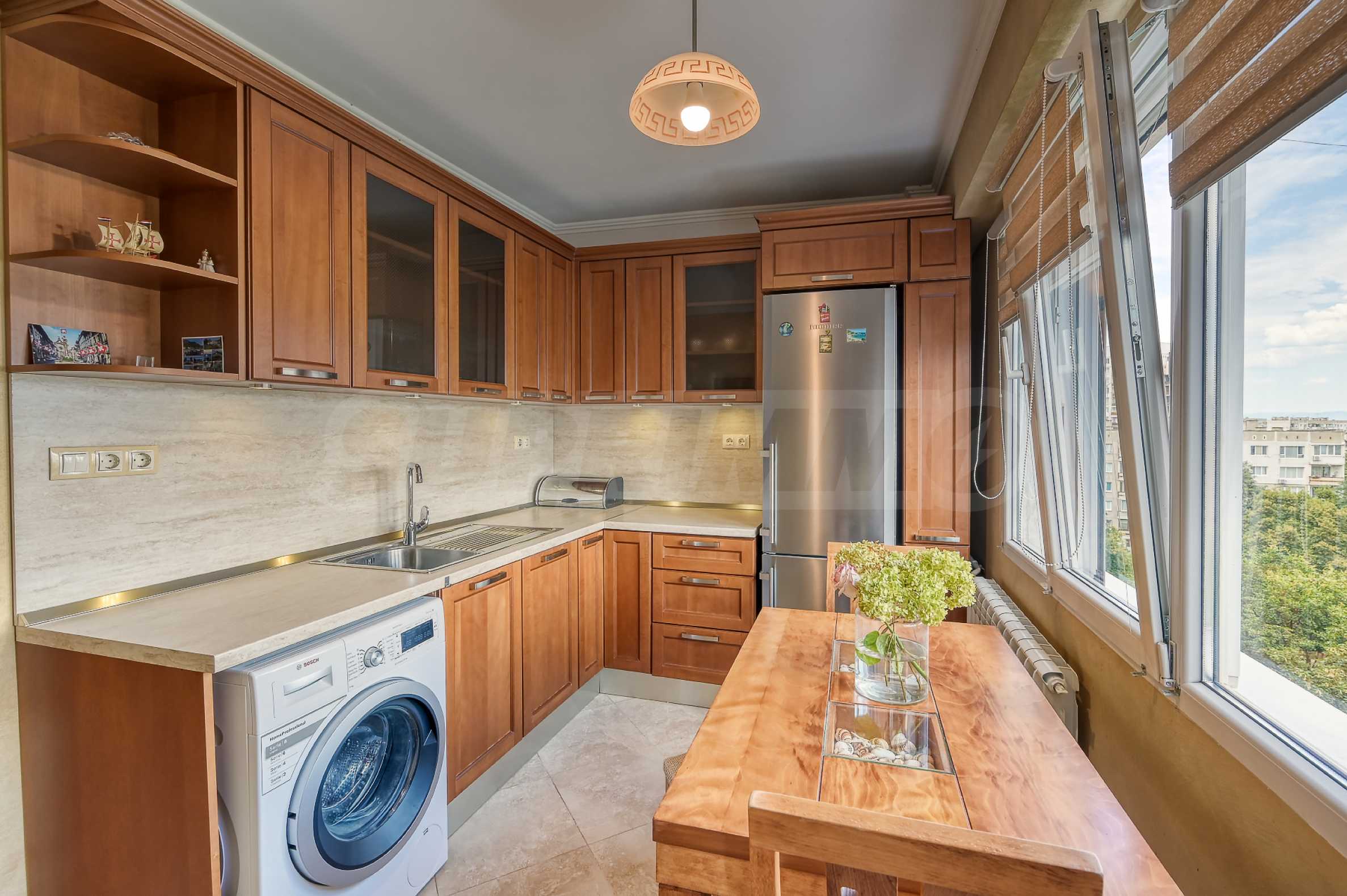В квартире два балкона, один из которых является продолжением кухни, а второй, ориентированный на юг, с видом на гору Витоша, представляет собой навес.