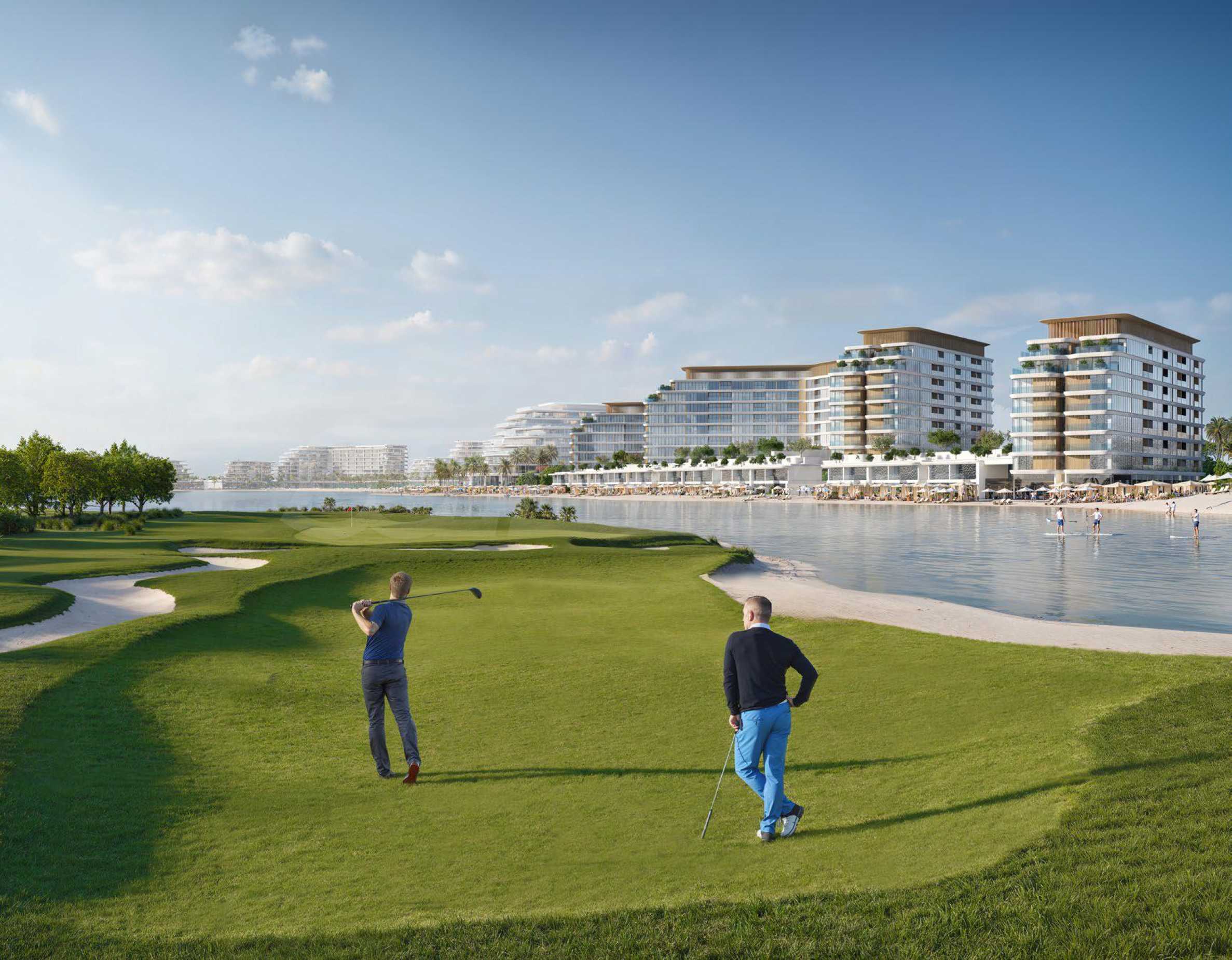 Что касается досуга, то на самом острове у вас будут безграничные возможности – на бульваре вдоль лагуны появятся магазины и рестораны на открытых террасах, где можно будет насладиться кофе или вкусной едой на свежем воздухе. Помимо пейзажного бассейна и прямого выхода на природный пляж, для любителей водных видов спорта остров предложит оживленную пристань, где можно покататься на лодке и насладиться различными водными развлечениями, исследуя прибрежные воды. Здесь также будет уникальное поле для гольфа на 18 лунок, смотровая площадка, экопарк, общественные центры и площадки для проведения мероприятий и многое другое. Важно отметить, что на острове Синия сохранится 46% открытой зеленой территории, что создаст спокойную атмосферу с нетронутыми пляжами, мангровыми зарослями и разнообразной дикой природой, включая газелей, ориксов, фламинго и редких черепах.