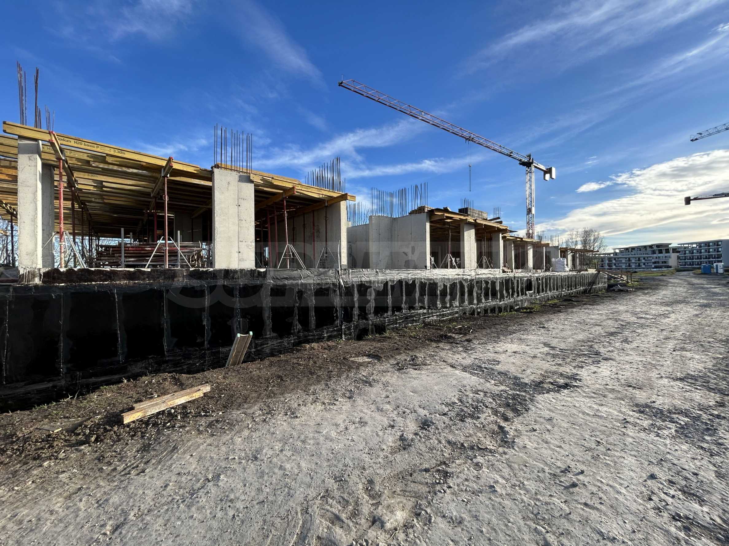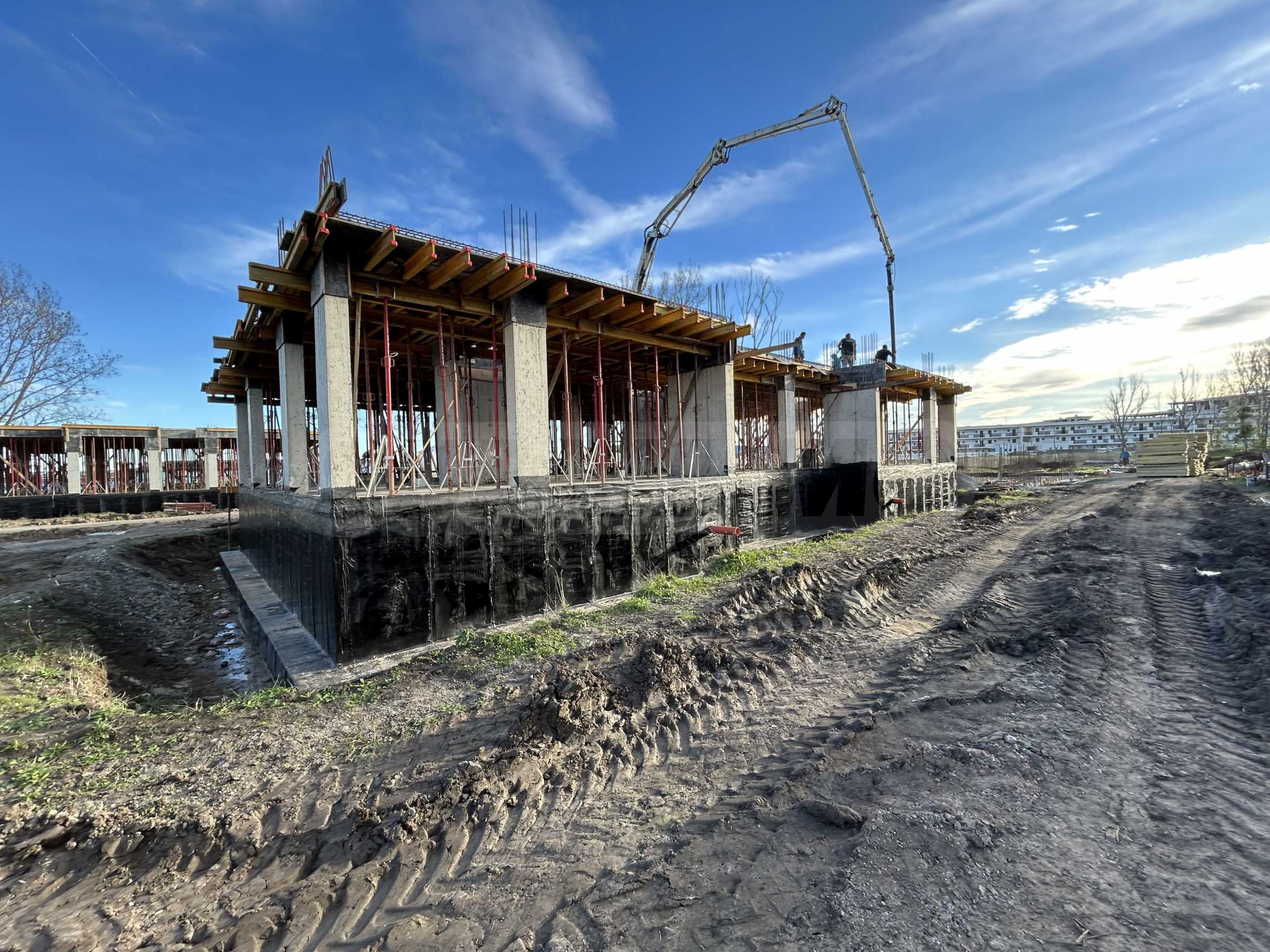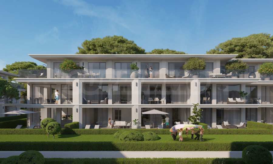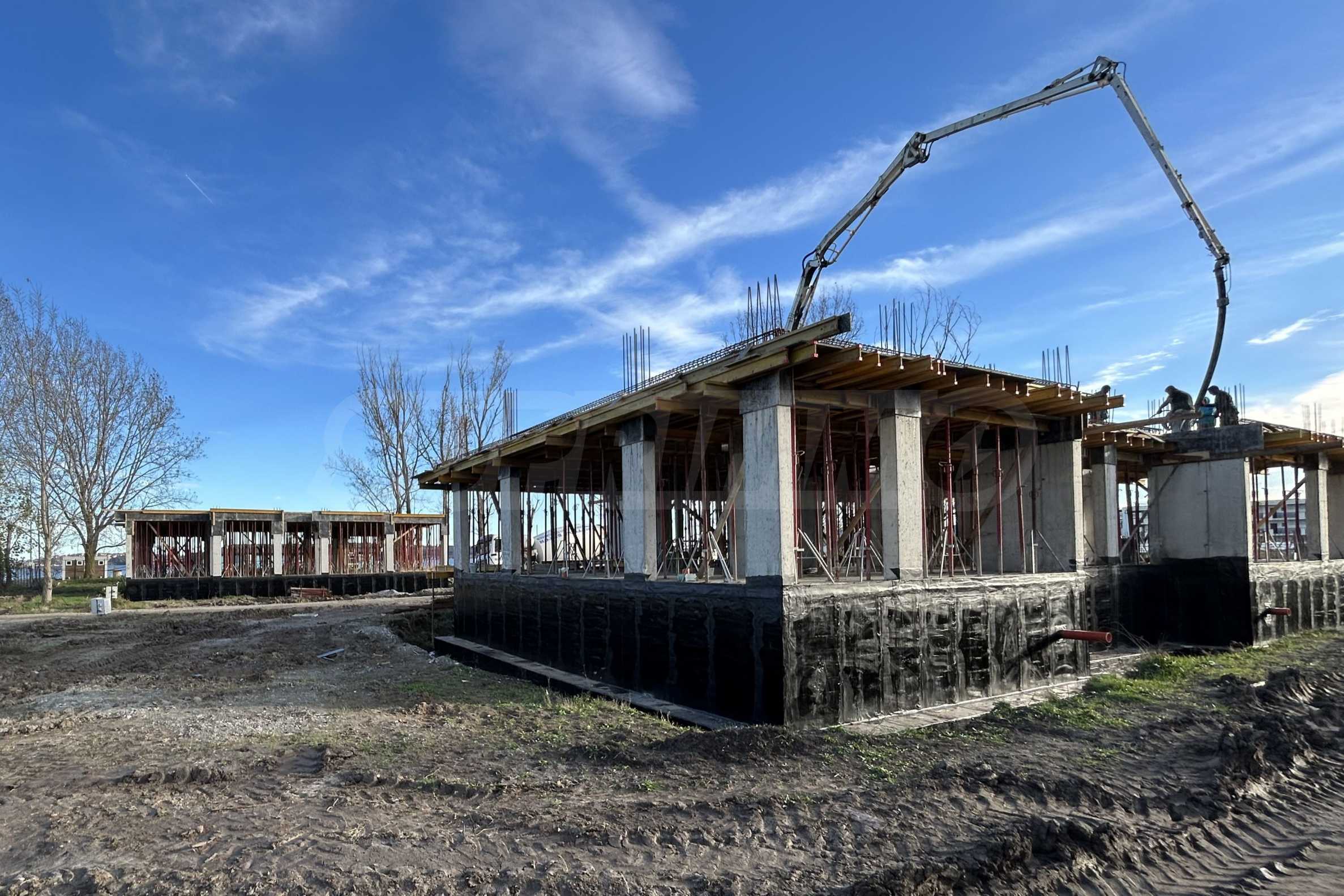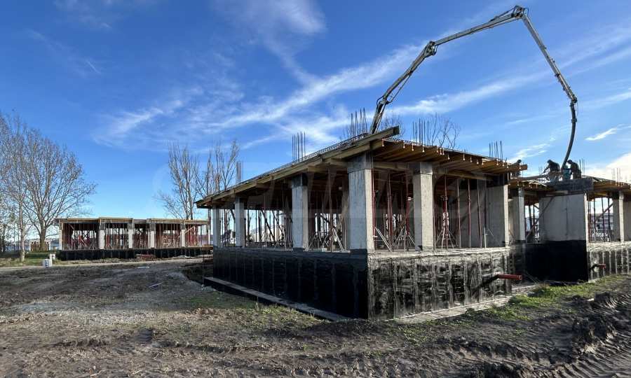 На четвертой линии берега, всего в 200 метрах по прямой от моря, спроектированы 5 зданий с бассейнами, каждое из которых имеет 4 этажа плюс террасы, а также квартиры меньшего размера — студии и двухкомнатные апартаменты, находящиеся в стадии завершения строительства в соответствии с болгарскими строительными стандартами, с возможностью меблировки.