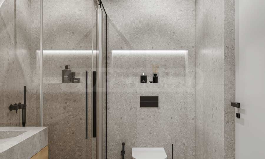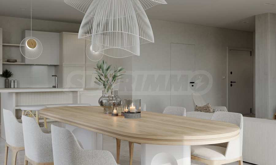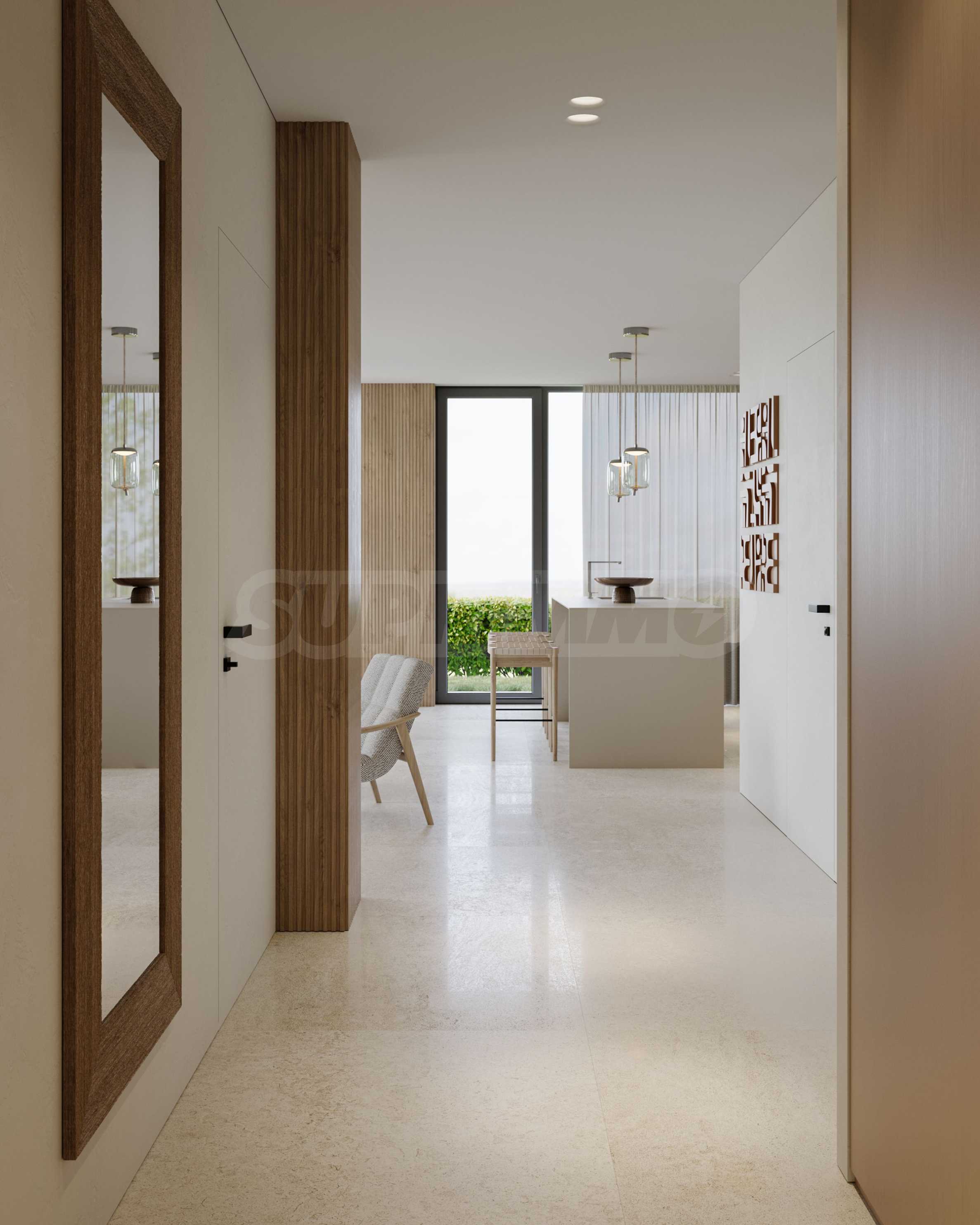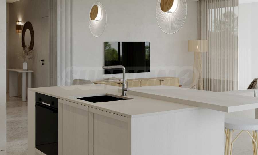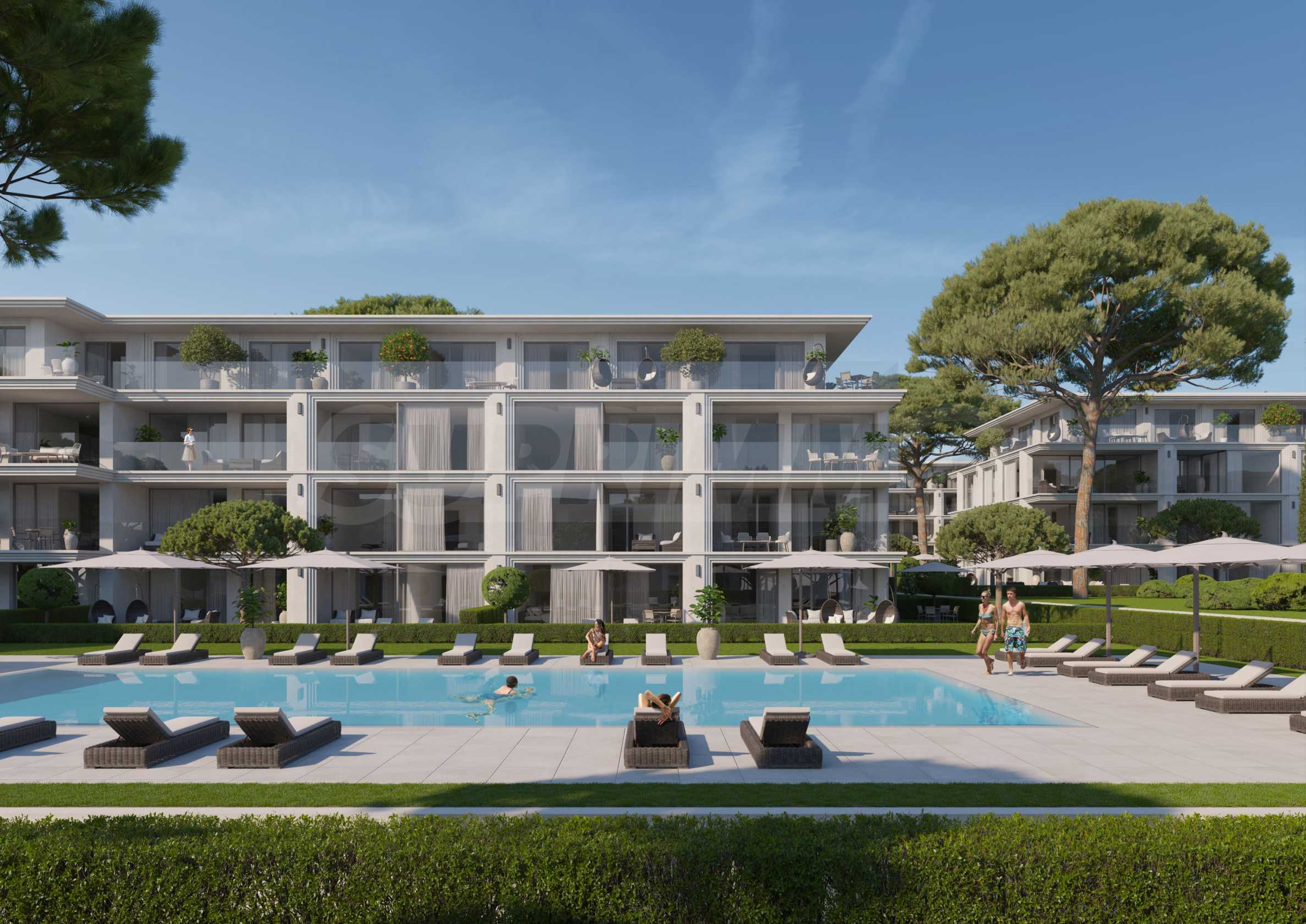 На четвертой линии берега, всего в 200 метрах по прямой от моря, спроектированы 5 зданий с бассейнами, каждое из которых имеет 4 этажа плюс террасы, а также квартиры меньшего размера — студии и двухкомнатные апартаменты, находящиеся в стадии завершения строительства в соответствии с болгарскими строительными стандартами, с возможностью меблировки.