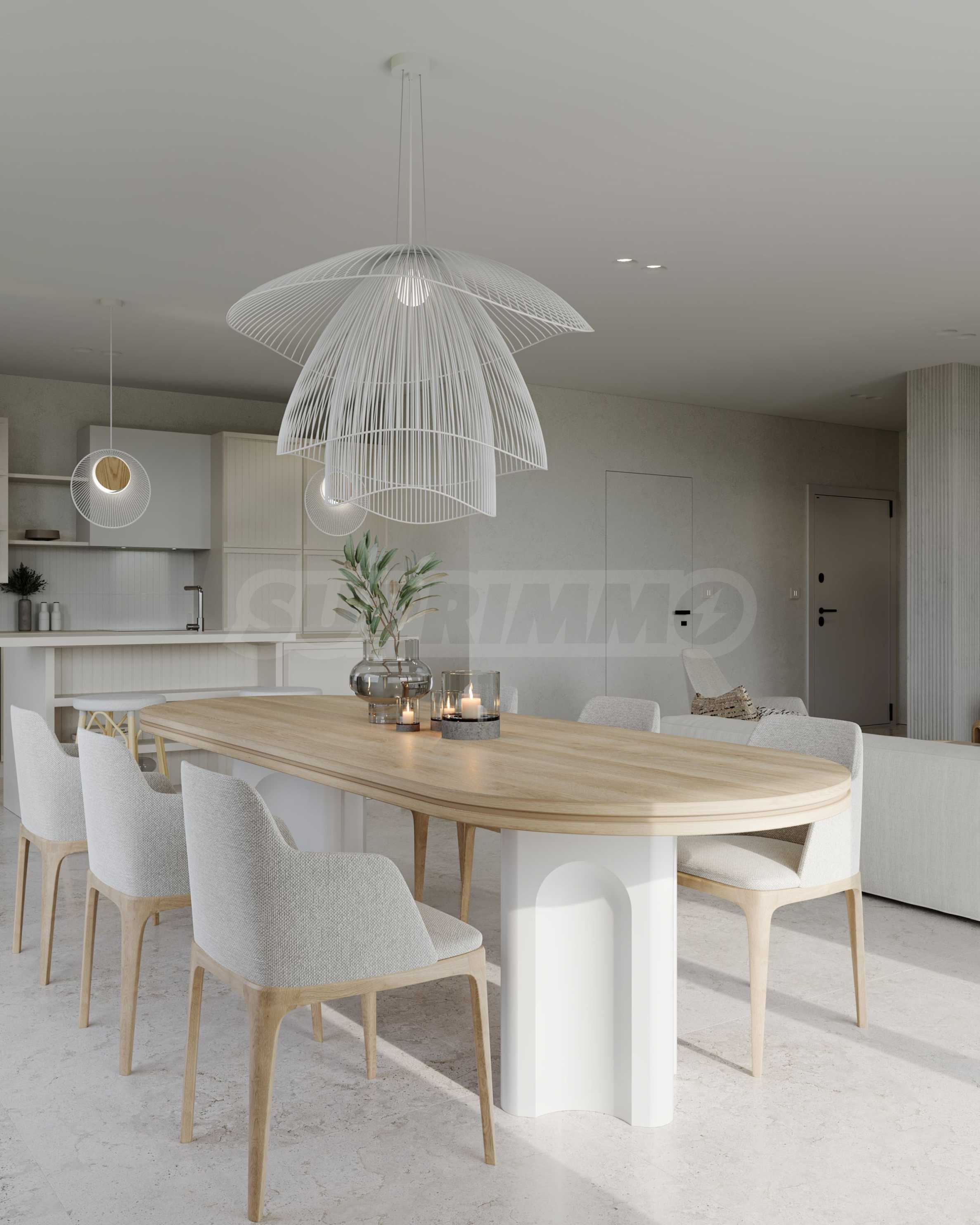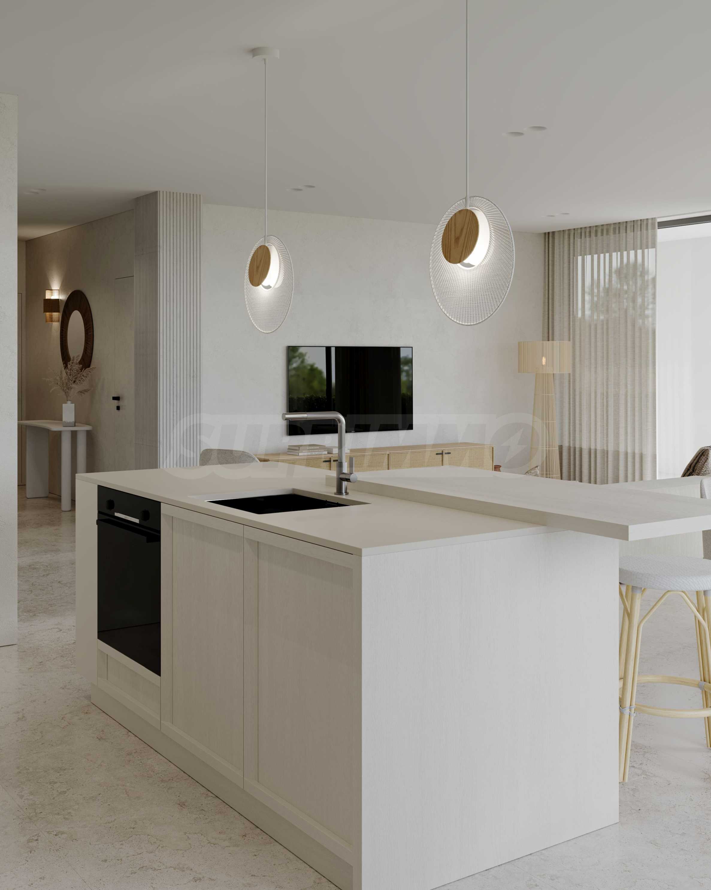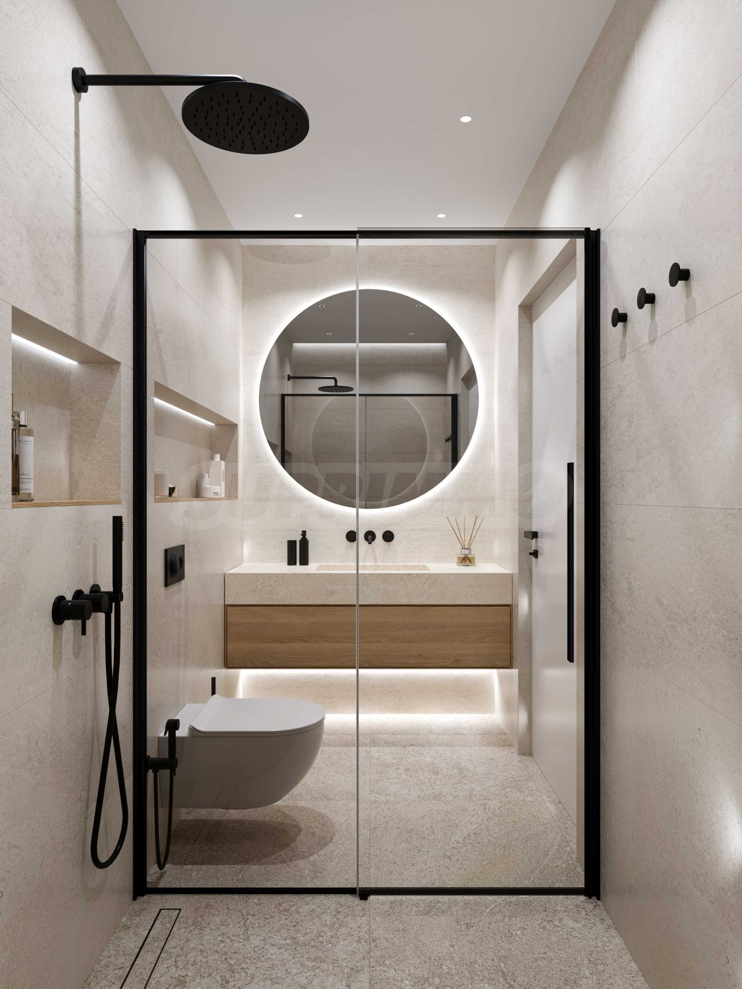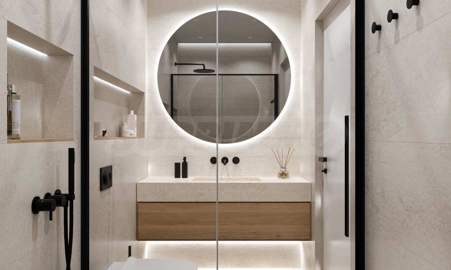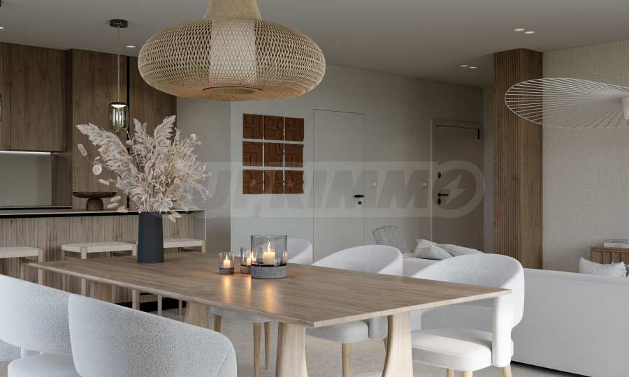 На четвертой линии берега, всего в 200 метрах по прямой от моря, спроектированы 5 зданий с бассейнами, каждое из которых имеет 4 этажа плюс террасы, а также квартиры меньшего размера — студии и двухкомнатные апартаменты, находящиеся в стадии завершения строительства в соответствии с болгарскими строительными стандартами, с возможностью меблировки.