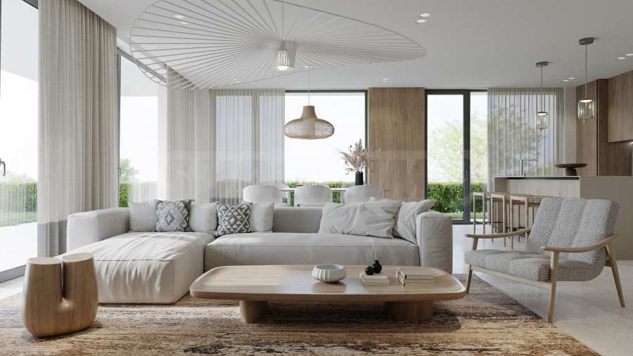 Предлагаемые объекты представляют собой одноэтажные виллы общей площадью 326,33 кв. м, со стандартной планировкой: прихожая, гостиная, четыре спальни, четыре ванные комнаты и подсобное помещение. Каждая вилла имеет собственный двор, возможность строительства бассейна и три парковочных места. Степень отделки соответствует стандартам BDS, возможна меблировка.