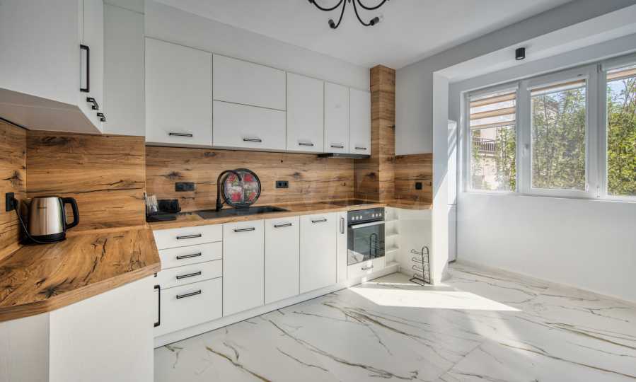 Квартира после капитального ремонта и расположена в массивном кирпичном доме с новой столяркой и современной немецкой бытовой техникой ААА+. Квартира расположена на 3 этаже и имеет 3 просторные спальни, светлую гостиную с обеденной зоной и отдельную кухню, что делает ее идеальной для семей или людей, которым требуется больше места. Имеется одна ванная комната с туалетом и отдельный туалет, две террасы с великолепным видом на окружающую зелень и большое межблочное пространство.