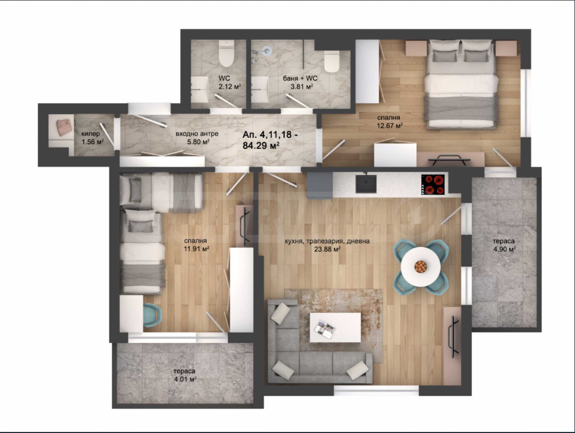 REF#PLV-125423 / Трехкомнатная квартира / р-н Кыршияка / г. Пловдив / Пловдивская область / Болгария / Продажа На карте