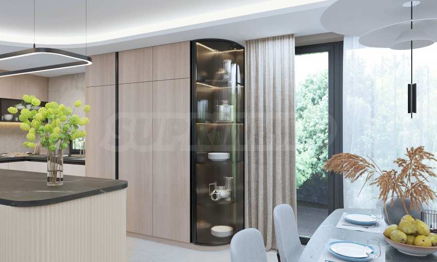 Представляем Вам современный трехуровневый дом, расположенный в живописном районе Косанин Дол, отличающемся уединенностью и непосредственной близостью к озеру Панчарево и КАД, обеспечивающим легкий и быстрый доступ к городу.