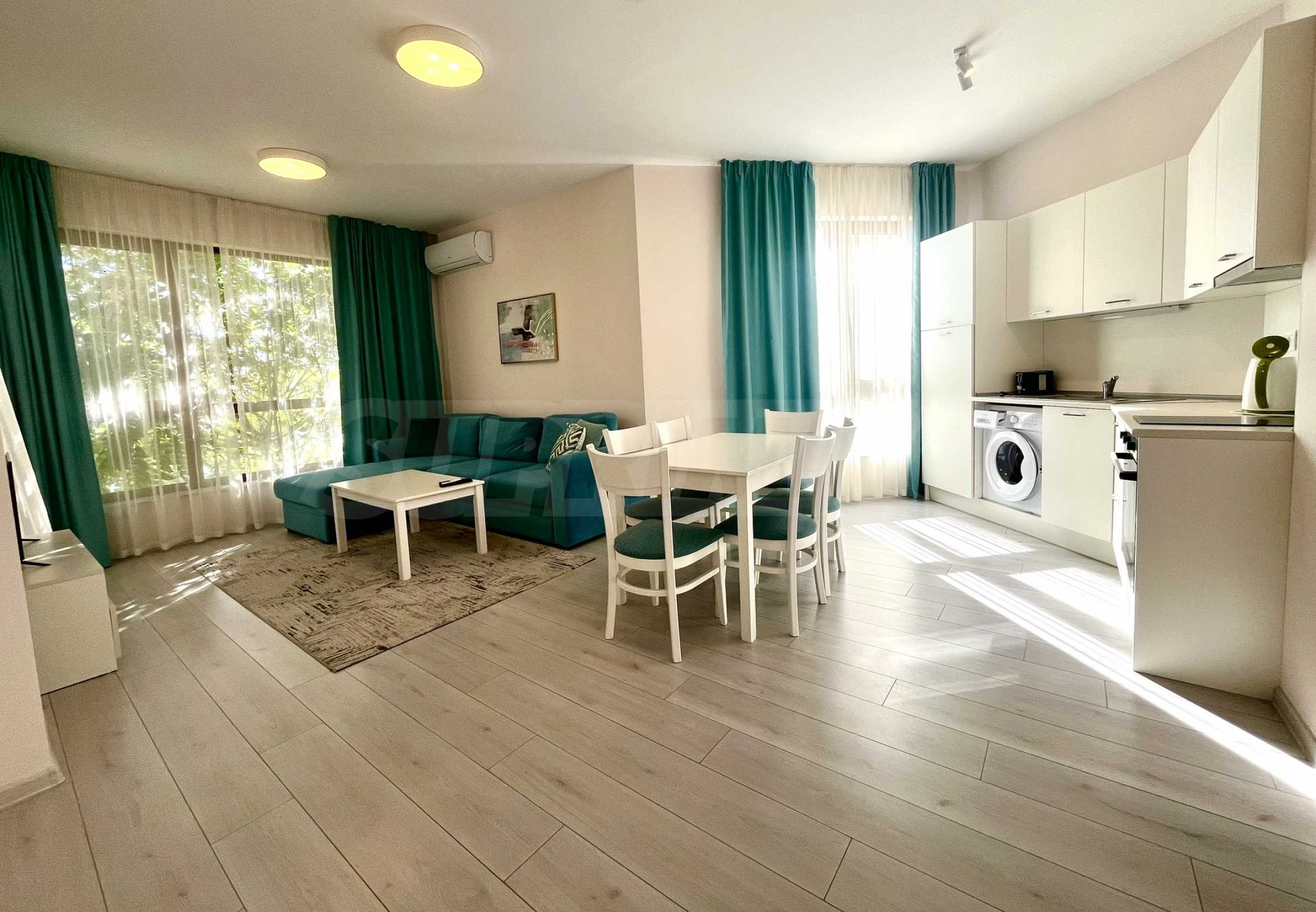 Квартира полностью меблирована и оснащена всем необходимым для комфортной жизни.