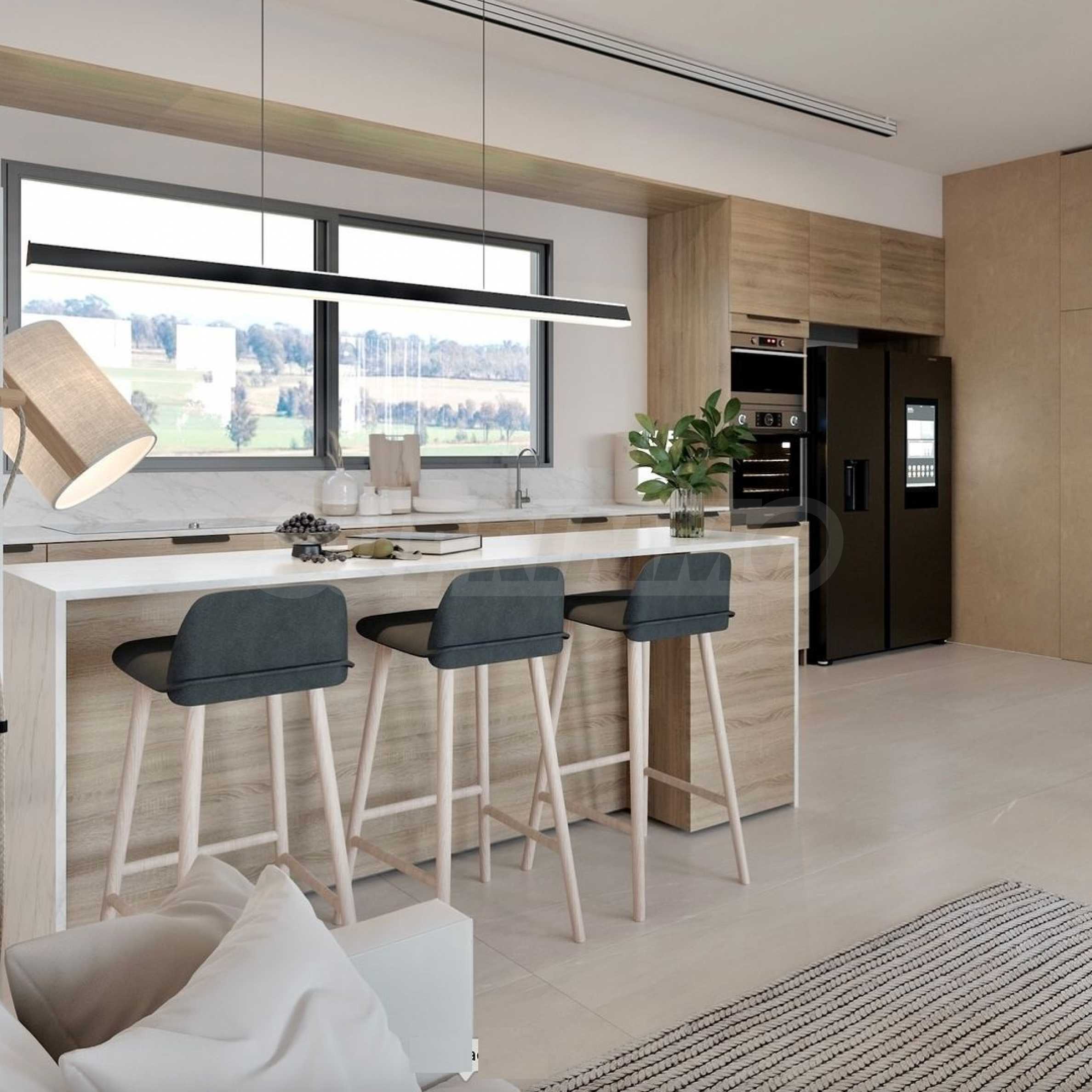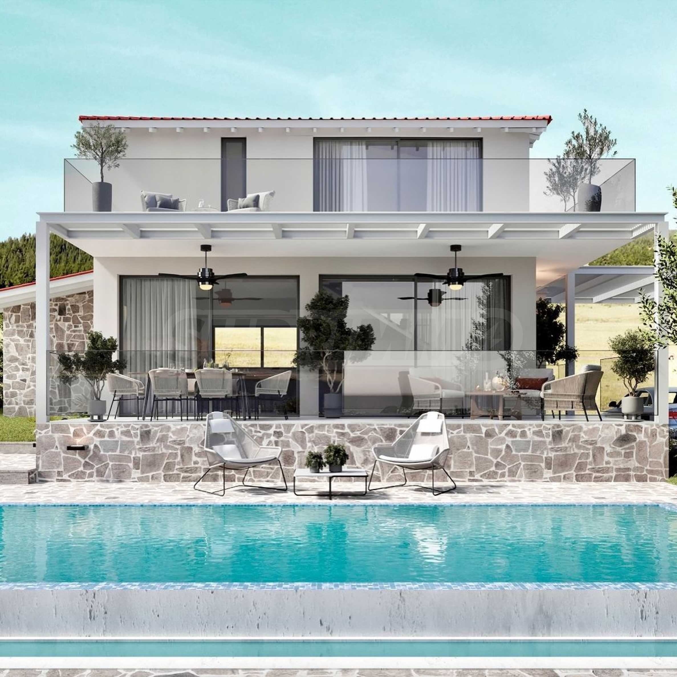 На вилле есть 3 просторные спальни и 3 функциональные ванные комнаты, обеспечивающие личный комфорт для всей семьи. Жилая зона спроектирована как открытое пространство, которое включает в себя кухню и столовую, создавая простор и свет, идеально подходящий для современной жизни.