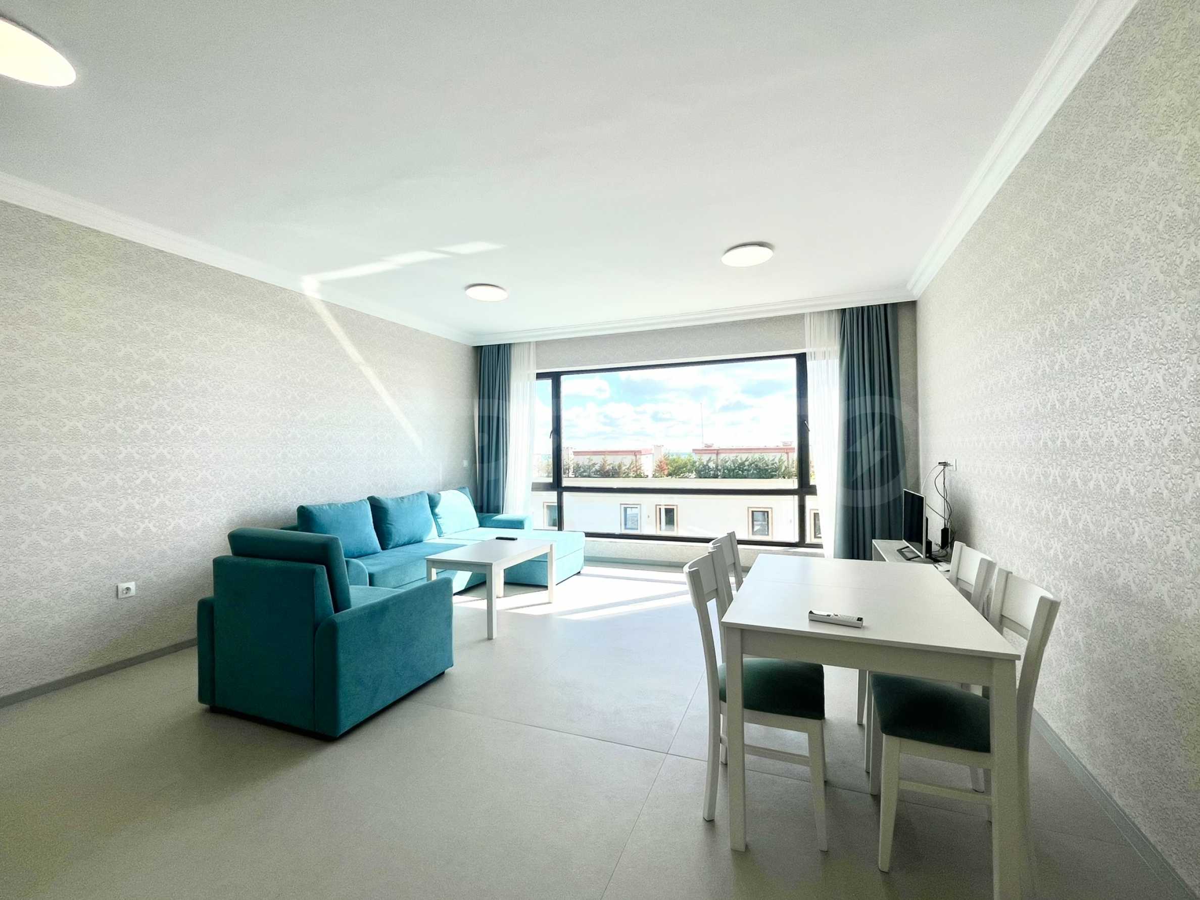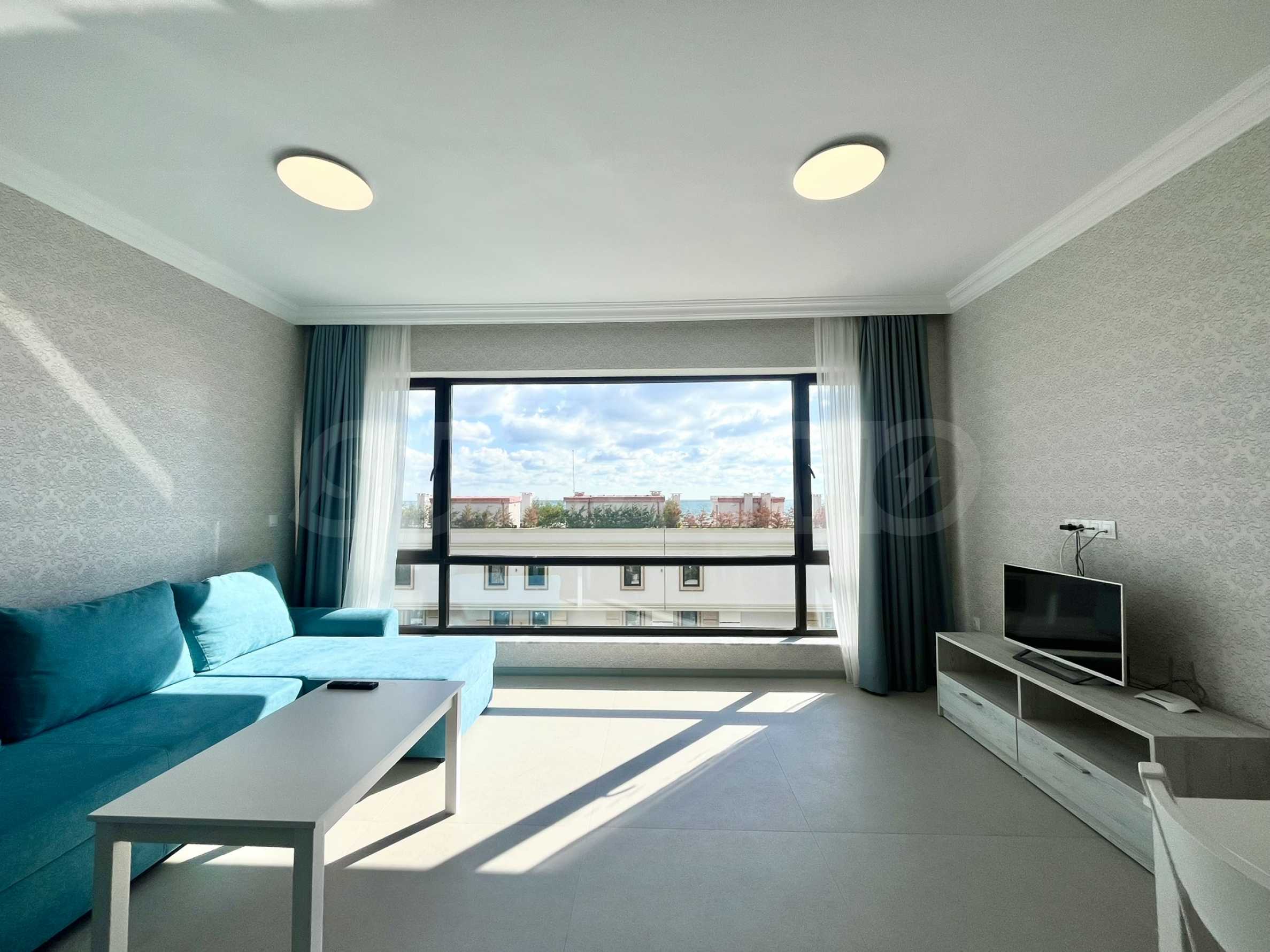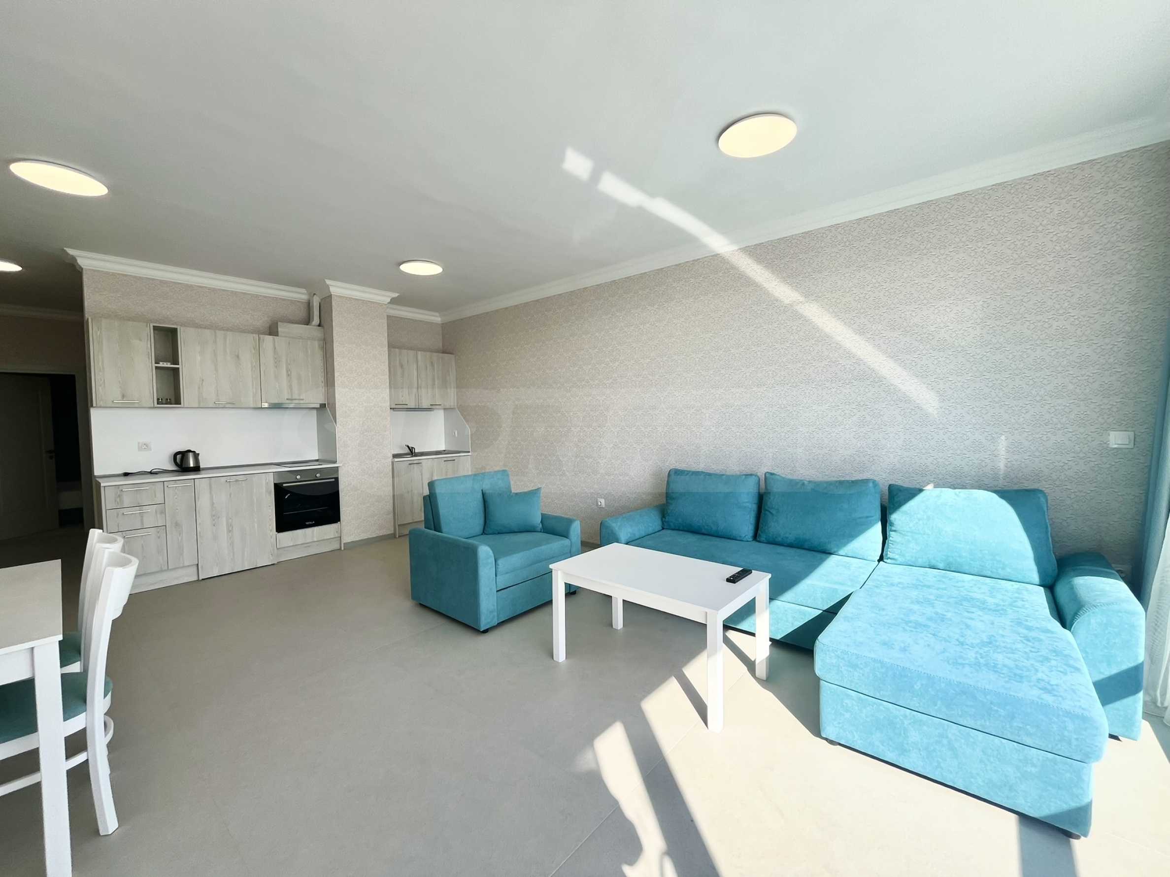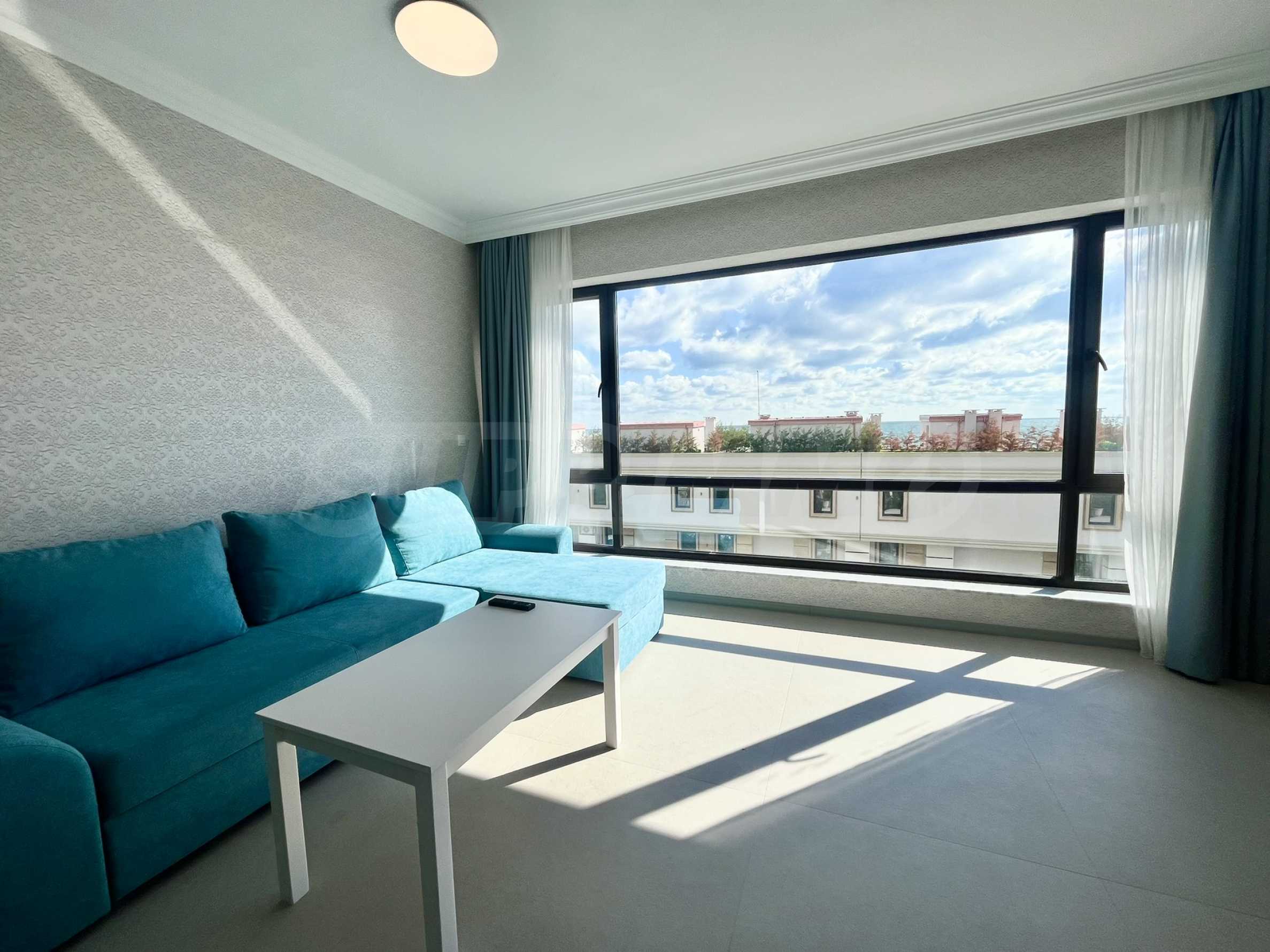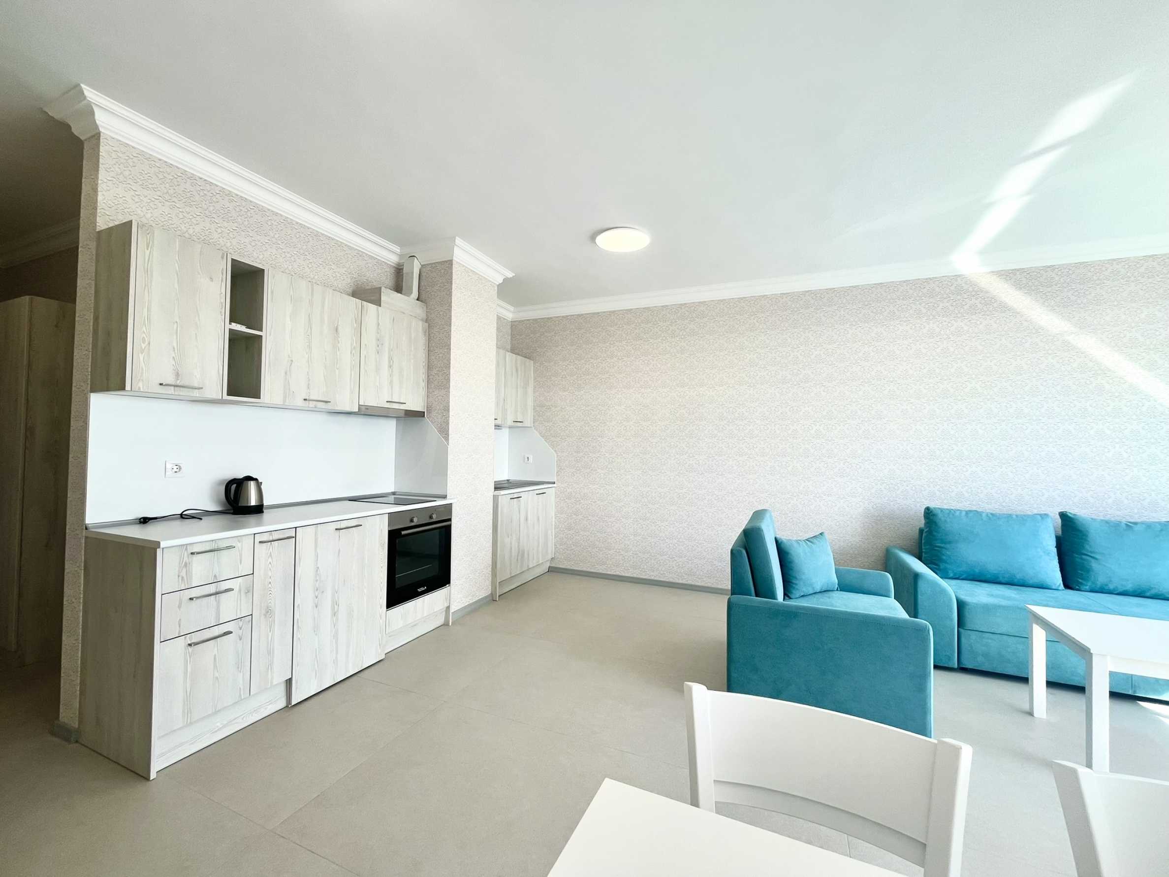 - светлая и просторная гостиная с кухней, столовой и видом на море;
