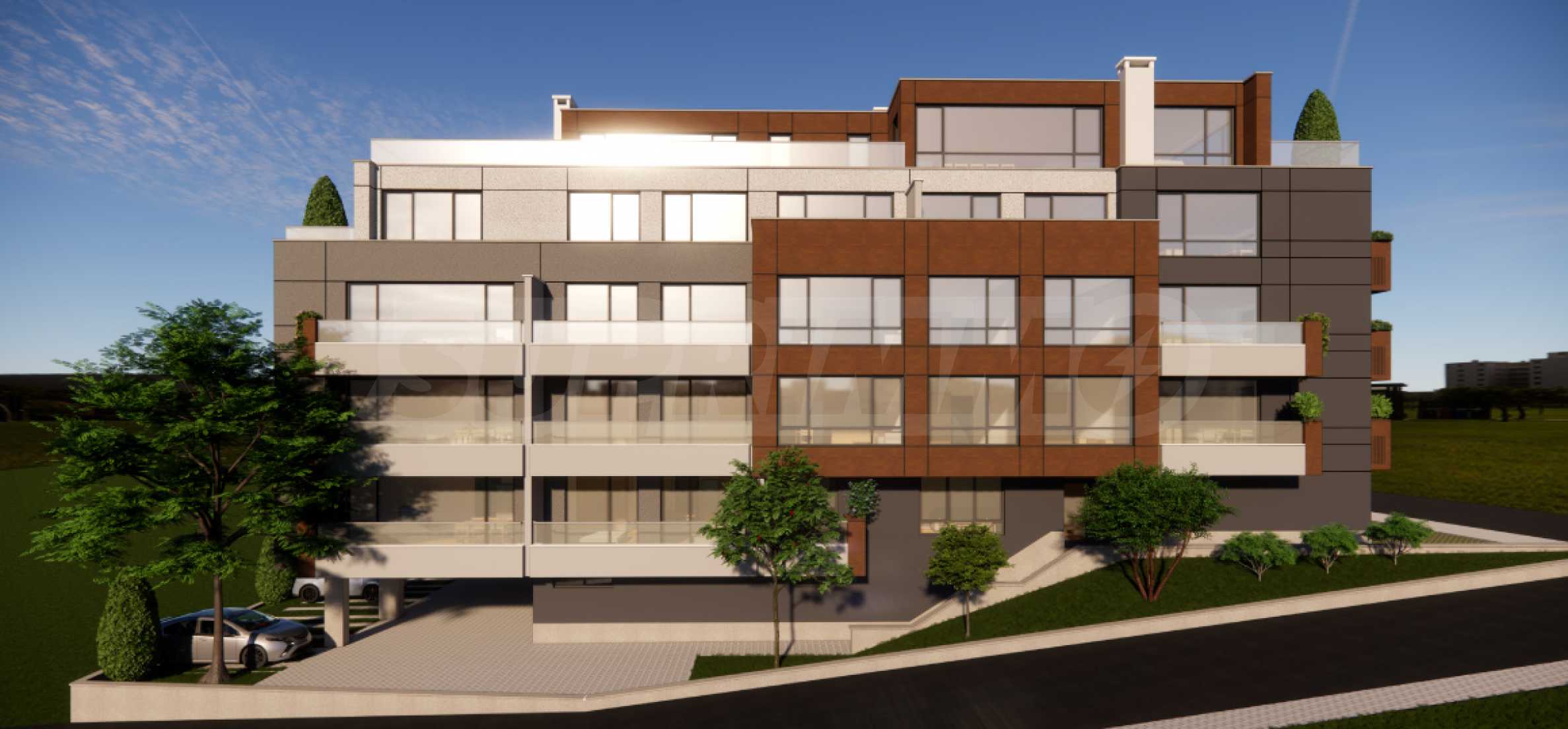 Комплекс расположен в тихом и спокойном месте со свежим воздухом, в зеленом столичном районе, недалеко от школы и детского сада, гипермаркетов Fantastico и Lidl.