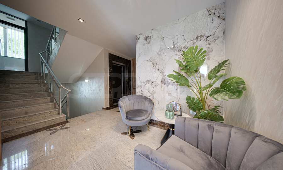 Здание расположено в удобном месте и предлагает впечатляющие панорамные виды на населенный пункт и природу. Оно соответствует самым высоким стандартам современного строительства, сочетая элегантное архитектурное решение фасада, удобство и функциональность внутренней планировки. Исполнение и все отделочные работы выполнены на чрезвычайно высоком, роскошном уровне. Ландшафтный дизайн и вертикальная планировка являются еще одной изюминкой здания, с большим количеством парковой зелени и различными альпинариями с экзотической растительностью.