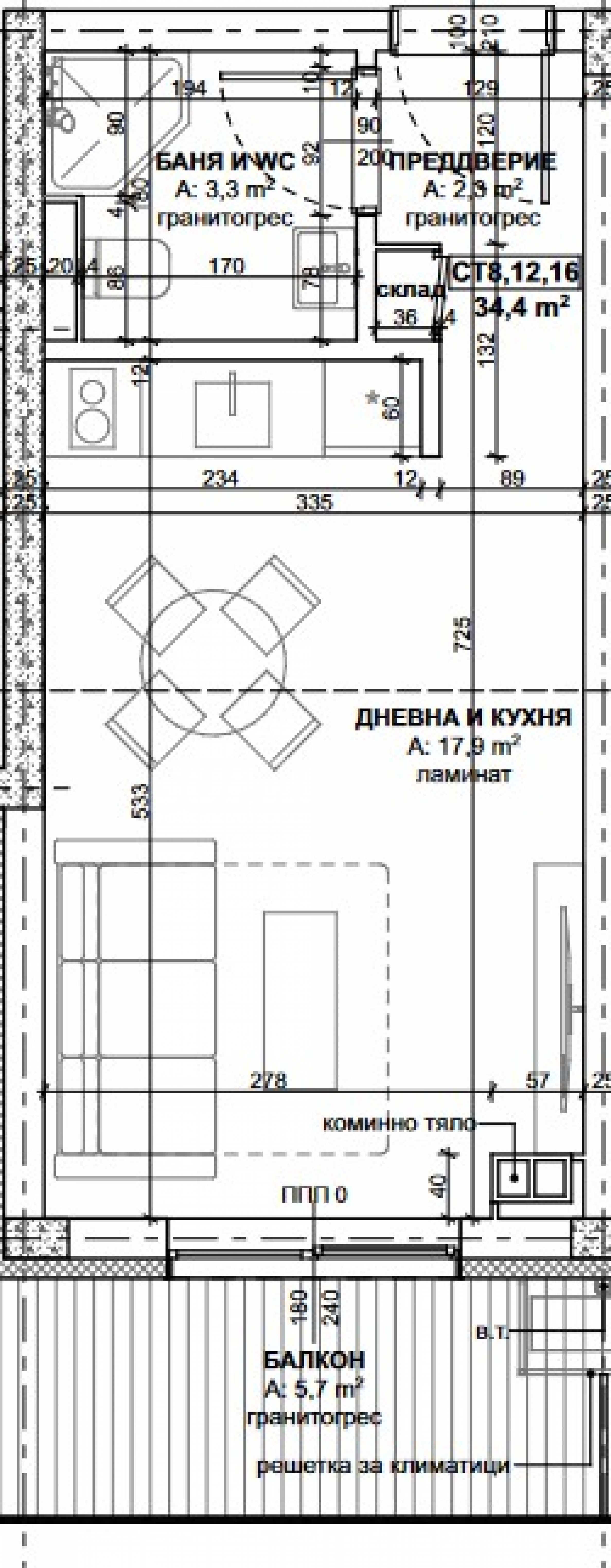 Предлагается в степени отделки, соответствующей болгарским строительным стандартам, с использованием шпатлевки и стяжки.