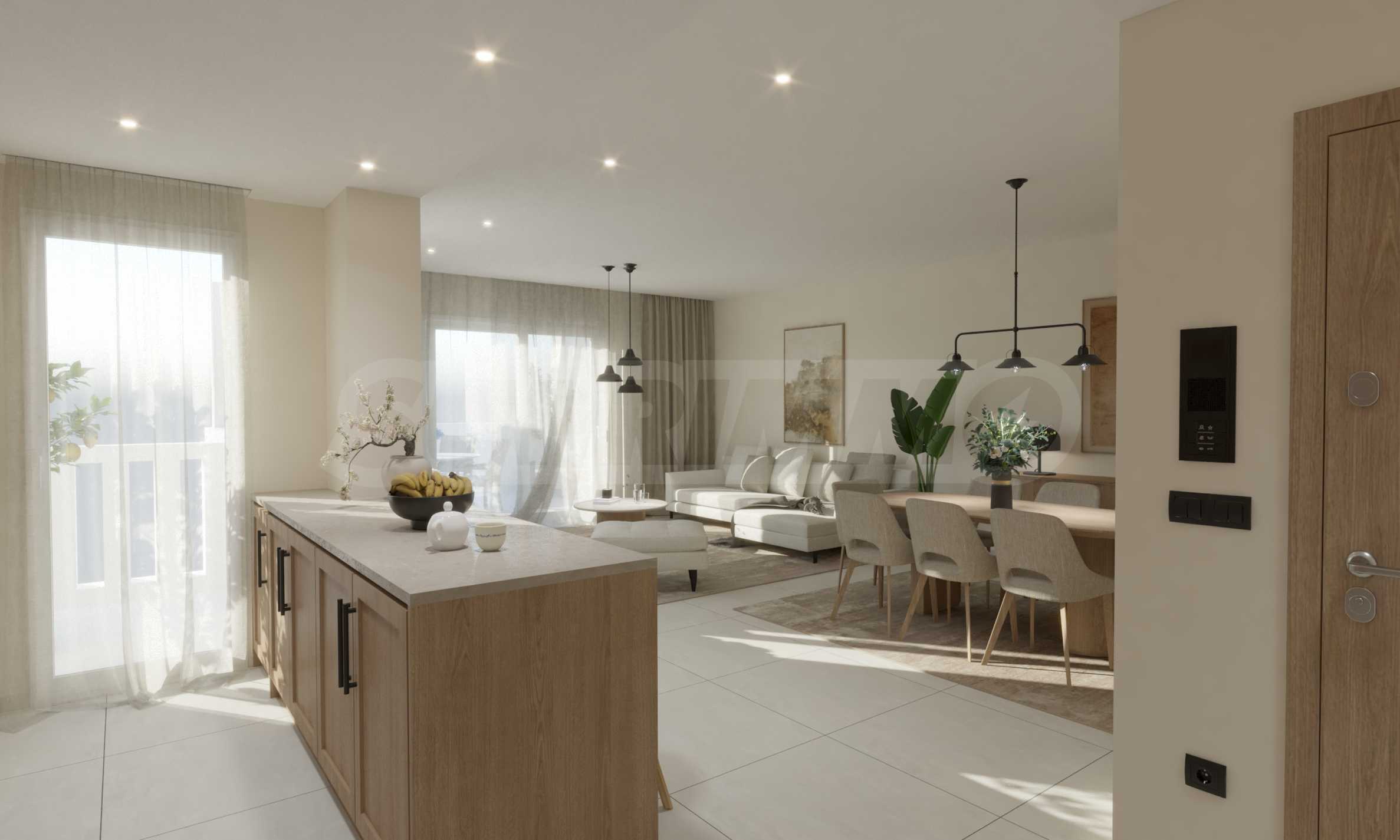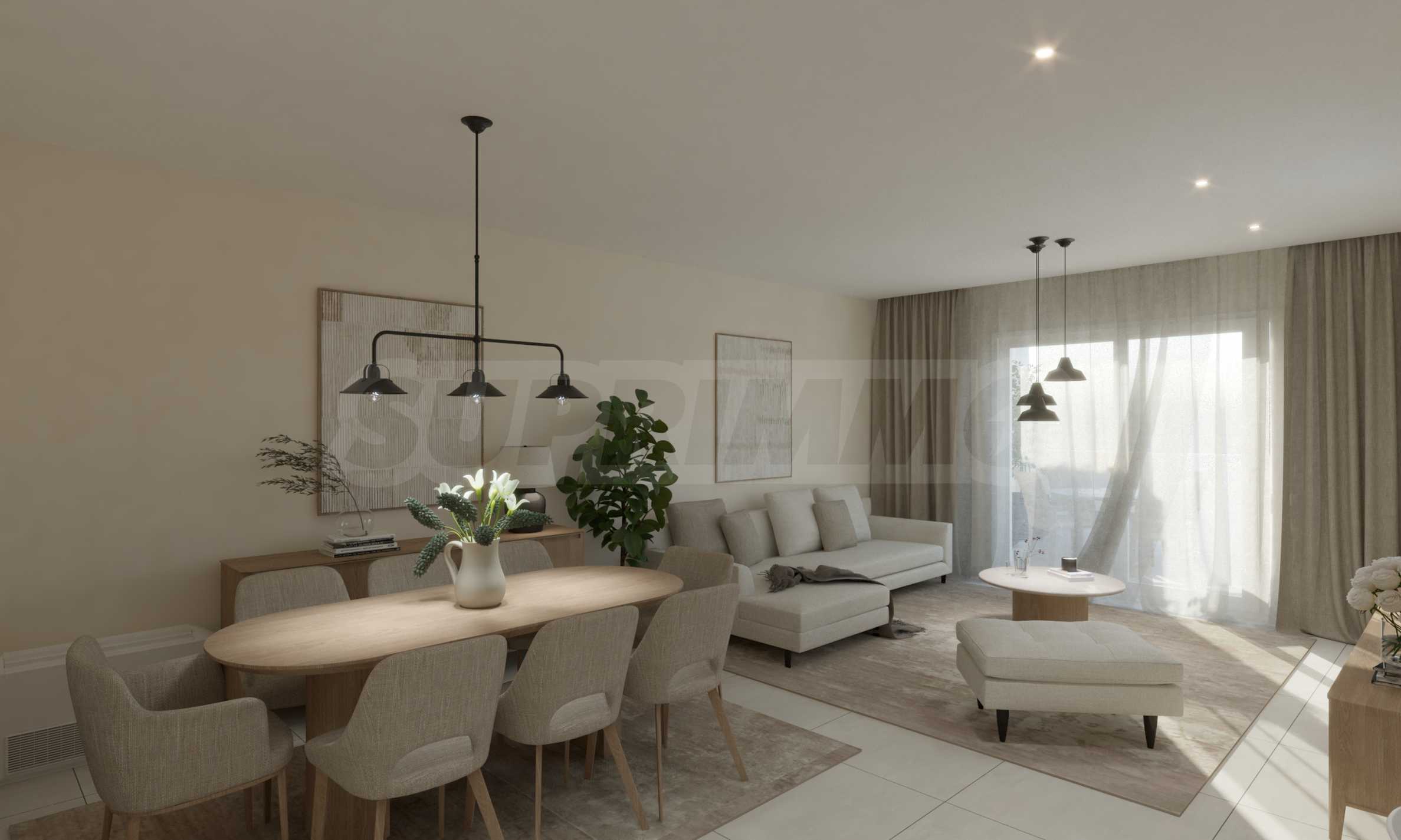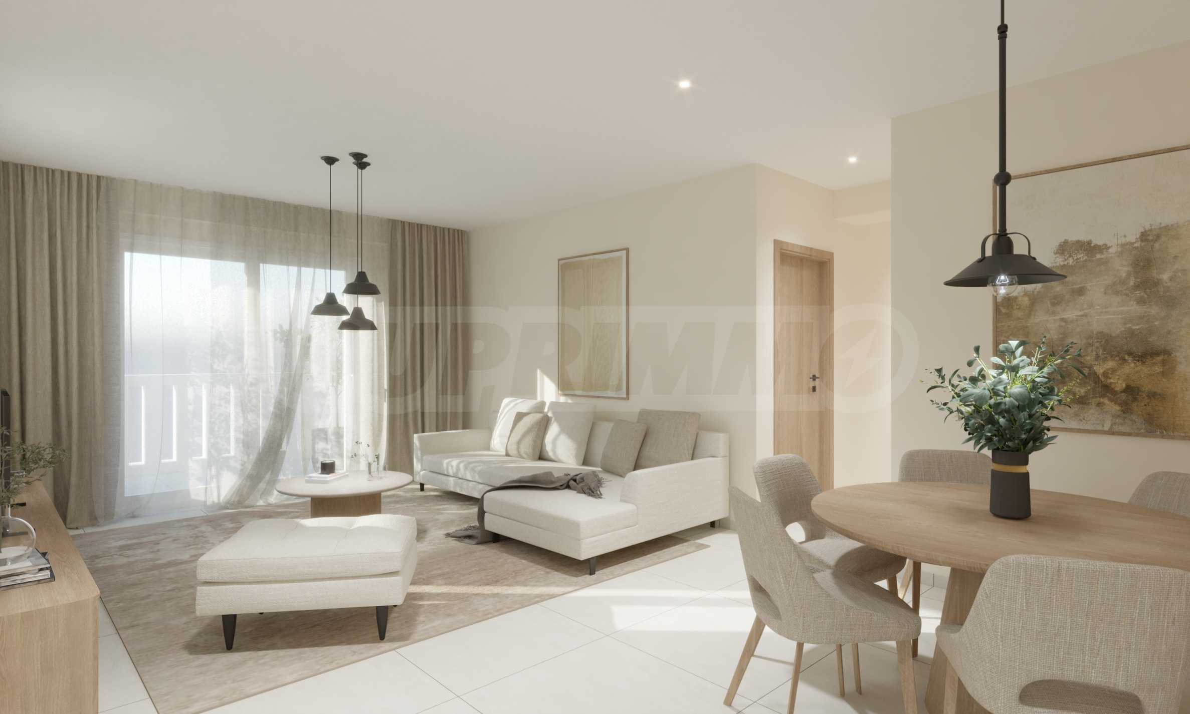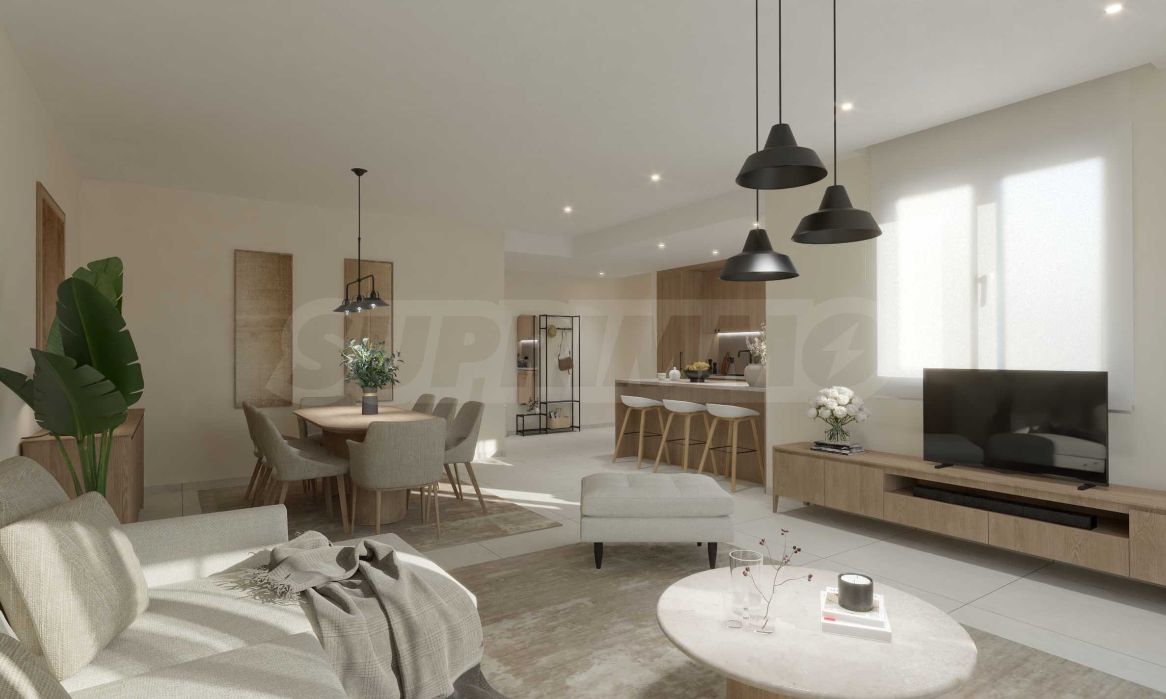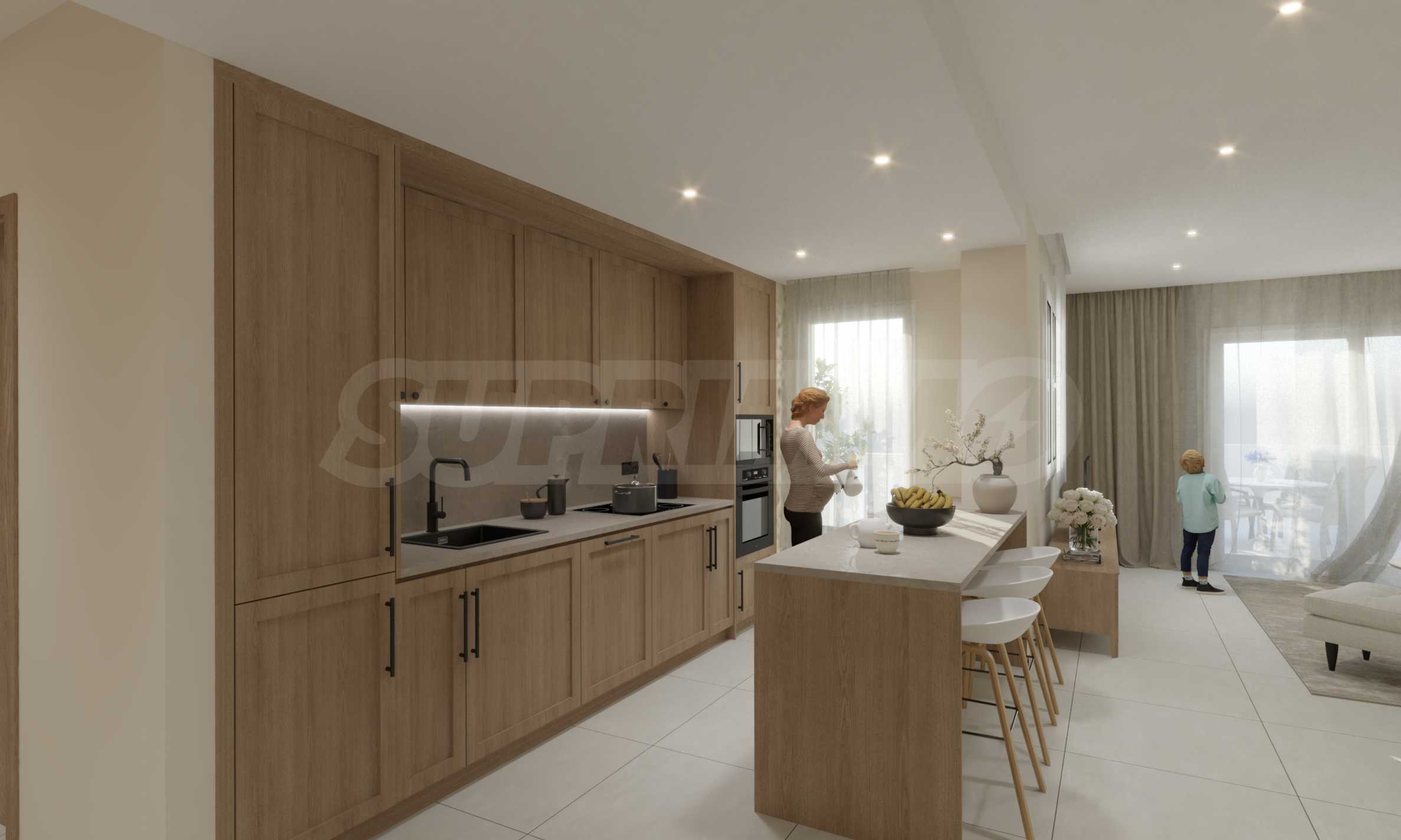 Квартиры характеризуются большими окнами, позволяющими проникать достаточному количеству естественного света в течение дня, а также высокими стандартами энергоэффективности: каждая квартира оснащена системой теплового насоса для отопления и охлаждения, а в зонах общего пользования используется интеллектуальное освещение. Квартиры на первом этаже будут иметь прямой выход в сад комплекса, а апартаменты на верхних этажах – удобные и просторные балконы.
