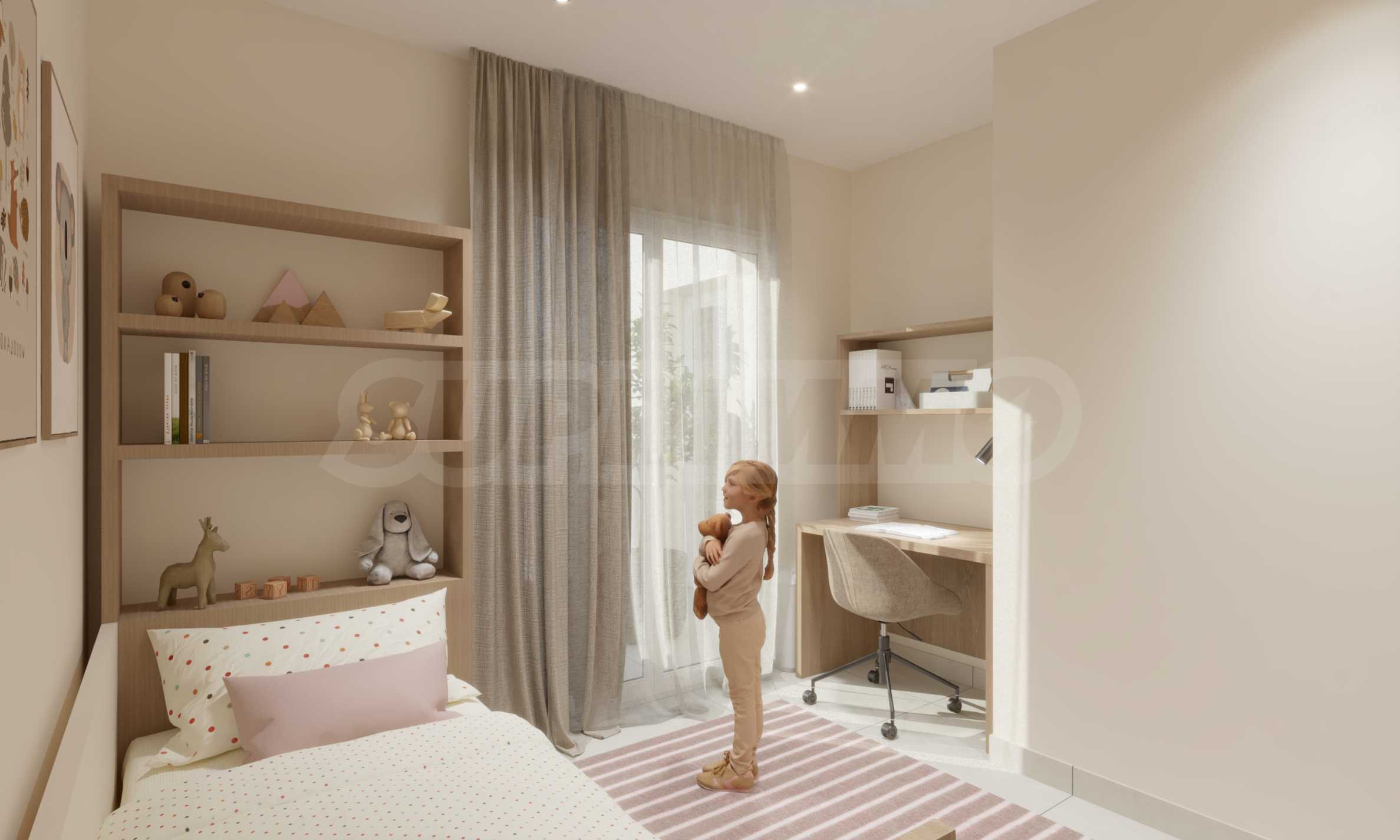 Квартиры характеризуются большими окнами, позволяющими проникать достаточному количеству естественного света в течение дня, а также высокими стандартами энергоэффективности: каждая квартира оснащена системой теплового насоса для отопления и охлаждения, а в зонах общего пользования используется интеллектуальное освещение. Квартиры на первом этаже будут иметь прямой выход в сад комплекса, а апартаменты на верхних этажах – удобные и просторные балконы.