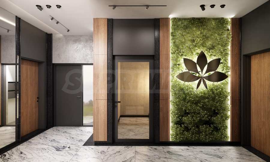 - вестибюль и помещения общего пользования по особому дизайн-проекту интерьера - с отделкой мрамором в сочетании с декоративными элементами от Laminam;