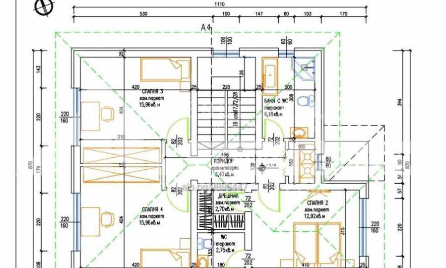 Дом застроенной площадью 200 кв. метров расположен на земельном участке площадью 341 кв. метров, из которых 240 кв. метров - зеленые зоны и имеет следующую планировку. :