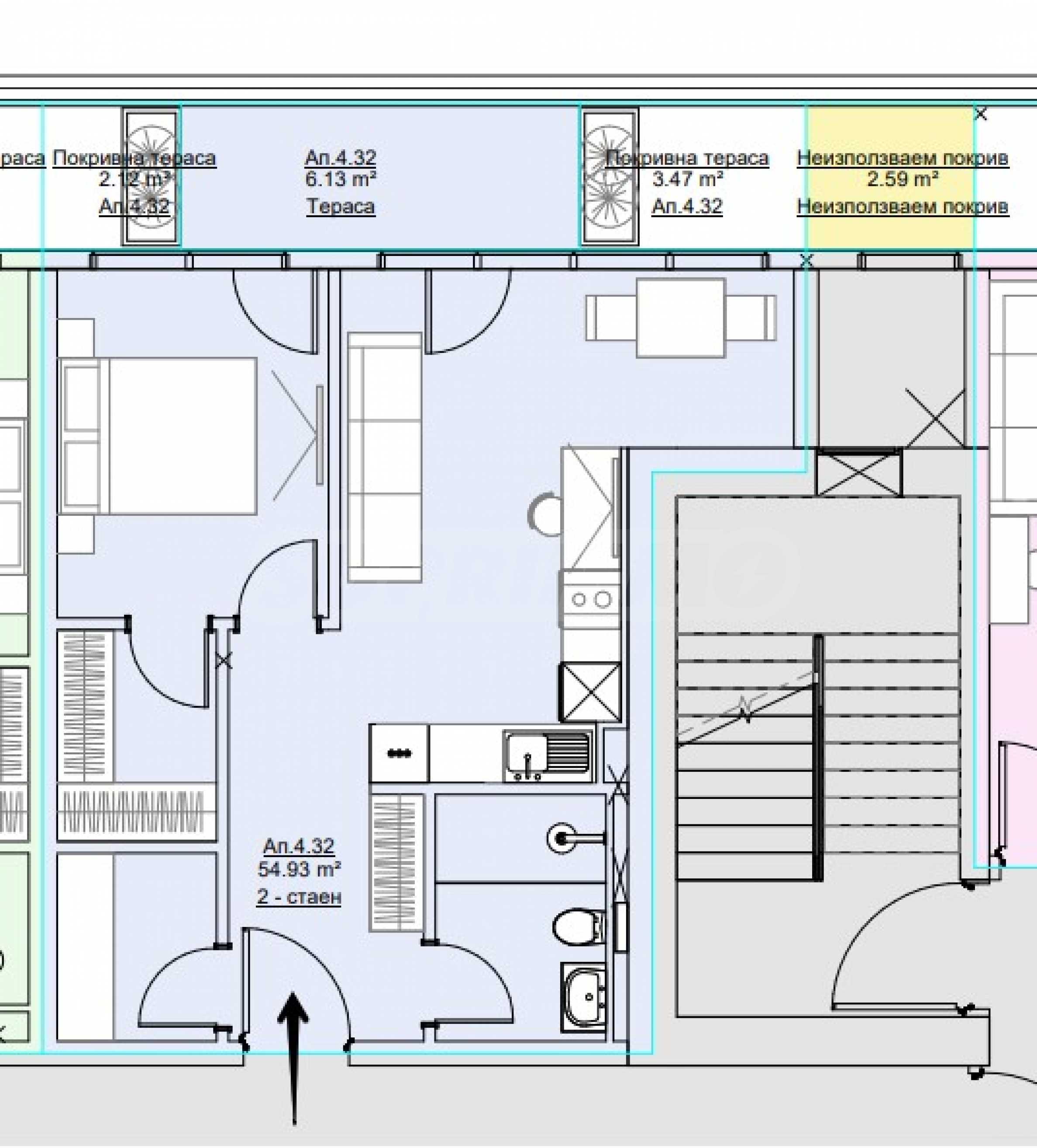 Двухкомнатная квартира № 4.32 в здании S-Tower на бул. "Г.М. Димитров"