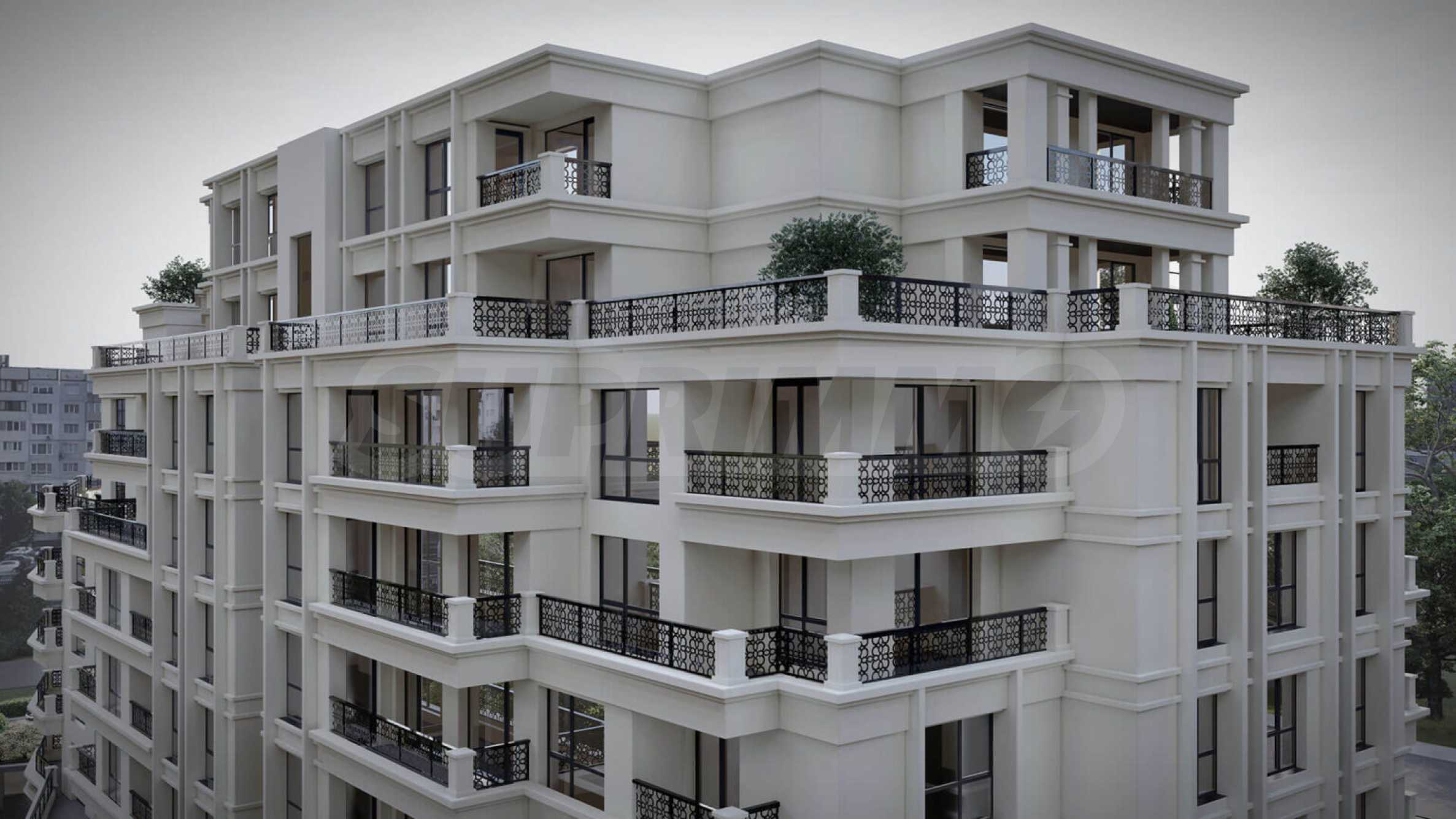 Здание состоит из 2 секций с квартирами на 9 жилых этажах. Предлагаются двухкомнатные, трехкомнатные и четырехкомнатные квартиры. Есть возможность приобрести гаражи по цене от 26 500 евро, а также кладовые.