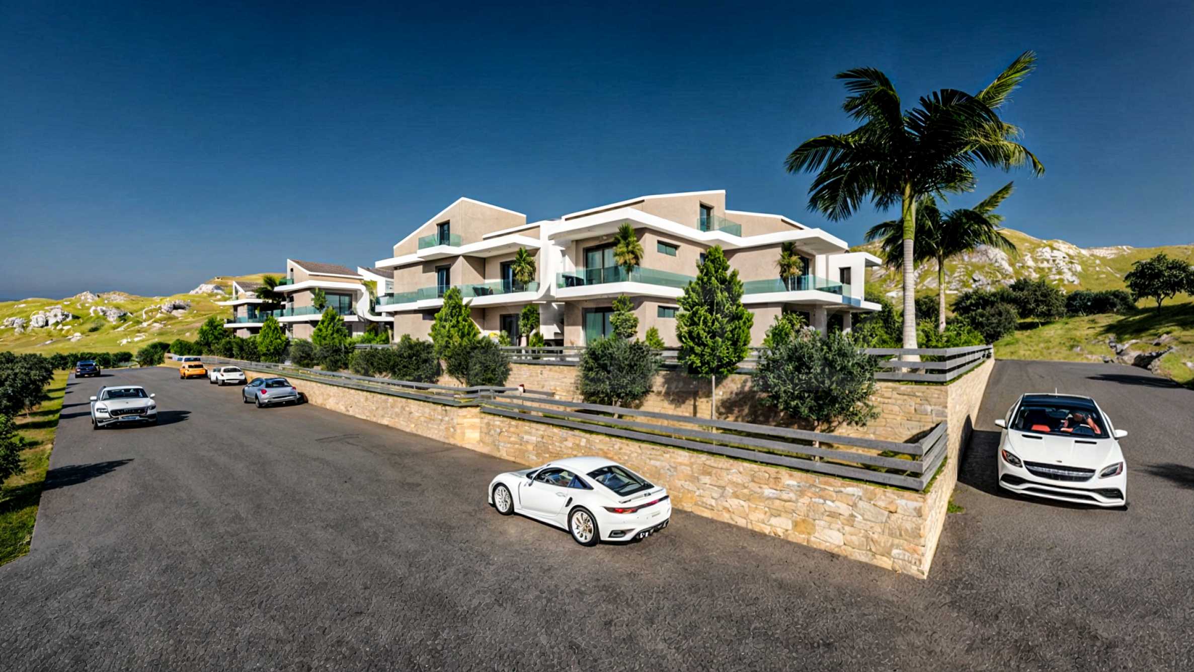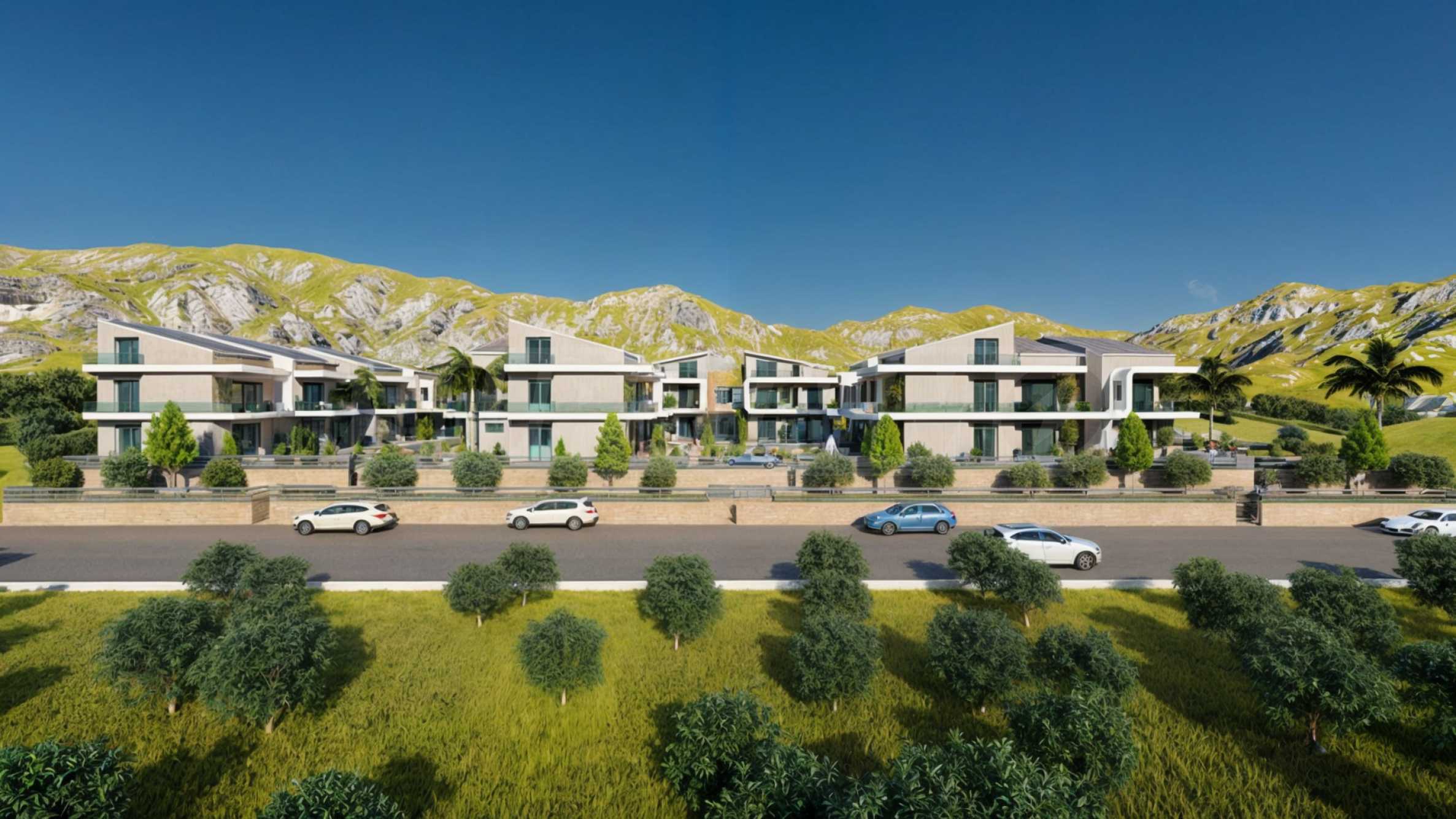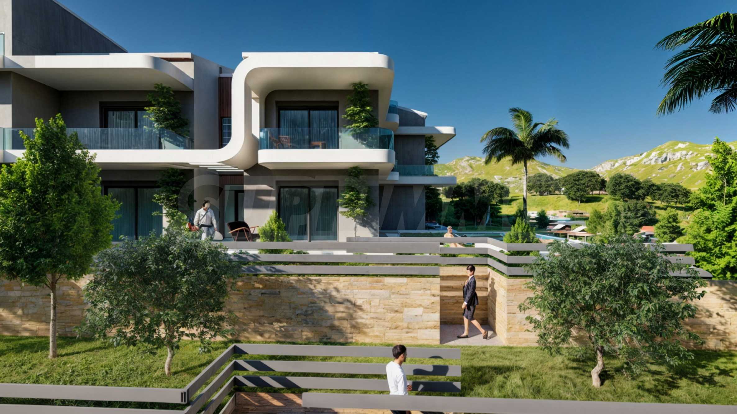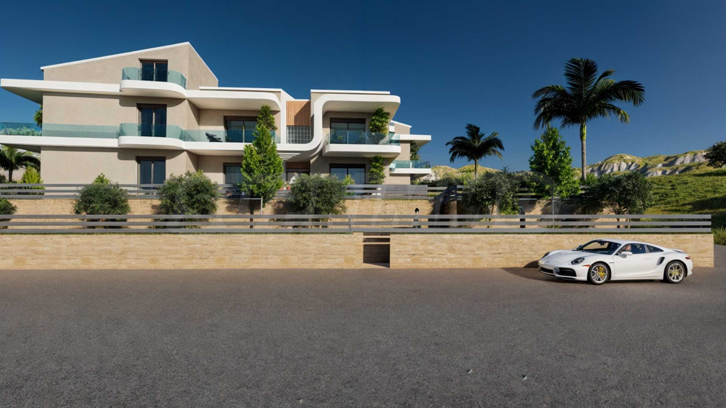 Комплекс расположен примерно в 300 метрах от пляжа, у подножия скал острова, покрытых сосновыми рощами. Это гарантирует жителям спокойную обстановку с чистым и свежим воздухом. «Панорама» состоит из 9 домов в два или три этажа и 32 уютных апартаментов с современной эстетикой и лаконичными линиями. Дворы зданий украшены зеленью, а большие бассейны предоставляют возможность для бесчисленных моментов полного расслабления в кругу близких.
