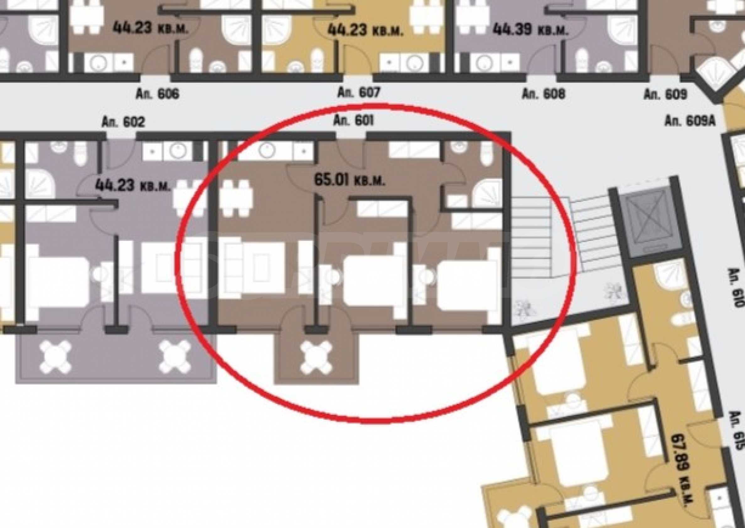 Квартира общей площадью 65,01 м2., расположена на 6 этаже, следующей планировки: