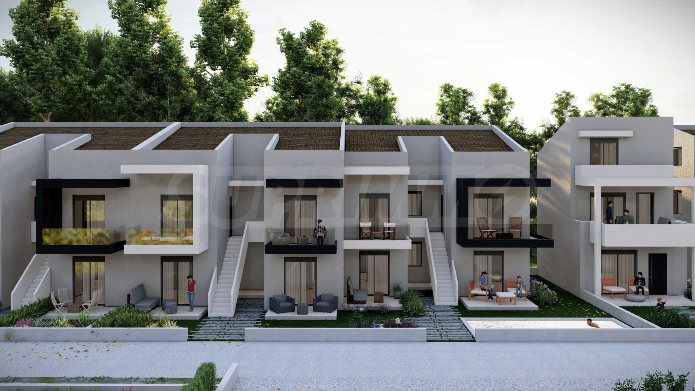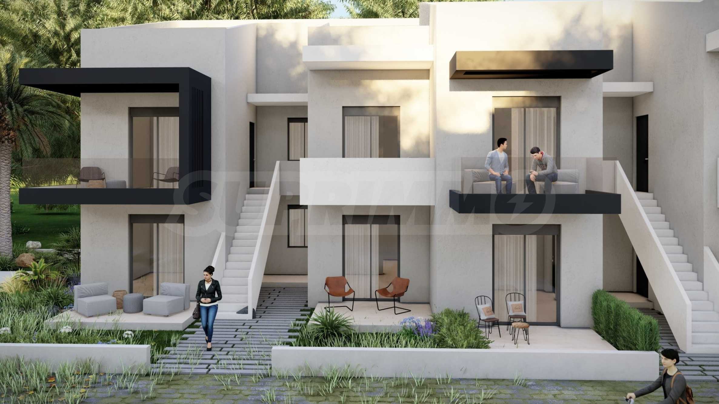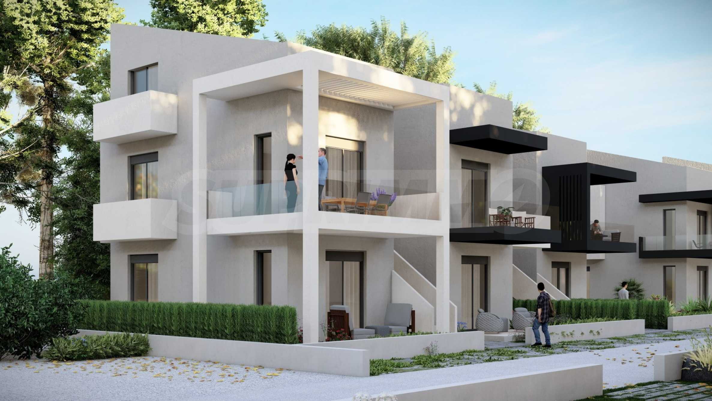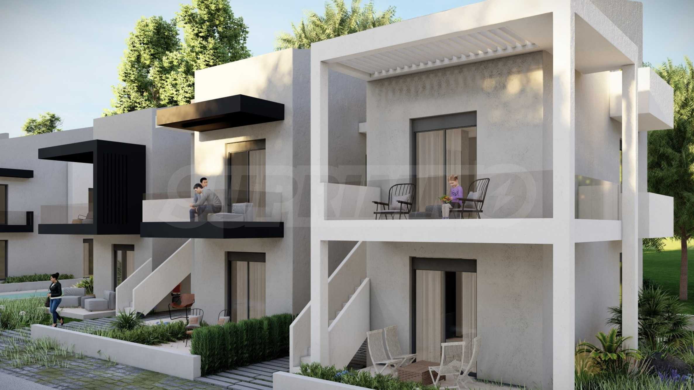 Комплекс включает в себя 47 современных и практичных домов, отличающихся элегантностью и чистотой архитектурных форм. Спроектированные в соответствии с последними тенденциями в архитектуре, эти пространства обеспечивают максимальный доступ естественного света и подчеркивают гармоничность интерьерных решений. Стеклянные элементы на балконах добавляют ощущение легкости и простора, делая их идеальным местом для отдыха и уединения. В настоящее время предлагается ограниченное количество объектов недвижимости — 23 квартиры, расположенные на двух уровнях. В каждом из них есть просторная гостиная с мини-кухней, две спальни, ванная комната и кладовая. Квартиры сдаются полностью «под ключ», включая напольное покрытие, входные и межкомнатные двери, встроенные кухни и оборудованные санузлы.