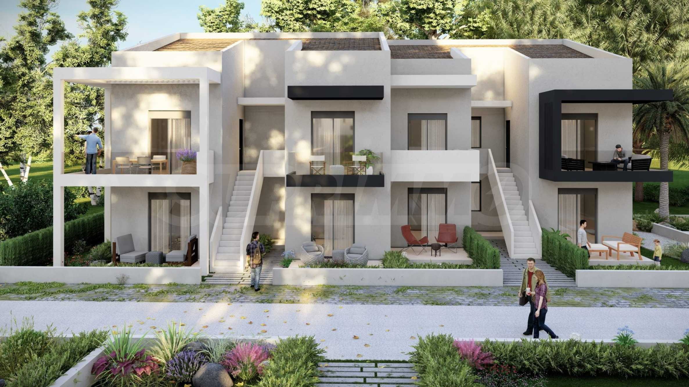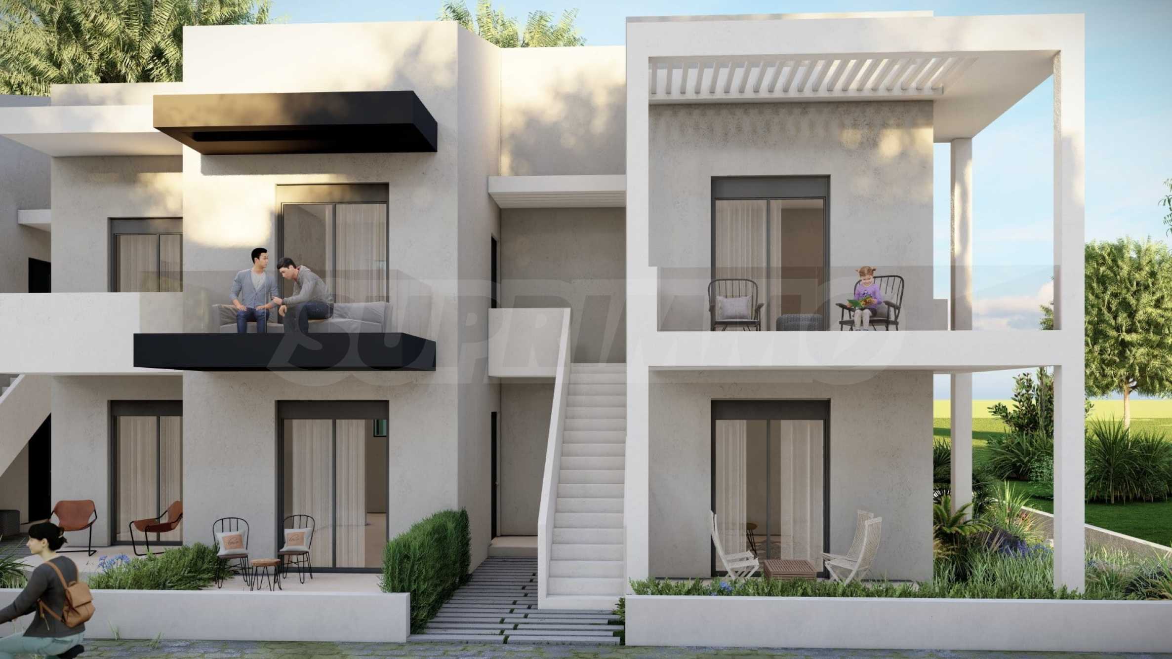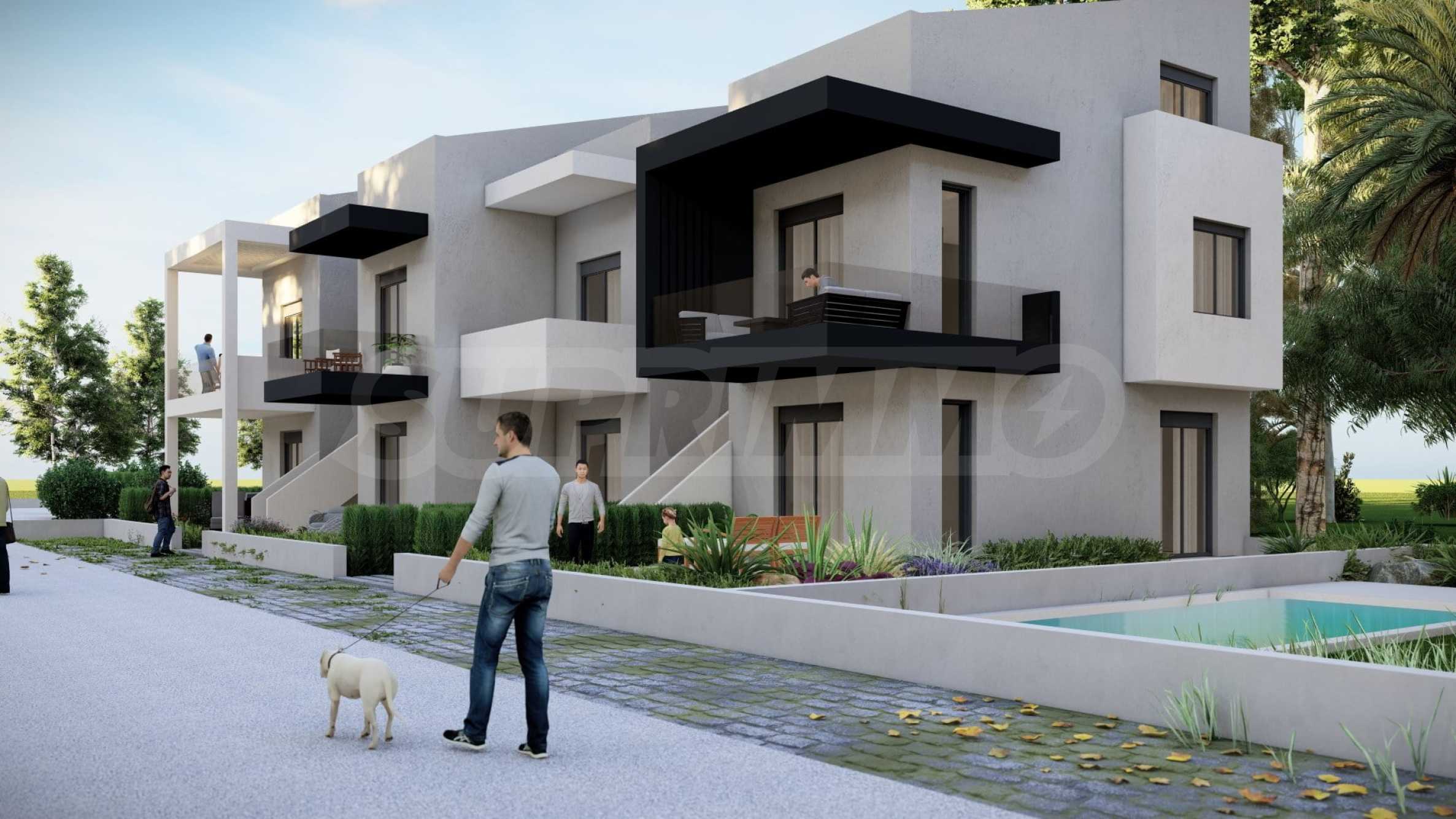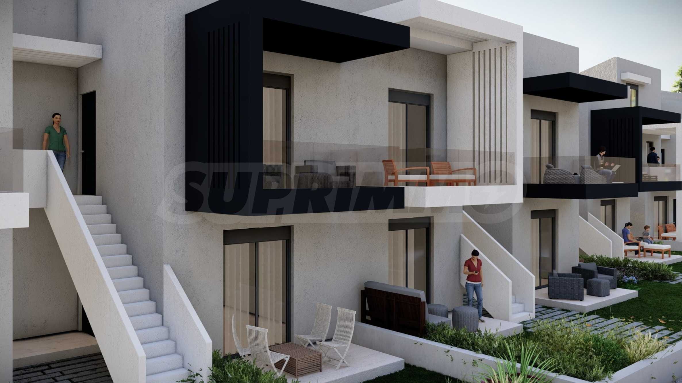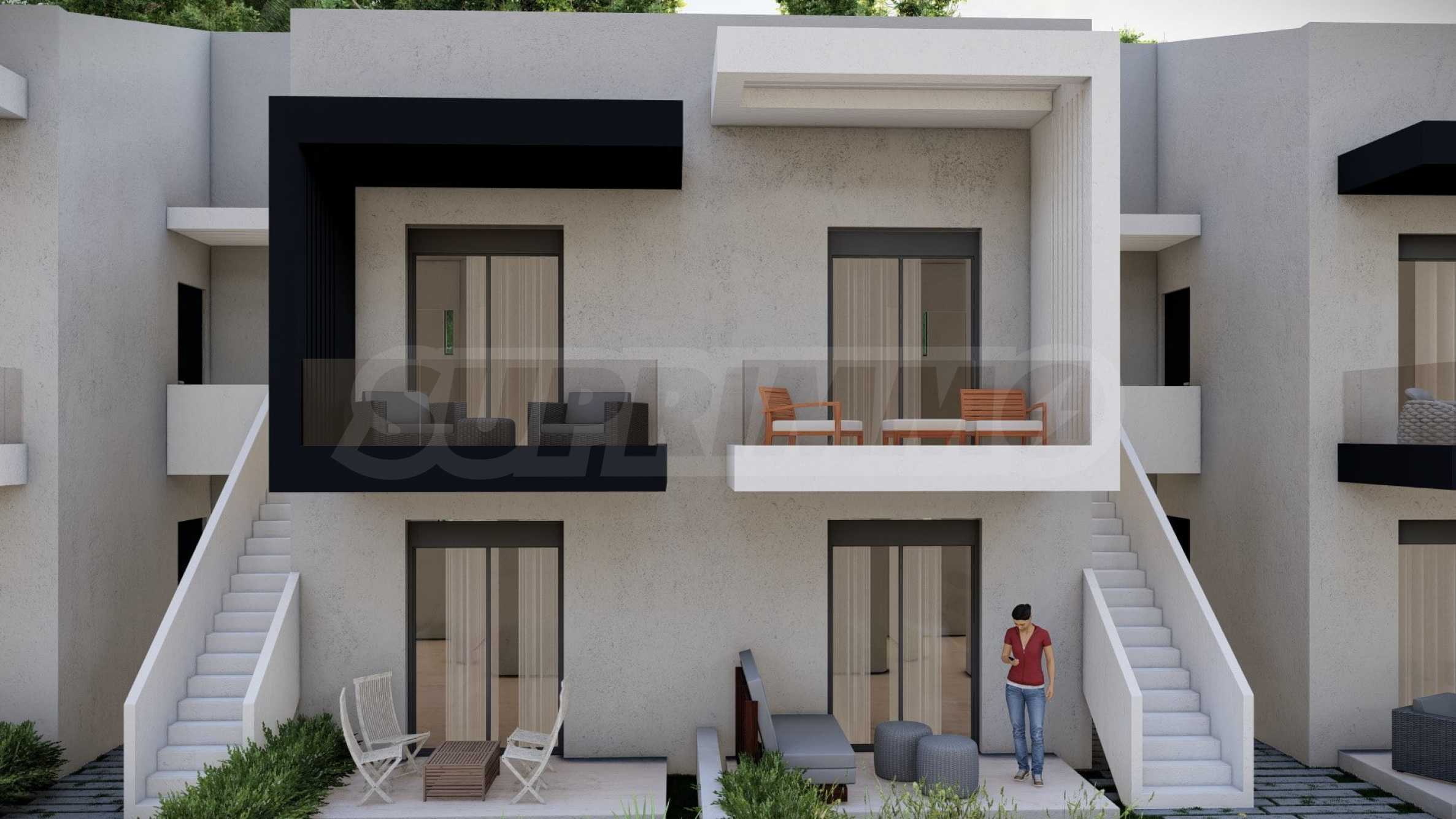 Комплекс включает в себя 47 современных и практичных домов, отличающихся элегантностью и чистотой архитектурных форм. Спроектированные в соответствии с последними тенденциями в архитектуре, эти пространства обеспечивают максимальный доступ естественного света и подчеркивают гармоничность интерьерных решений. Стеклянные элементы на балконах добавляют ощущение легкости и простора, делая их идеальным местом для отдыха и уединения. В настоящее время предлагается ограниченное количество объектов недвижимости — 23 квартиры, расположенные на двух уровнях. В каждом из них есть просторная гостиная с мини-кухней, две спальни, ванная комната и кладовая. Квартиры сдаются полностью «под ключ», включая напольное покрытие, входные и межкомнатные двери, встроенные кухни и оборудованные санузлы.