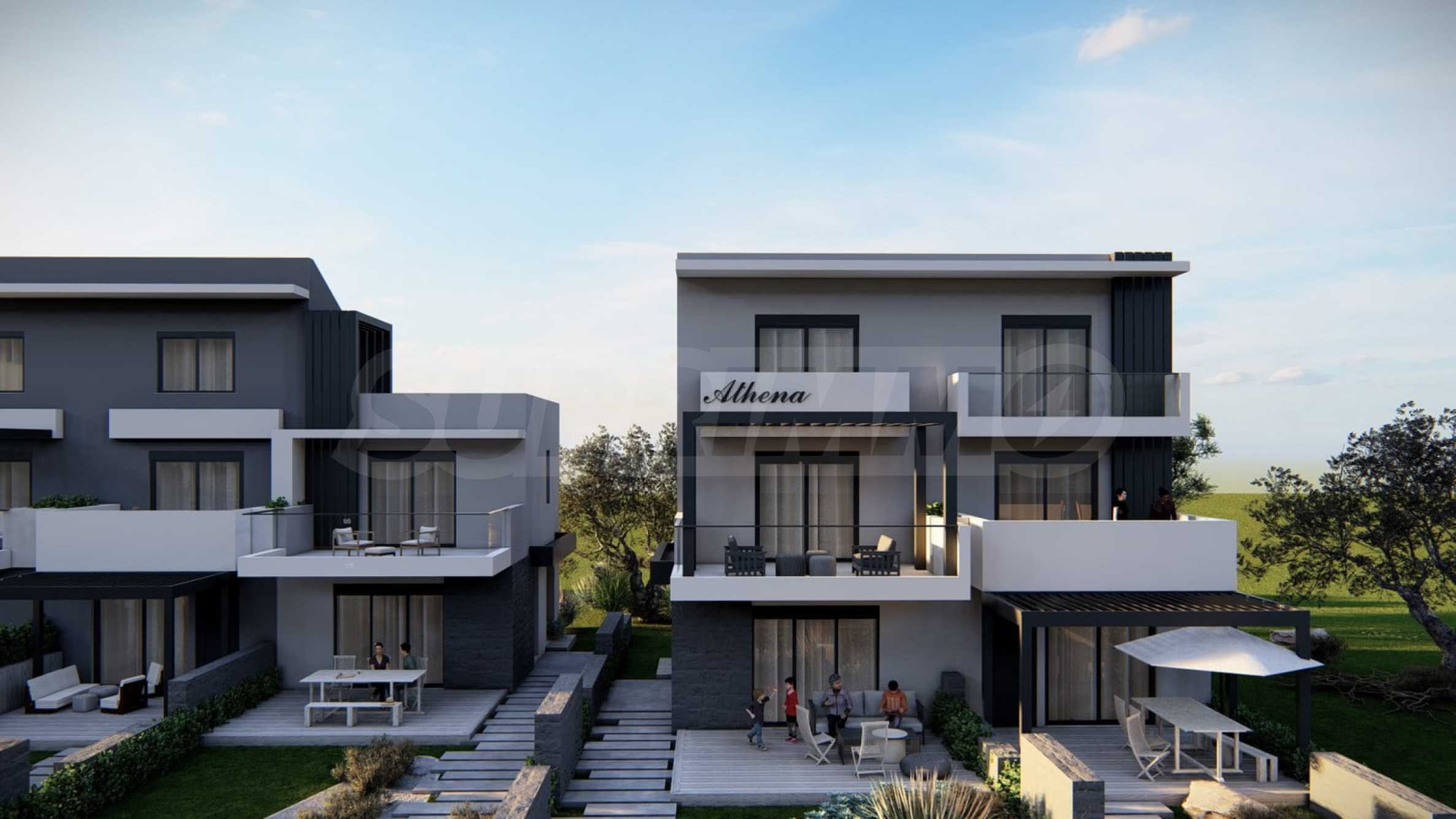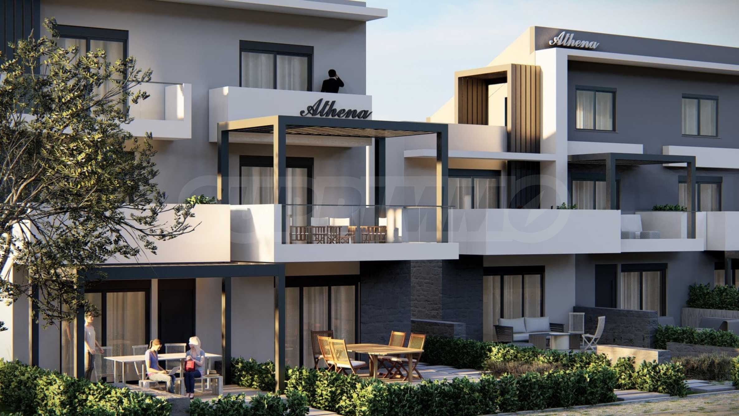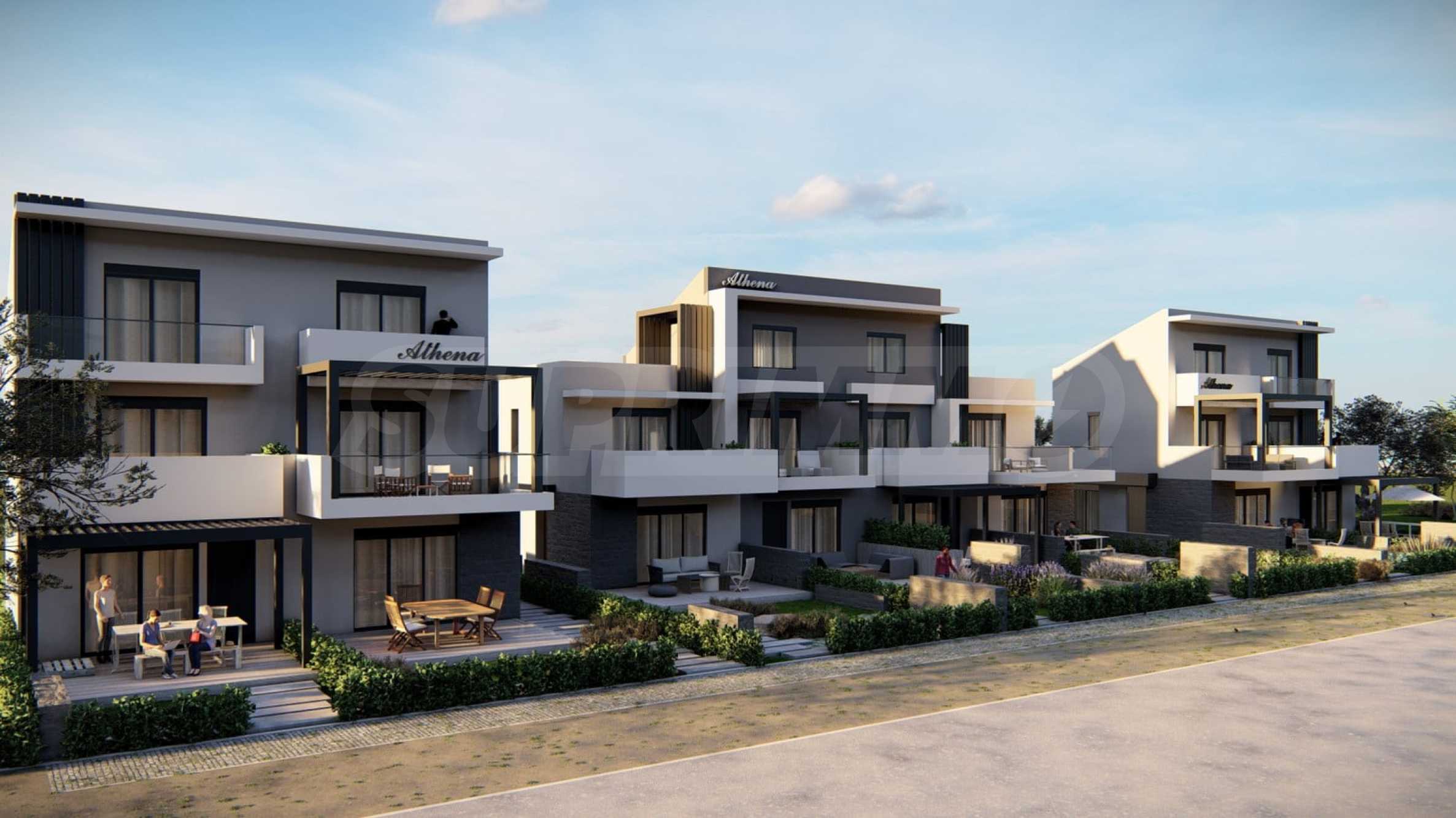 Athena включает в себя 8 роскошных летних резиденций с просторными, светлыми комнатами и функциональной планировкой, обеспечивающей жильцам уединение и спокойный отдых. Здания спроектированы не только с элегантным внешним видом, но и с возможностью создания открытых пространств для отдыха и релаксации – просторных балконов с перголами и больших веранд. Пространство вокруг домов также соответствует общей концепции и представляет собой сочетание каменных дорожек и зелёных кустарников, придавая комплексу завершенный вид.