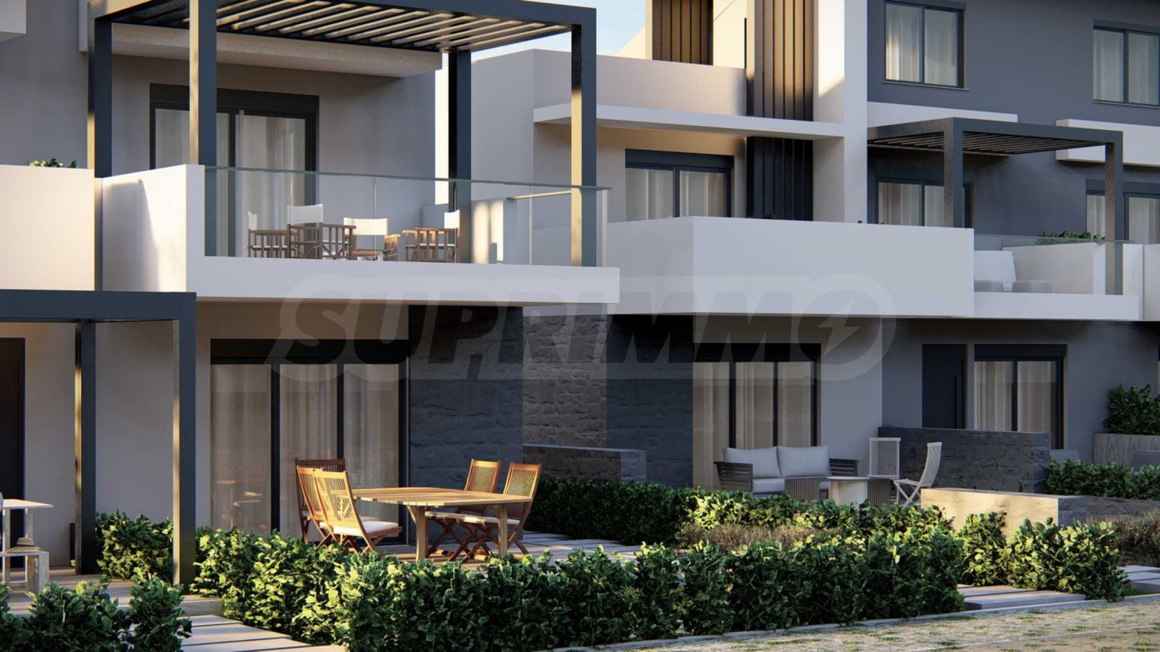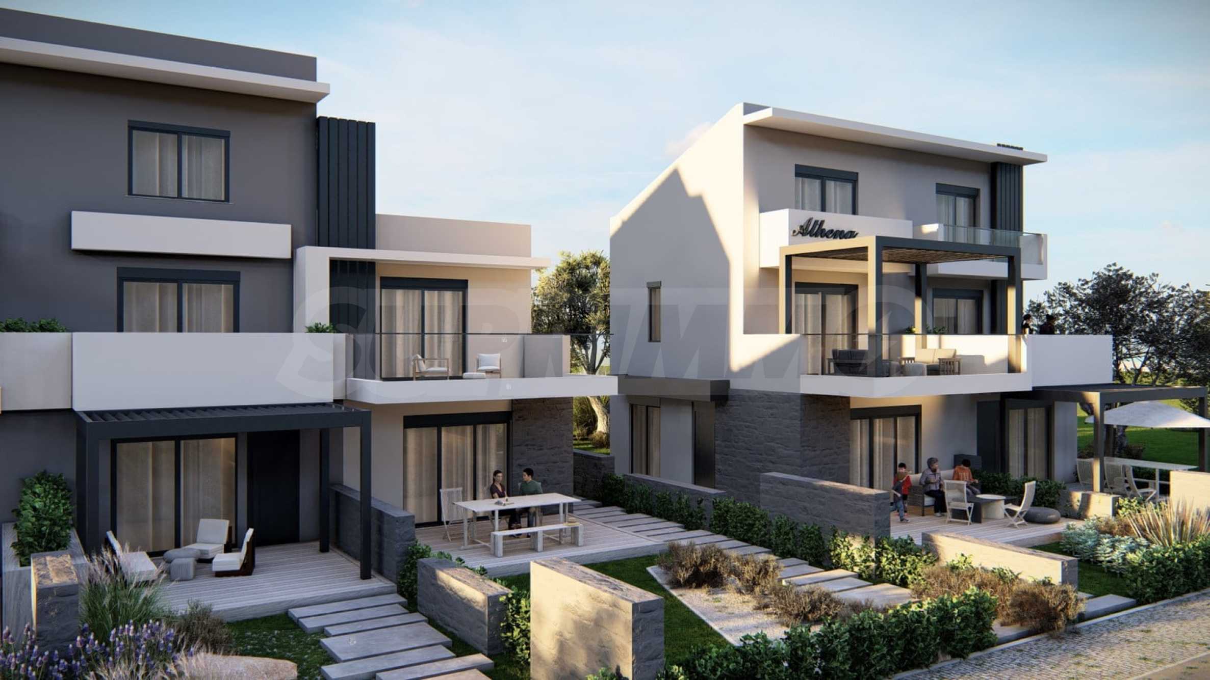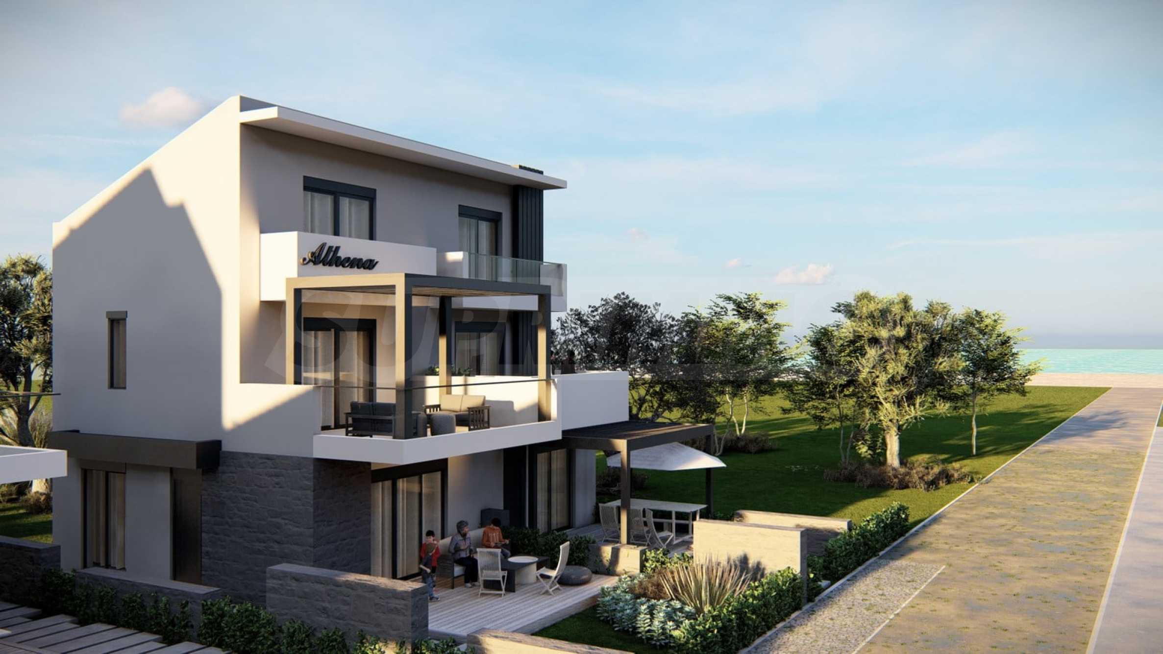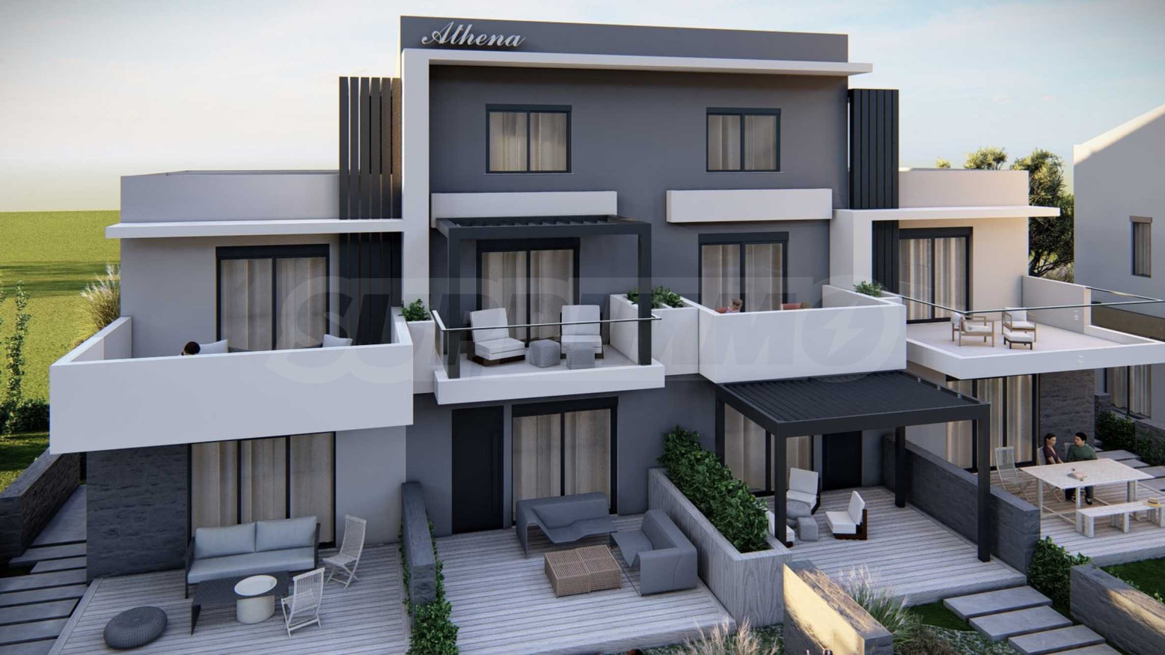 Athena включает в себя 8 роскошных летних резиденций с просторными, светлыми комнатами и функциональной планировкой, обеспечивающей жильцам уединение и спокойный отдых. Здания спроектированы не только с элегантным внешним видом, но и с возможностью создания открытых пространств для отдыха и релаксации – просторных балконов с перголами и больших веранд. Пространство вокруг домов также соответствует общей концепции и представляет собой сочетание каменных дорожек и зелёных кустарников, придавая комплексу завершенный вид.