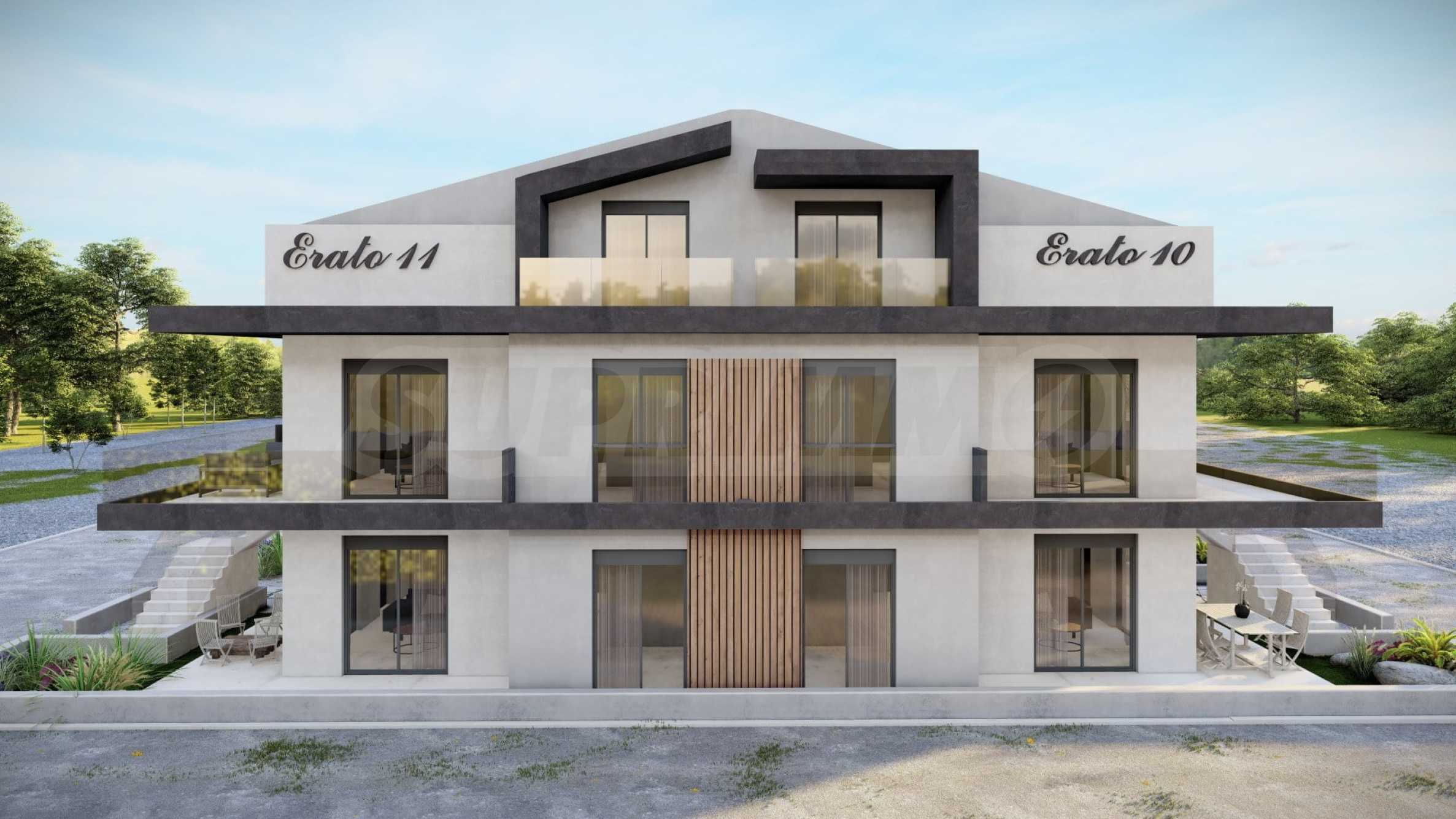 Квартира расположена на втором и третьем этажах здания и имеет общую площадь 69,77 кв. м. Планировка включает гостиную со встроенной кухней и выходом на террасу, две ванные комнаты с туалетом, две комфортные спальни на первом уровне, а на втором уровне расположена хозяйская спальня со своей ванной комнатой и гардеробной. Все квартиры продаются с отделкой «под ключ», с установленными напольными покрытиями, окнами ПВХ, входными и межкомнатными дверями, встроенной кухней и полностью оборудованной ванной комнатой.