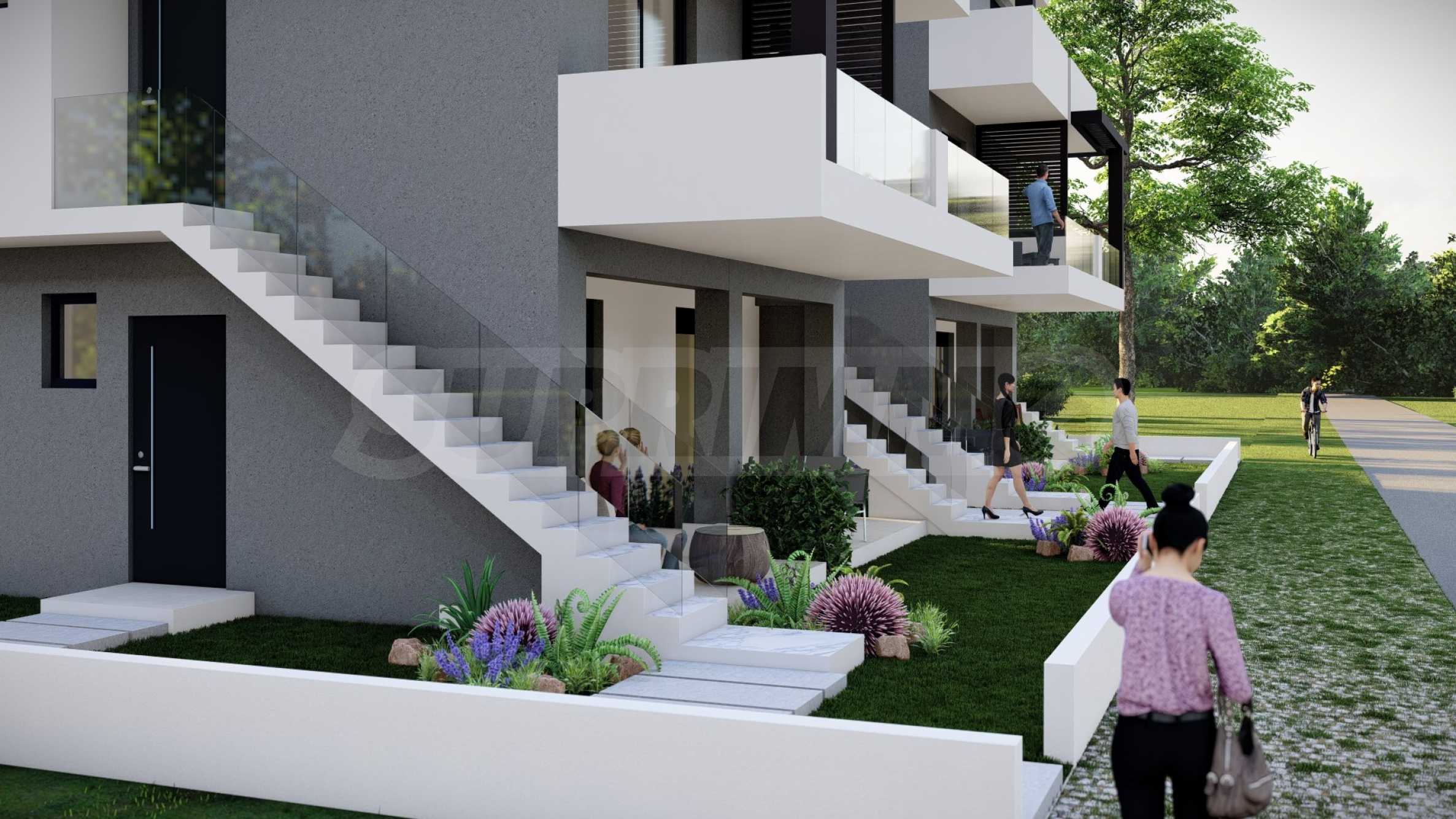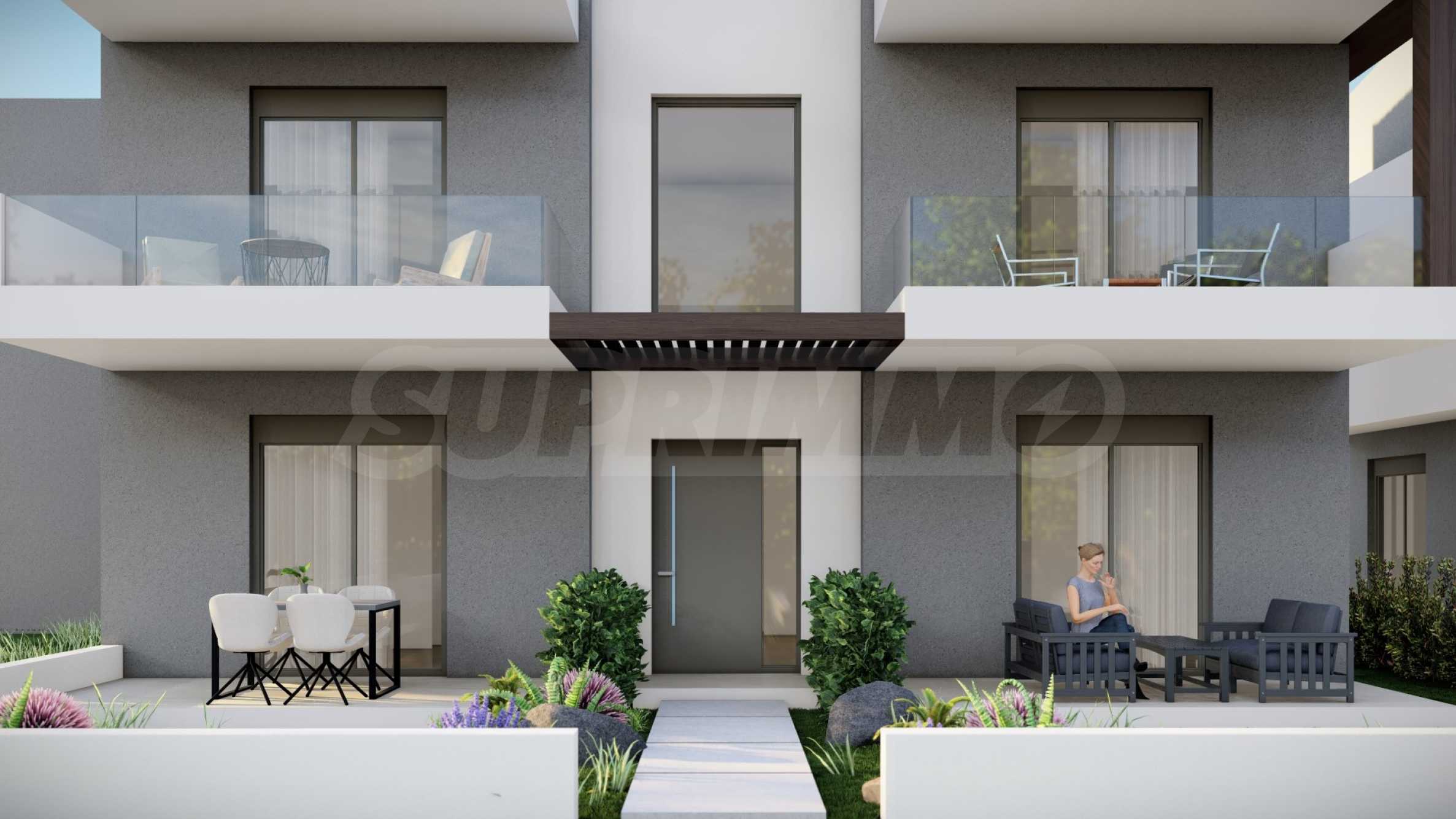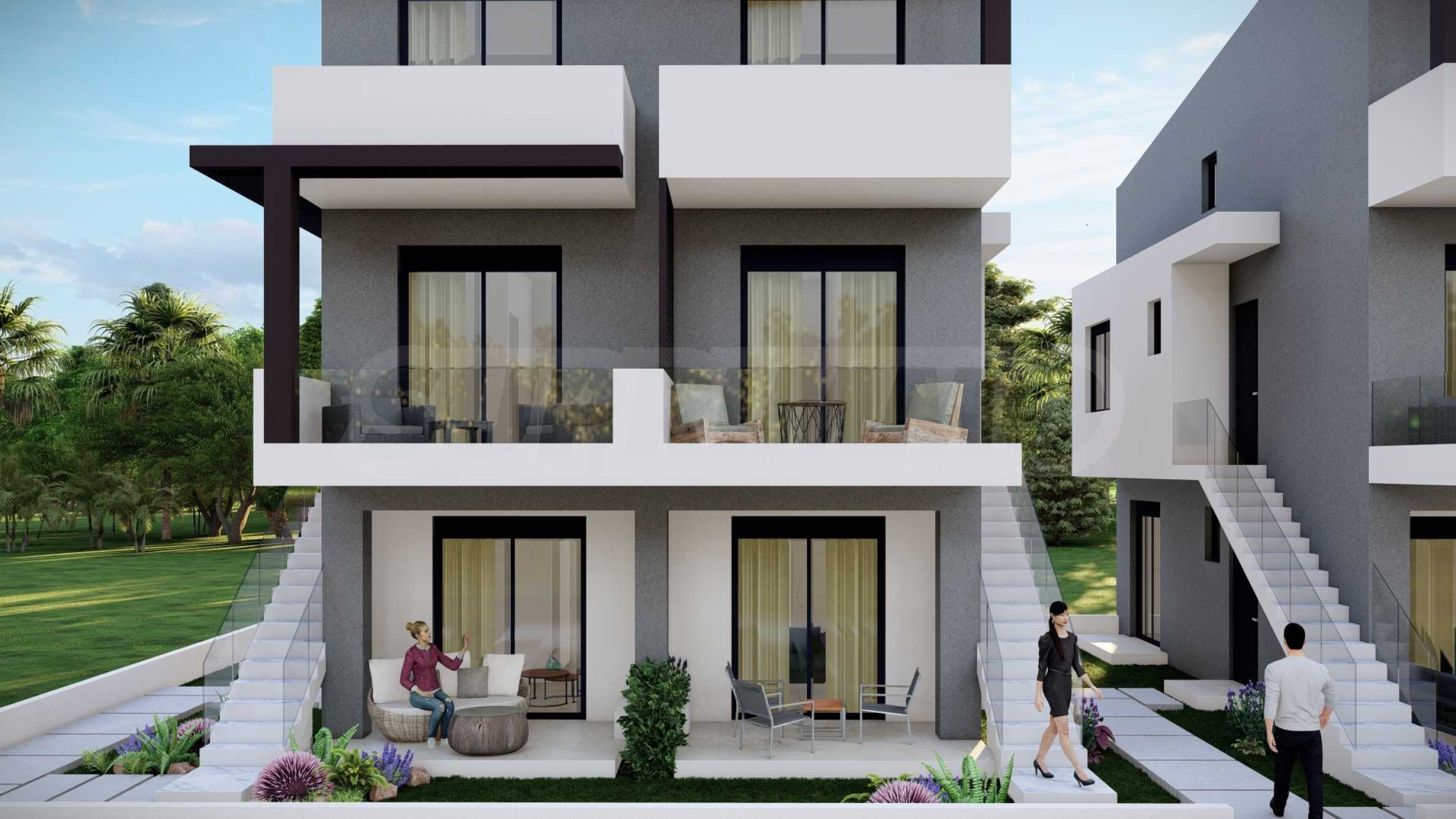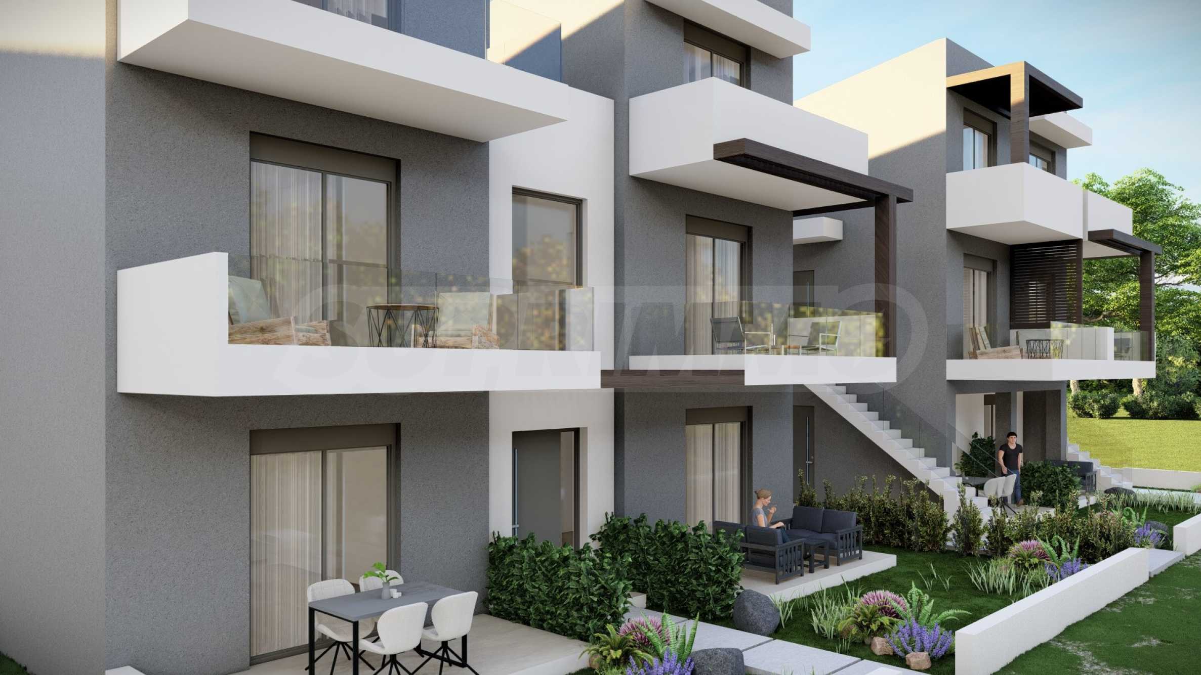 Комплекс состоит из двух зданий, в которых в общей сложности расположено 16 квартир с современным дизайном и функциональными архитектурными решениями. Площадь предлагаемых квартир варьируется от 55,22 кв. м до 60,44 кв. м, доступ к ним осуществляется по внешней лестнице, индивидуальной для каждой квартиры.