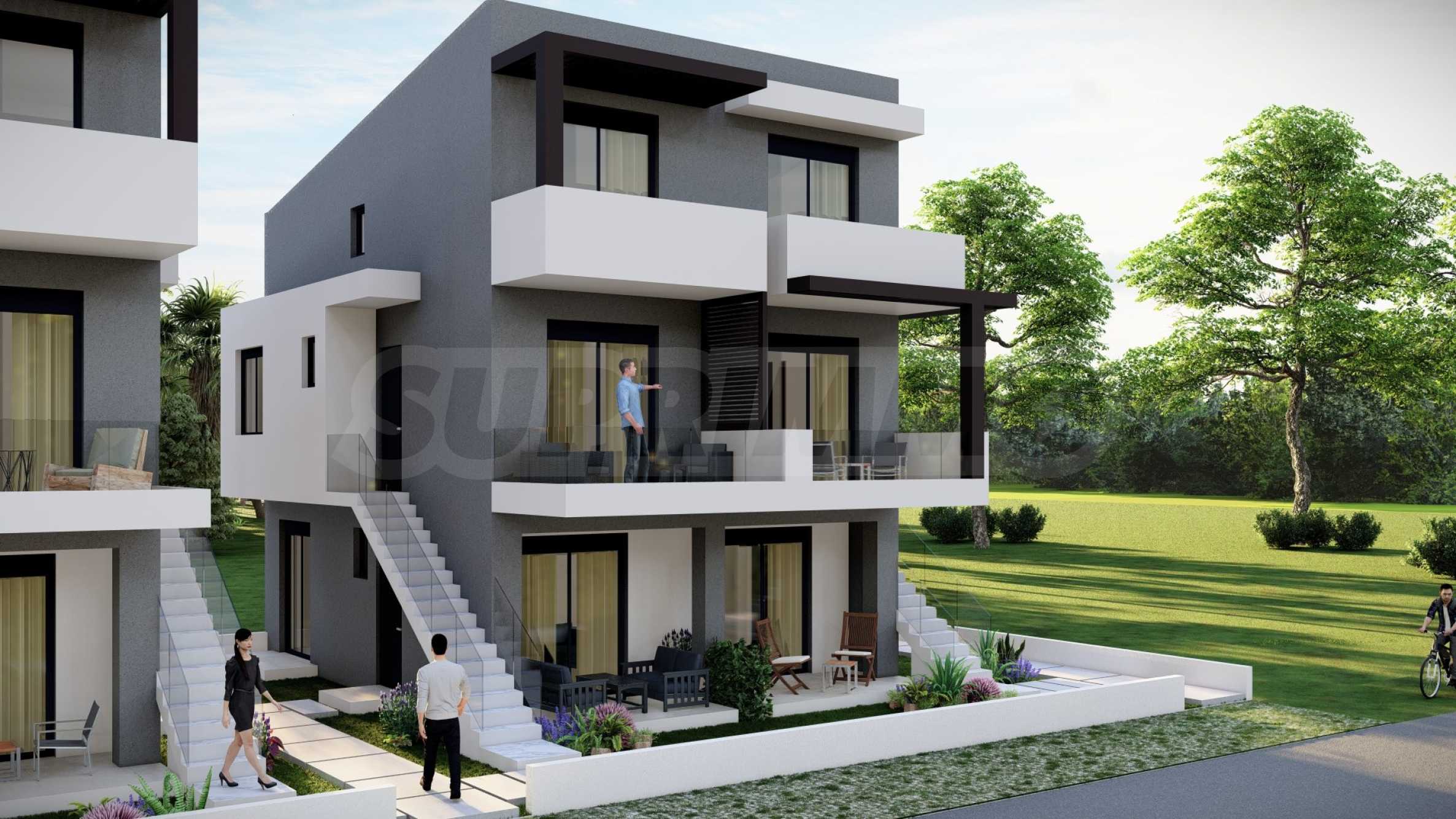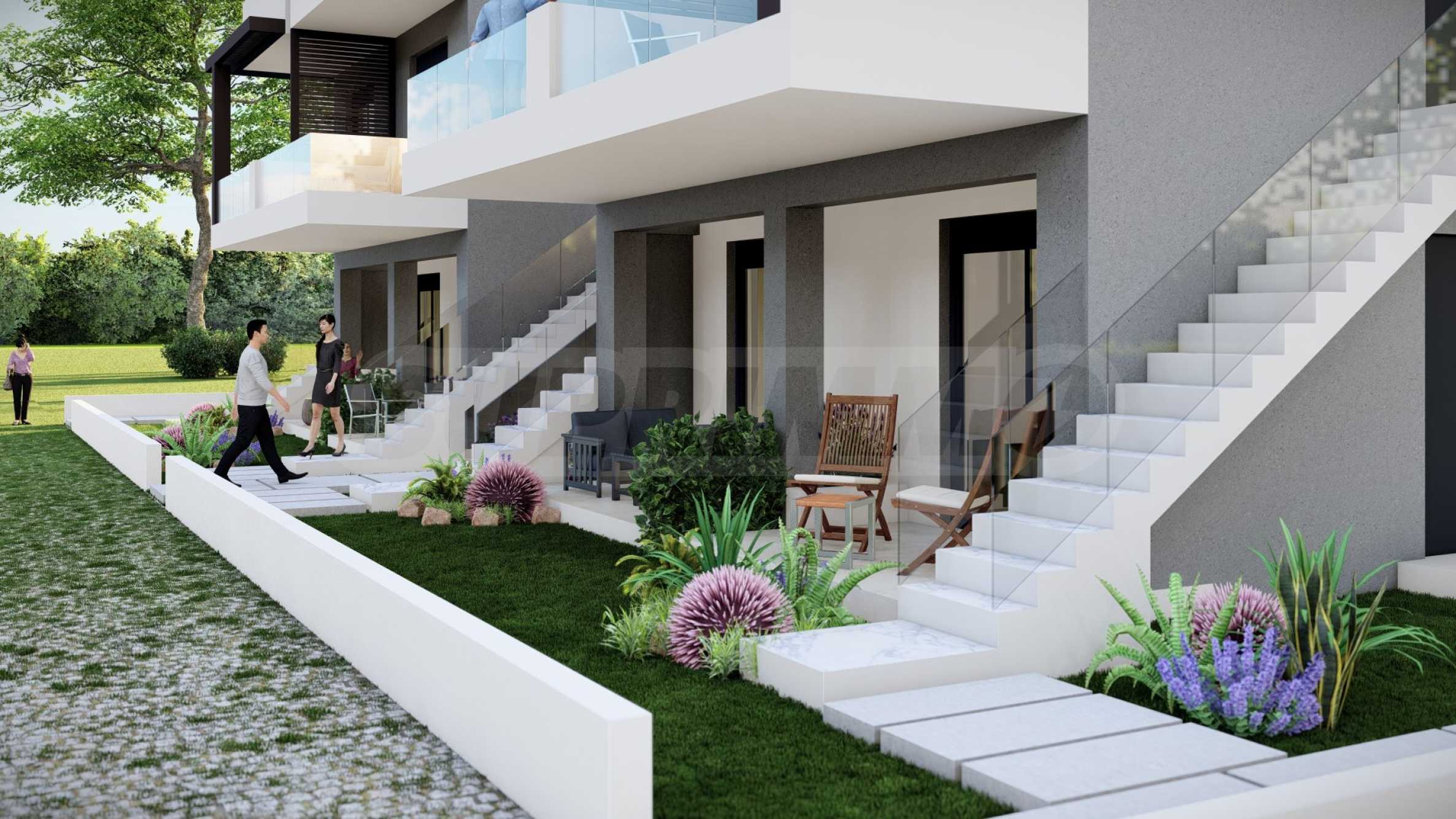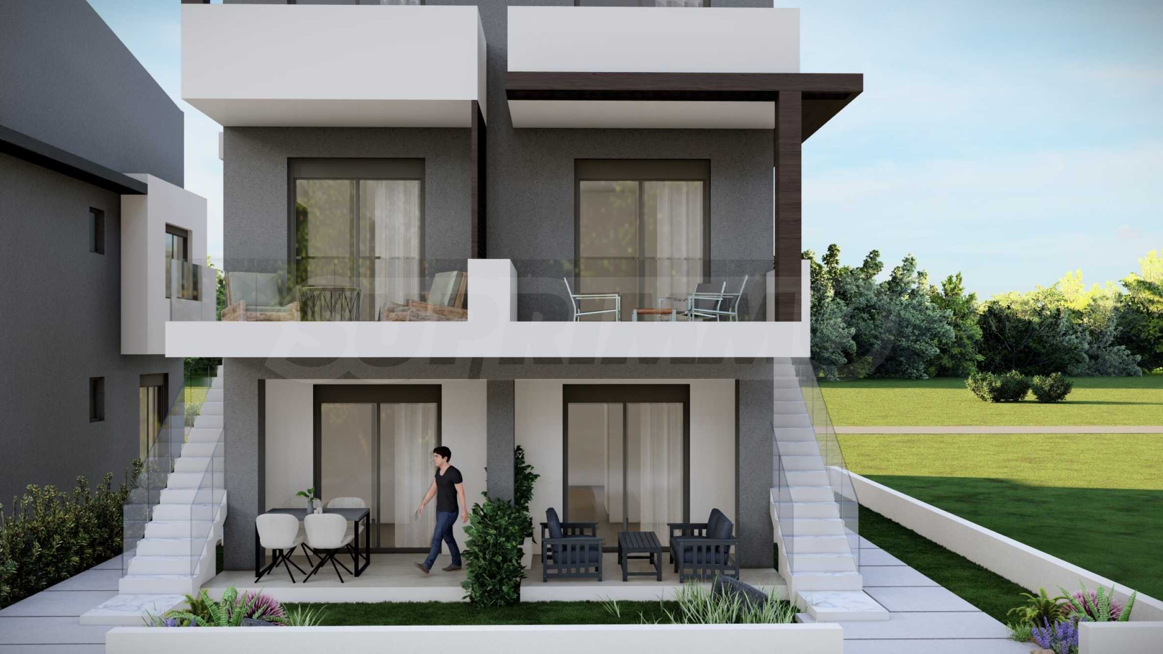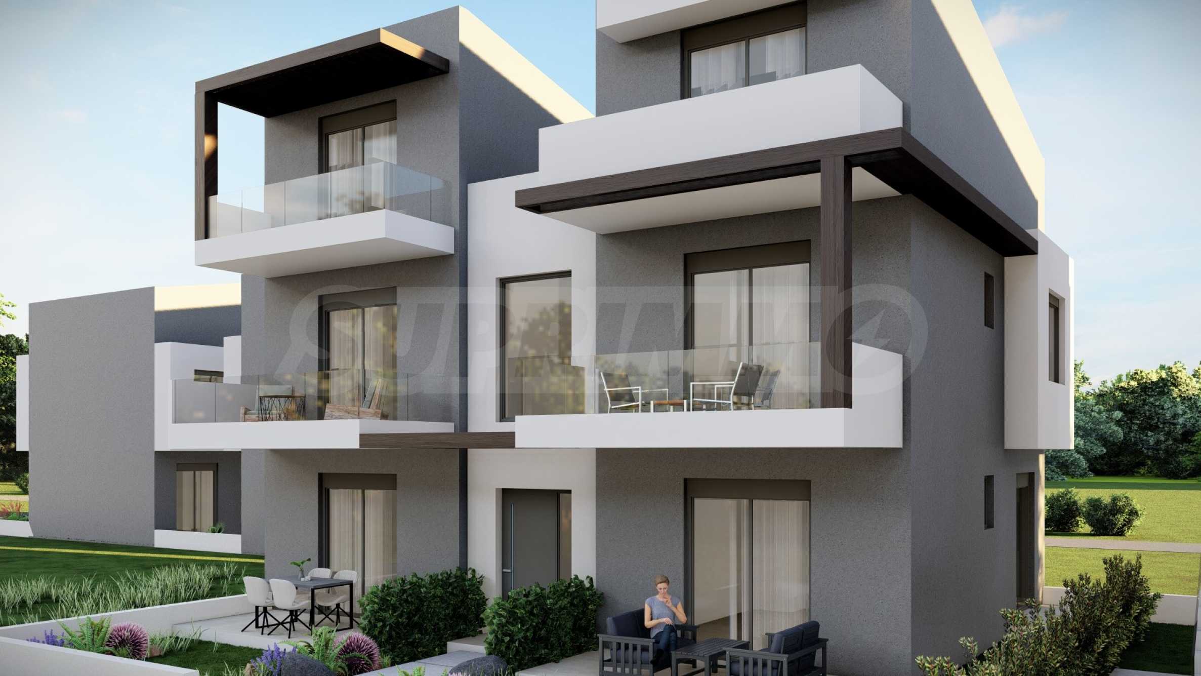 Комплекс состоит из двух зданий, в которых в общей сложности расположено 16 квартир с современным дизайном и функциональными архитектурными решениями. Площадь предлагаемых квартир варьируется от 55,22 кв. м до 60,44 кв. м, доступ к ним осуществляется по внешней лестнице, индивидуальной для каждой квартиры.
