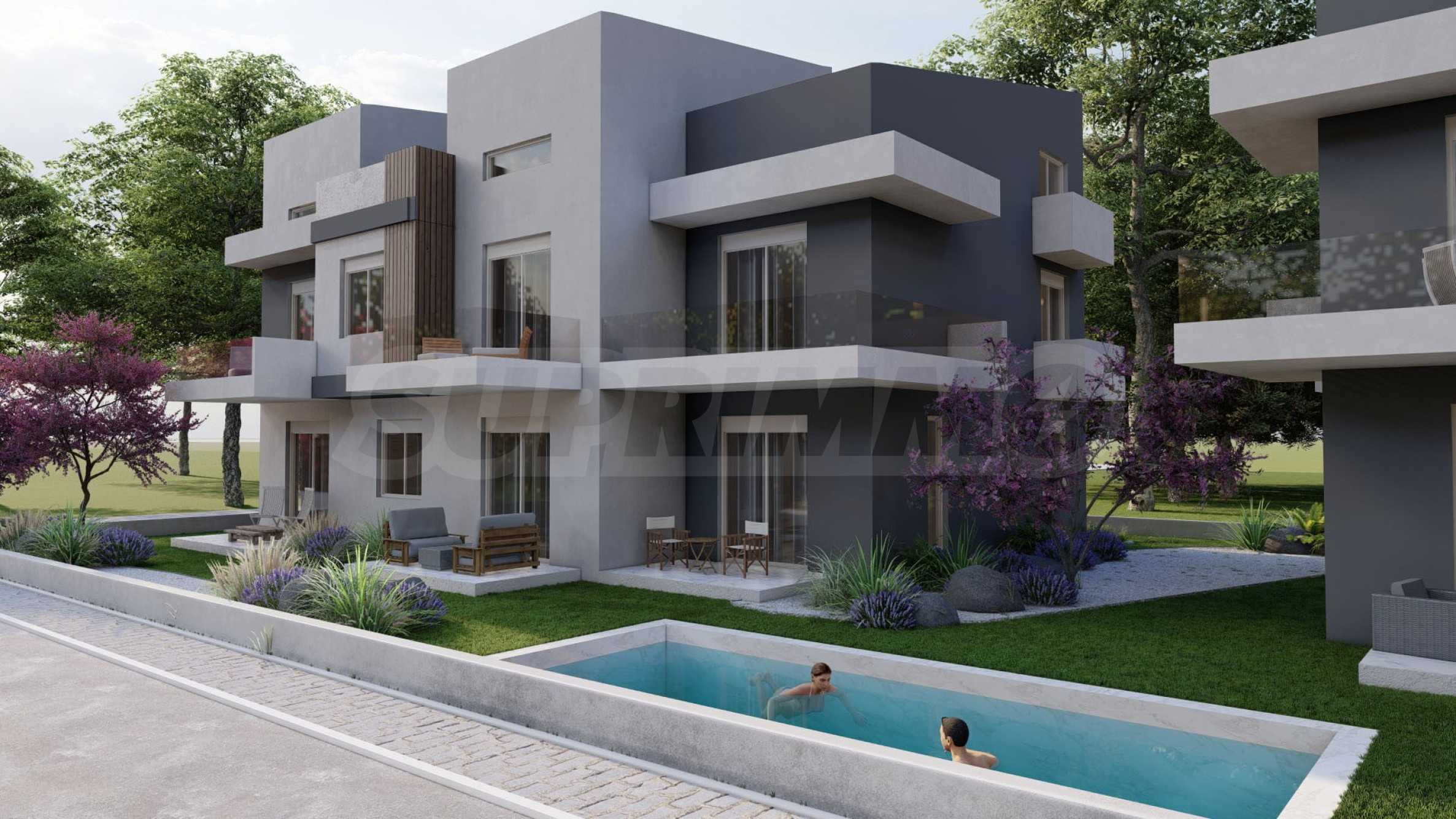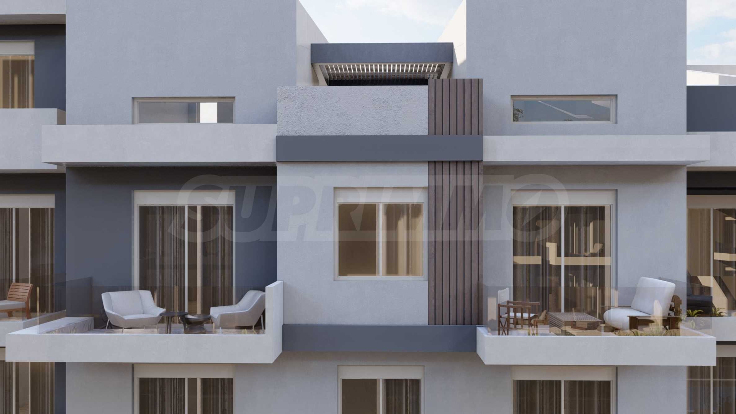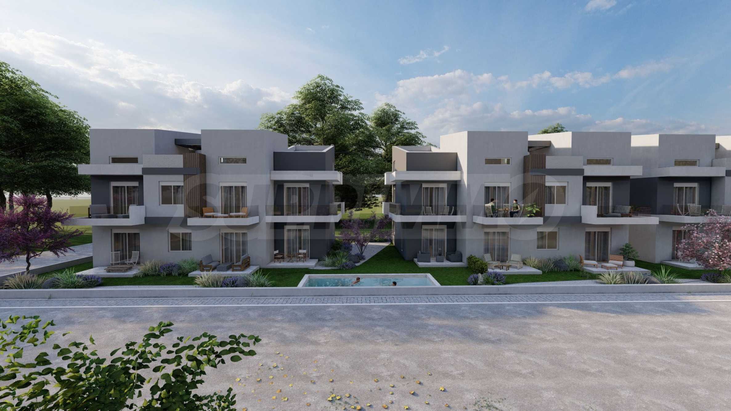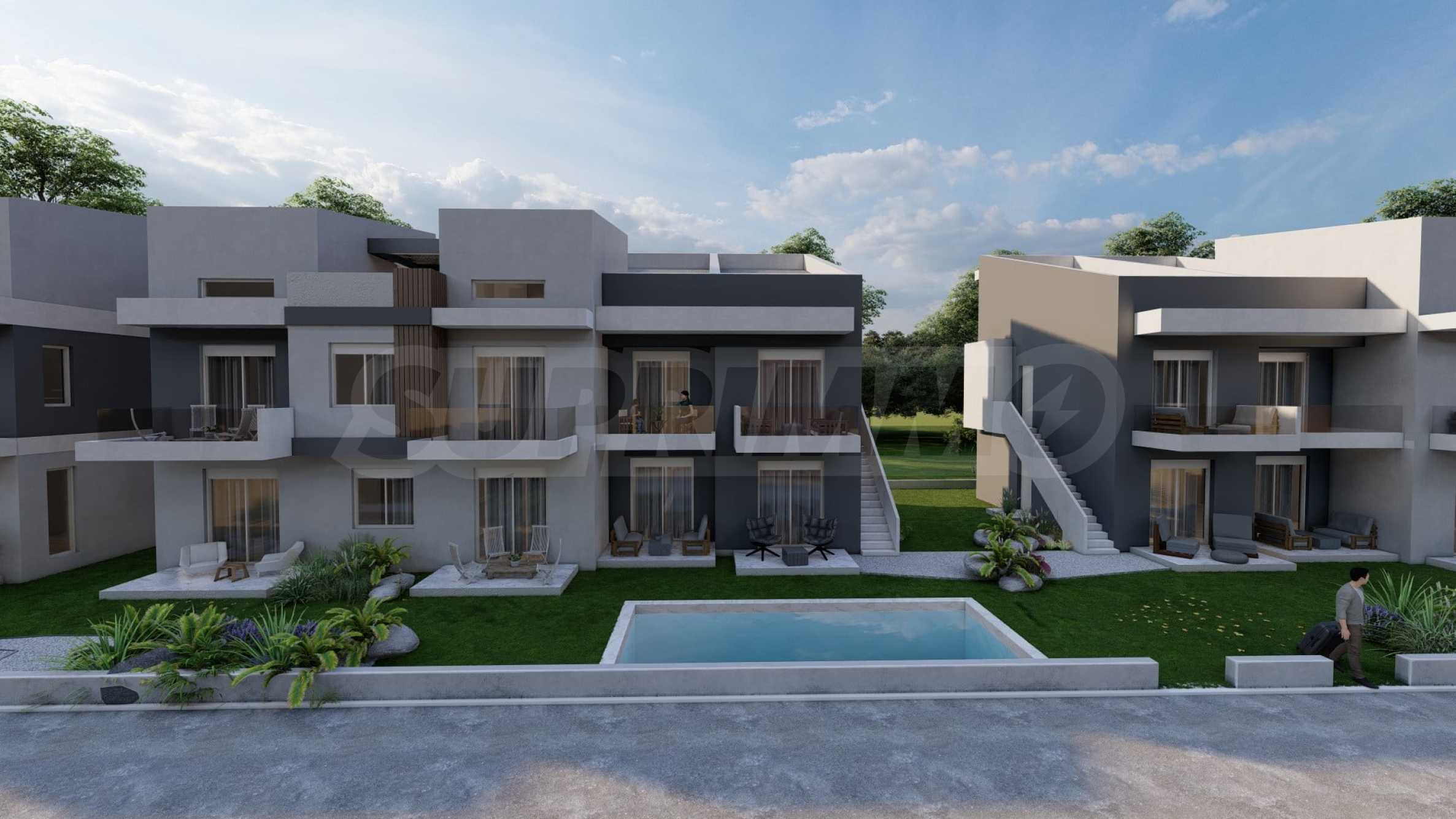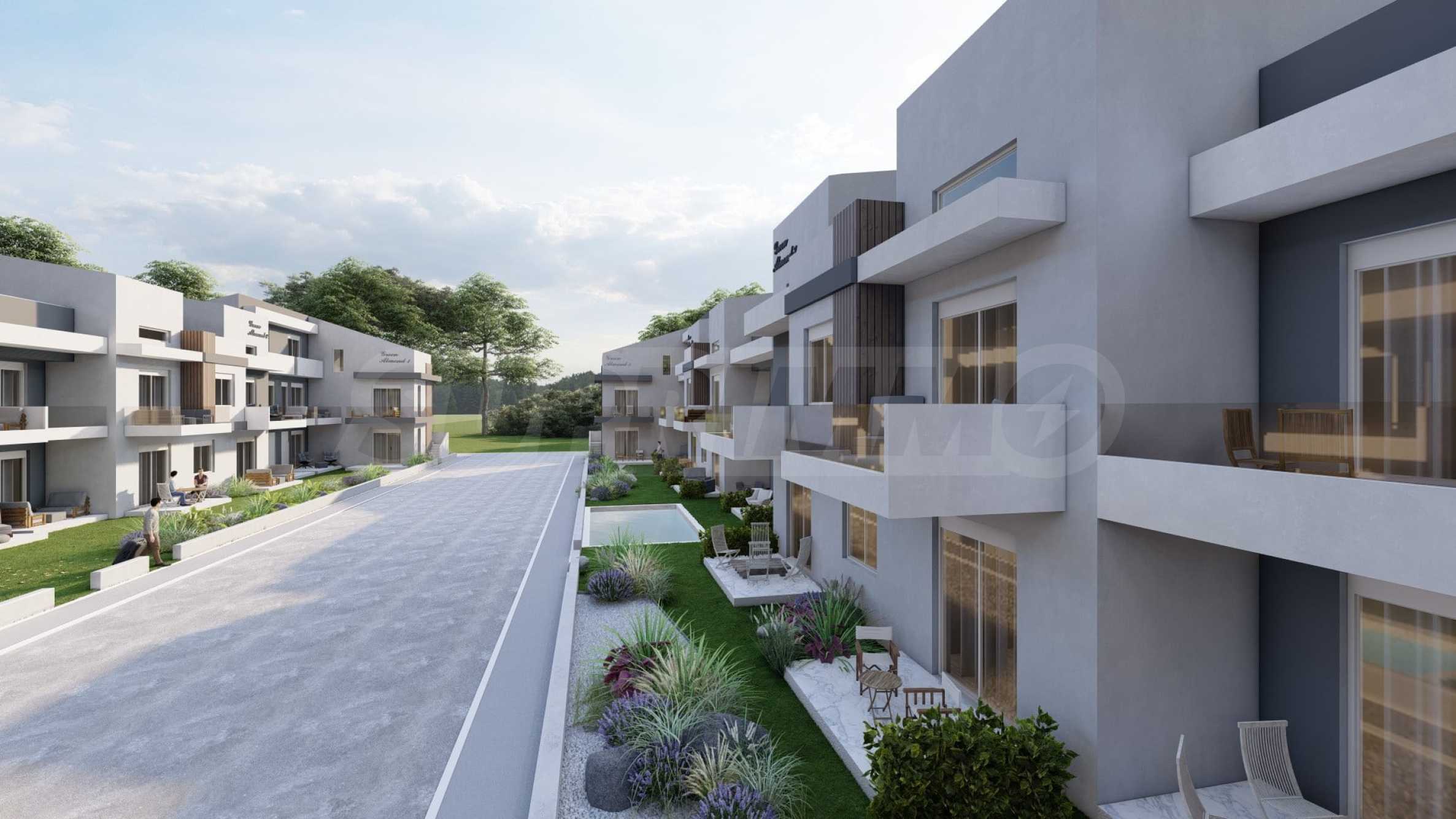 Green Almond — это комплекс из 8 зданий и 70 квартир с высококачественным строительством и инновационными архитектурными решениями, предлагающий жилую среду, сочетающую роскошь и комфорт. Здания имеют современные фасады, контрастные цвета и фактуры, что придает им стильный и вневременной облик. Пространство между зданиями используется рационально, для жильцов предусмотрены парковочные места. К вашим услугам три открытых бассейна, где вы можете наслаждаться водой и загорать, не выходя из дома.