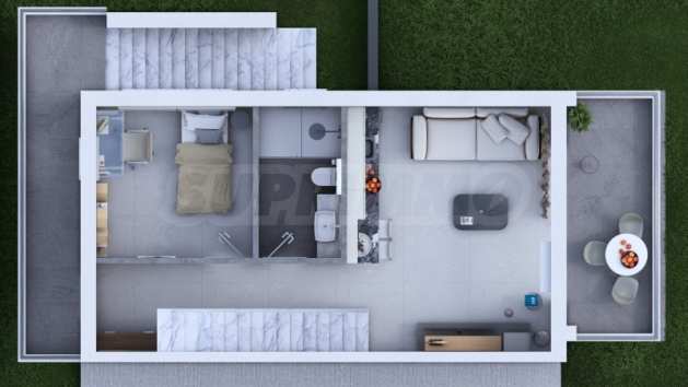 Продается недавно построенный мезонет площадью 72 кв. м. в Неа Перамос Кавала. Мезонет находится в стадии строительства и расположен на первом этаже организованного комплекса из шести домов с общим бассейном на открытом воздухе. Первый этаж площадью 45 кв. м. состоит из гостиной открытой планировки, просторной спальни с выходом на большой балкон и современной ванной комнаты. По внутренней лестнице мы попадаем на чердак площадью 27 кв. м., где есть просторная спальня с балконом и ванная комната. Мезонет будет доставлен с рамами из ПВХ, полами, покрытыми плиткой, бронированной дверью и парковочным местом на открытом воздухе. Внутренние помещения характеризуются современной эстетикой, они также эргономичны и имеют много естественного освещения, в то время как внешний сад с бассейном предлагает моменты релаксации. Расположение недвижимости является привилегированным, так как имеет легкий доступ к спортивным сооружениям, и в то же время находится недалеко от центра поселка, всех магазинов и услуг. Ожидается, что комплекс будет завершен в апреле 2026 года и предусматривает поэтапное погашение в соответствии с развитием проекта. Идеальное предложение для приобретения жилья или дома отдыха, а также для инвестиций. Расстояния: От моря: 1200 м. От центра Неа Перамоса: 900 м. От Кавалы: 15 км От аэропорта Хрисуполи: 45 км. Для осмотра недвижимости необходимо предъявить удостоверение личности.