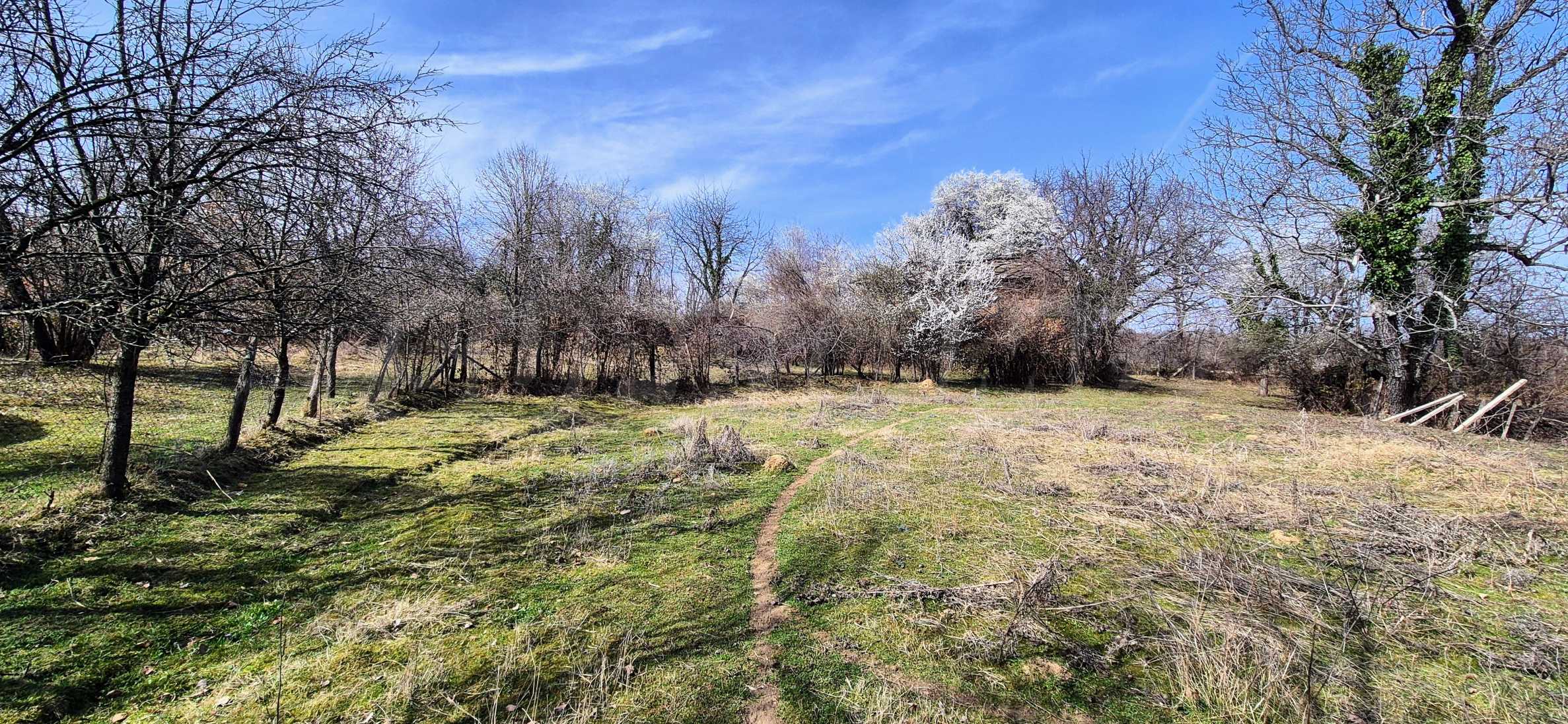 - Двор просторный, ровный и солнечный, с фруктовыми деревьями и достаточным местом для цветника и огорода.