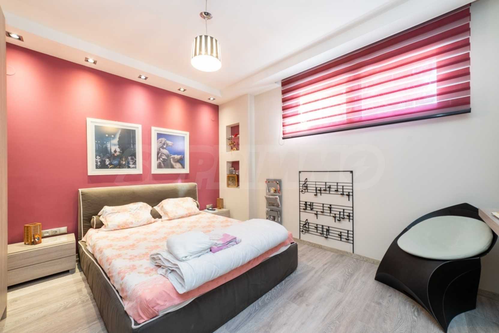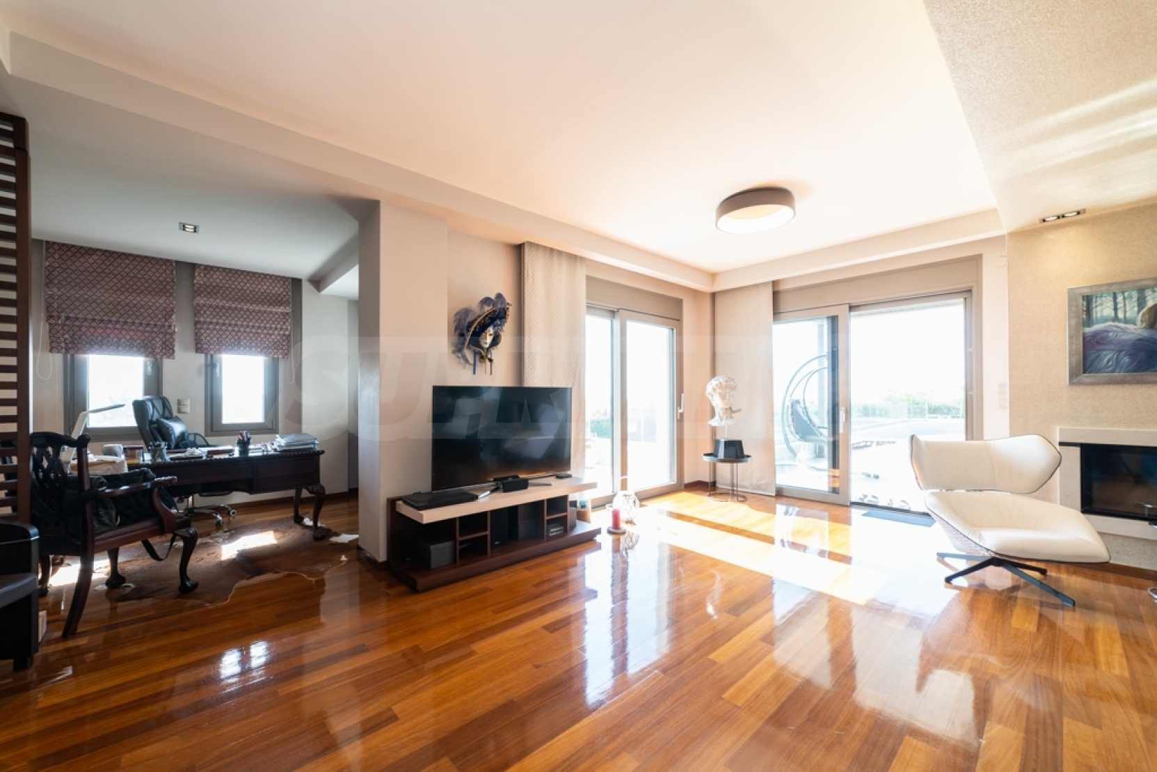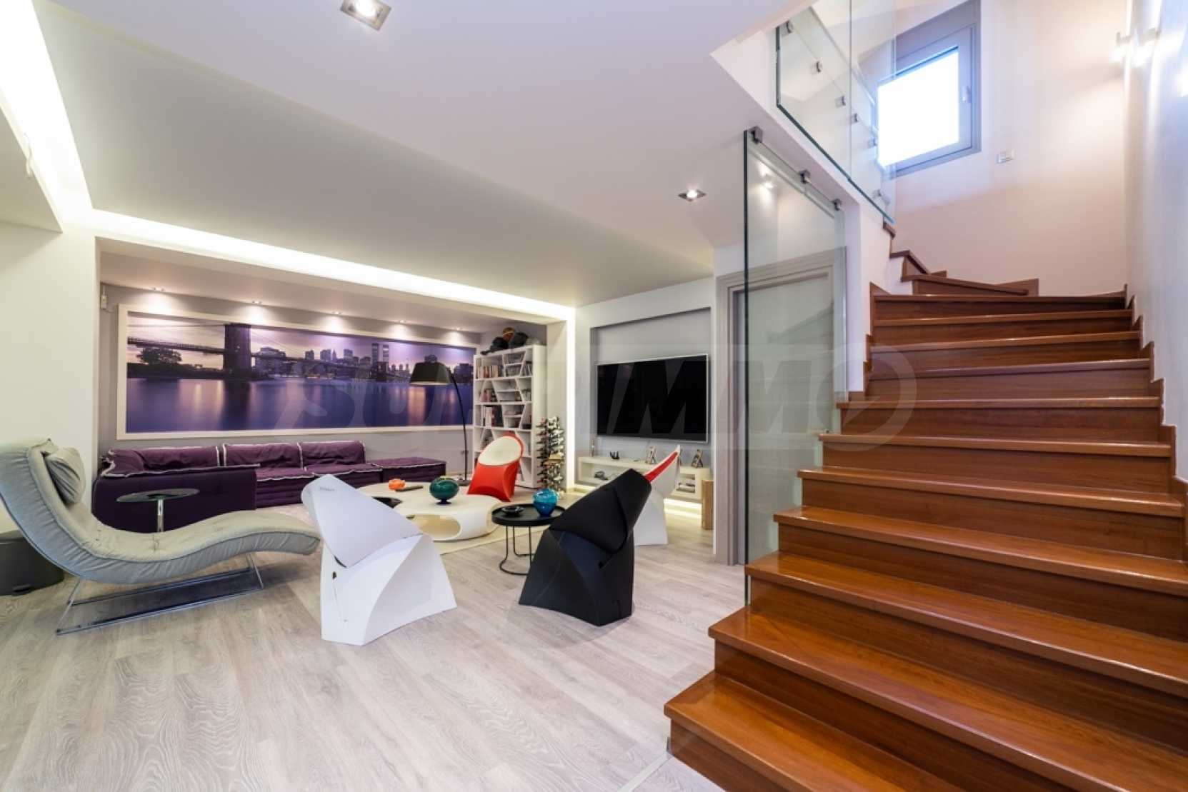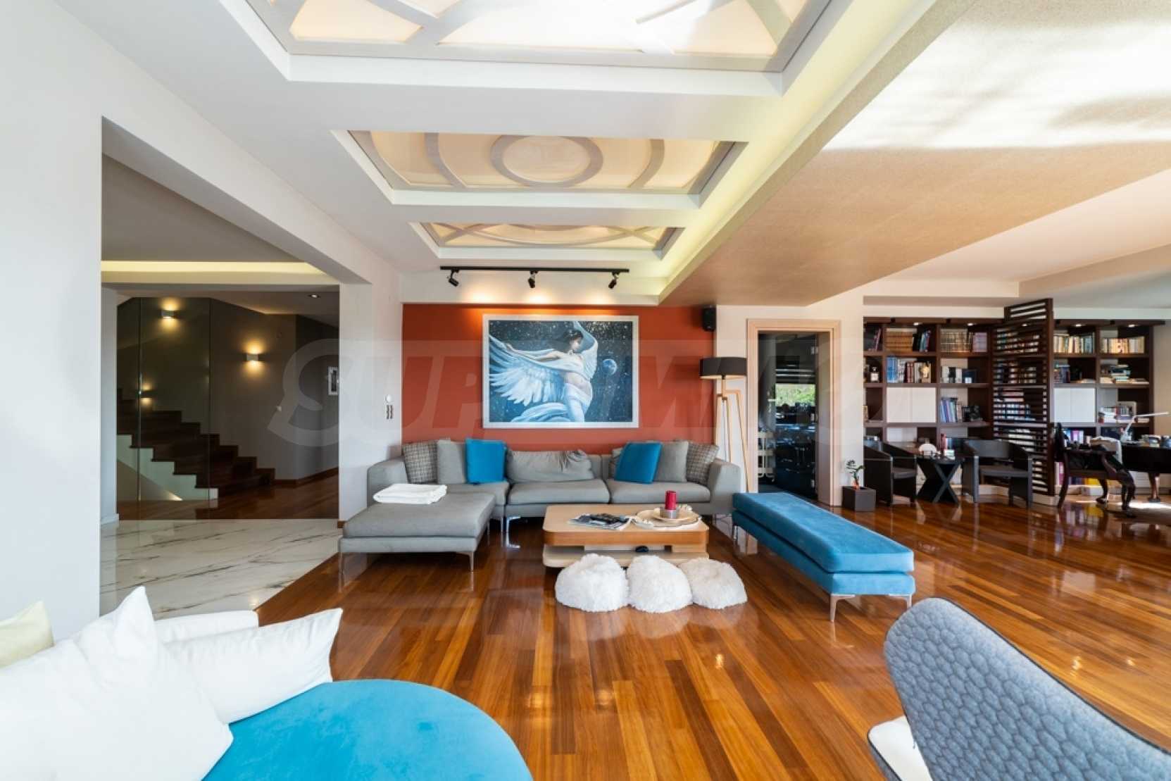 Он состоит из трех уровней с основными и вспомогательными помещениями и имеет юго-восточную ориентацию, что обеспечивает потрясающий вид.