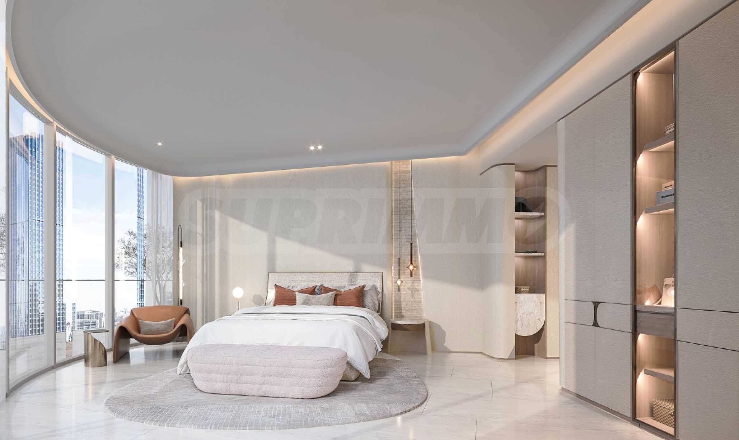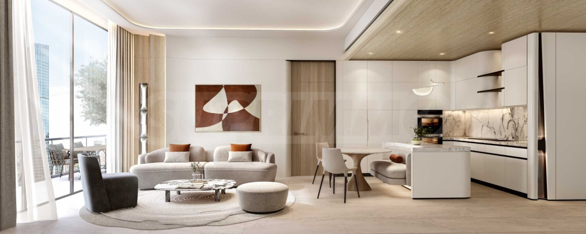 В апартаментах выполнен дизайн интерьера HBA, имеется полностью оборудованная кухня с техникой Miele. Каждый сантиметр пространства был тщательно продуман для создания уютной и в то же время функциональной атмосферы, в которой идеально сочетаются роскошная меблировку и элементы декора.