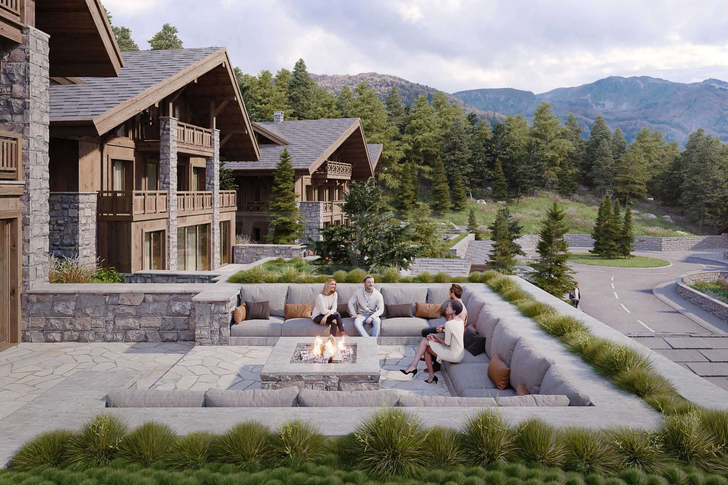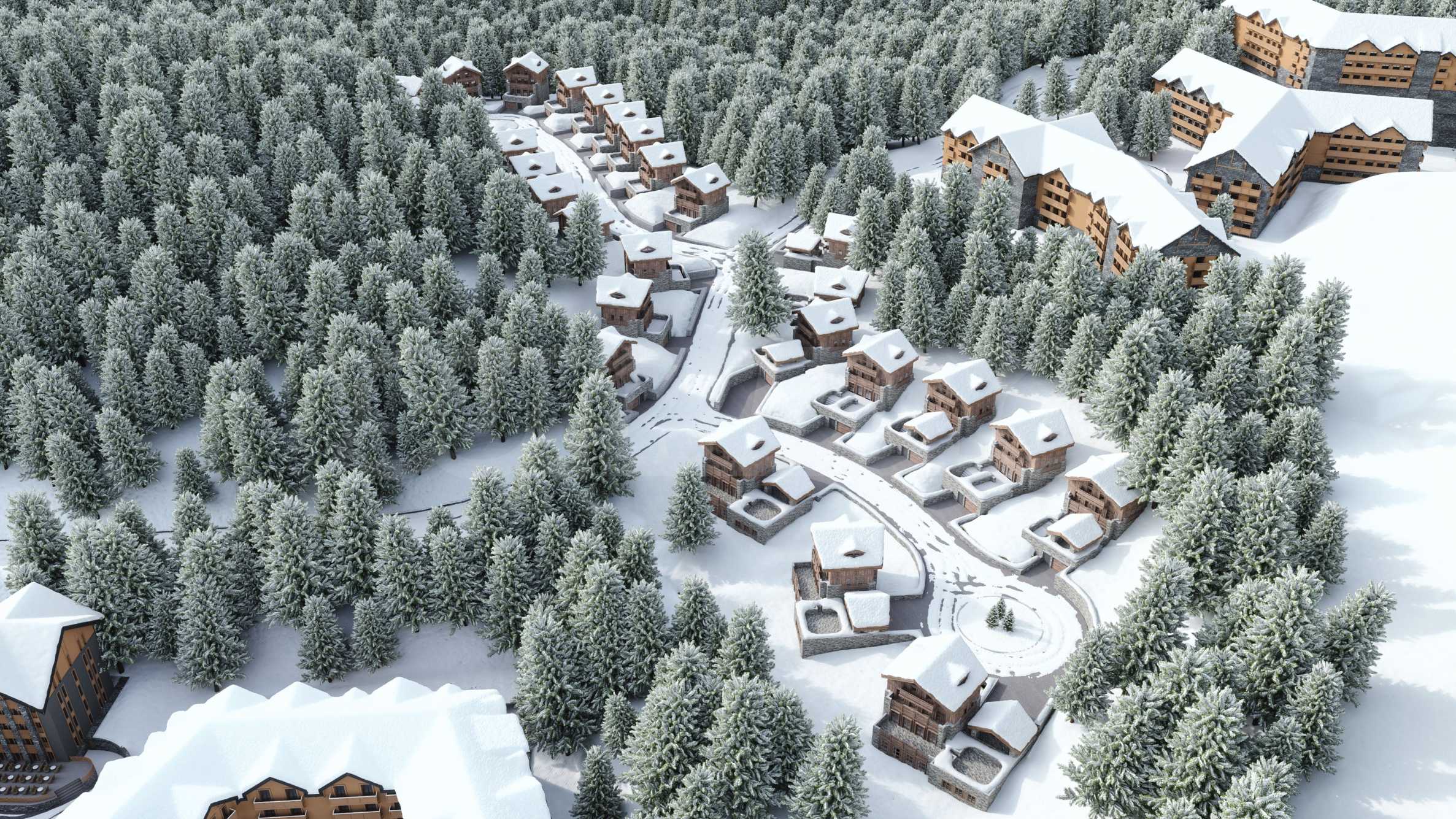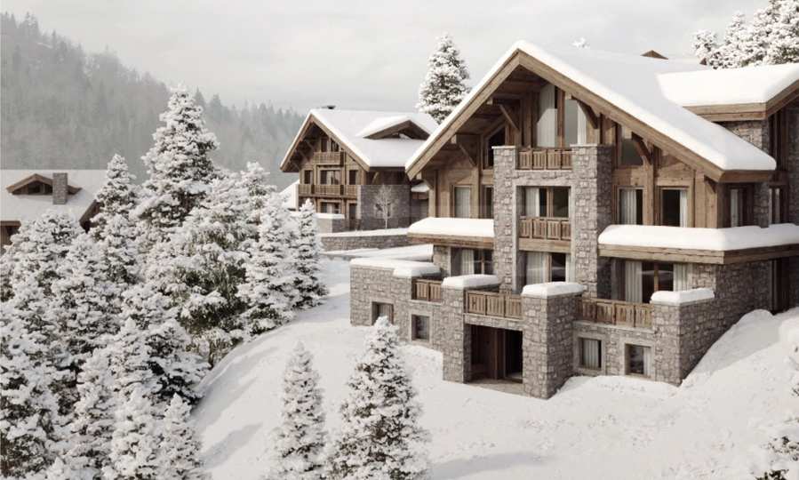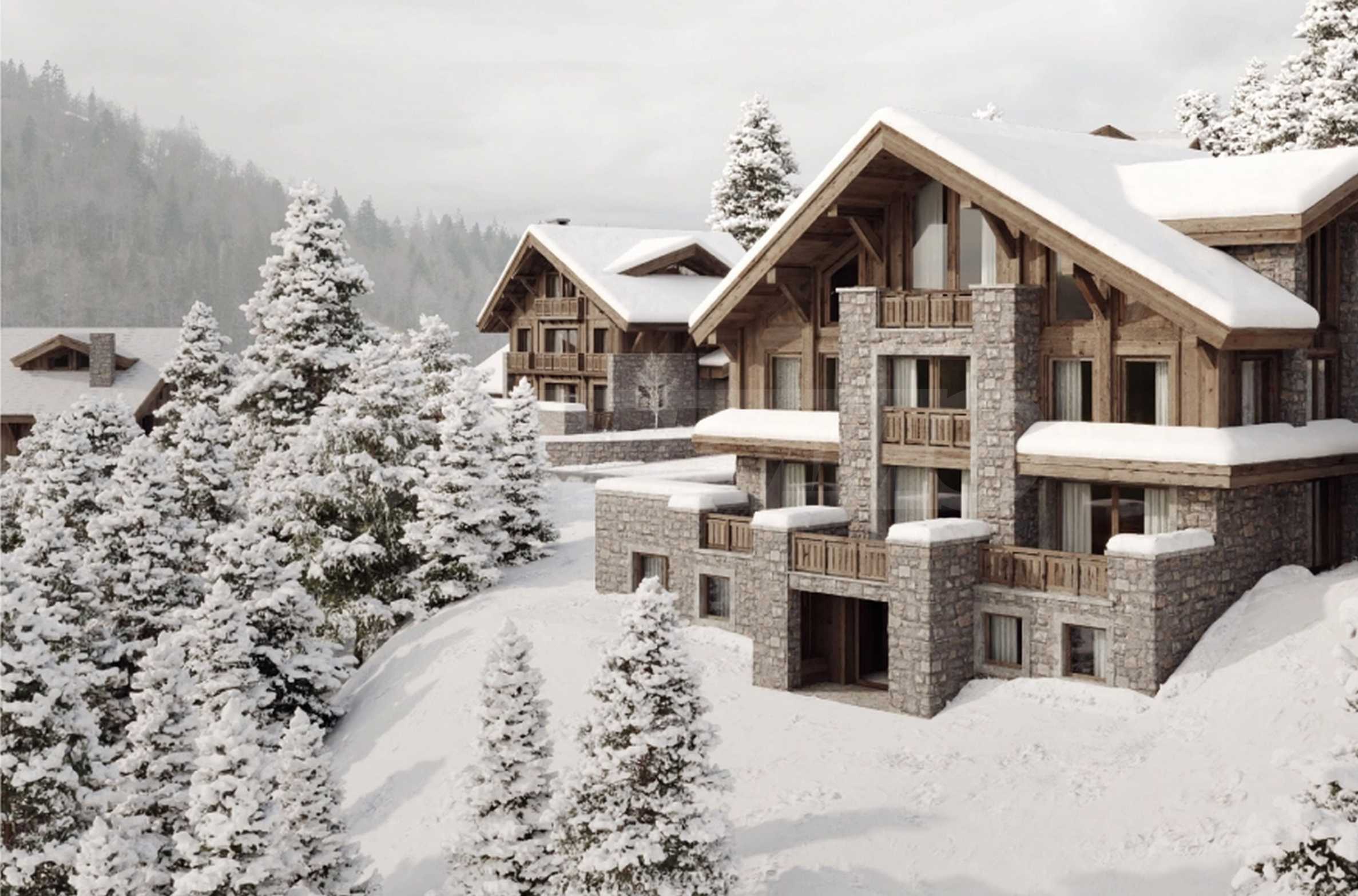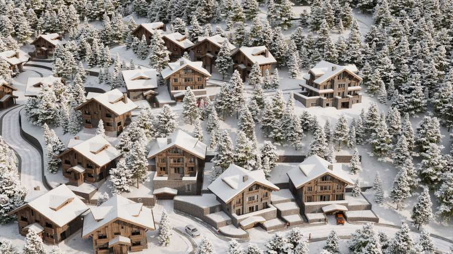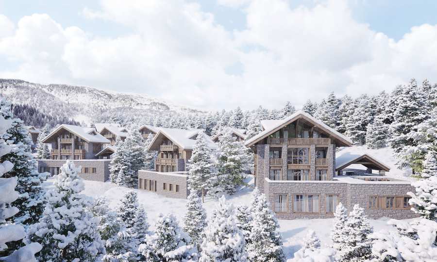 Рядом с гостиничными резиденциями также будут располагаться аккуратные здания, образующие зону шале, строительство которых ведется в два этапа.