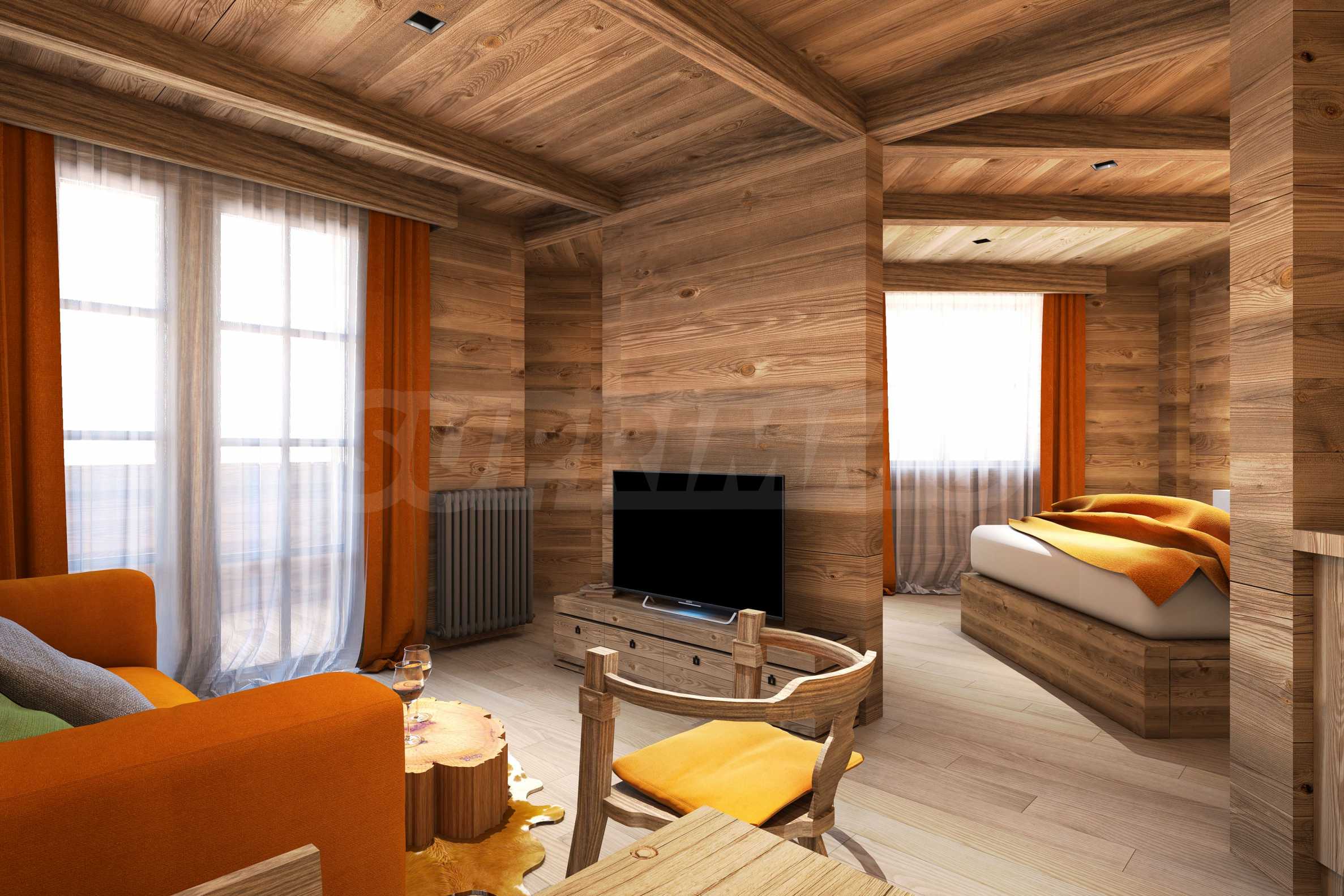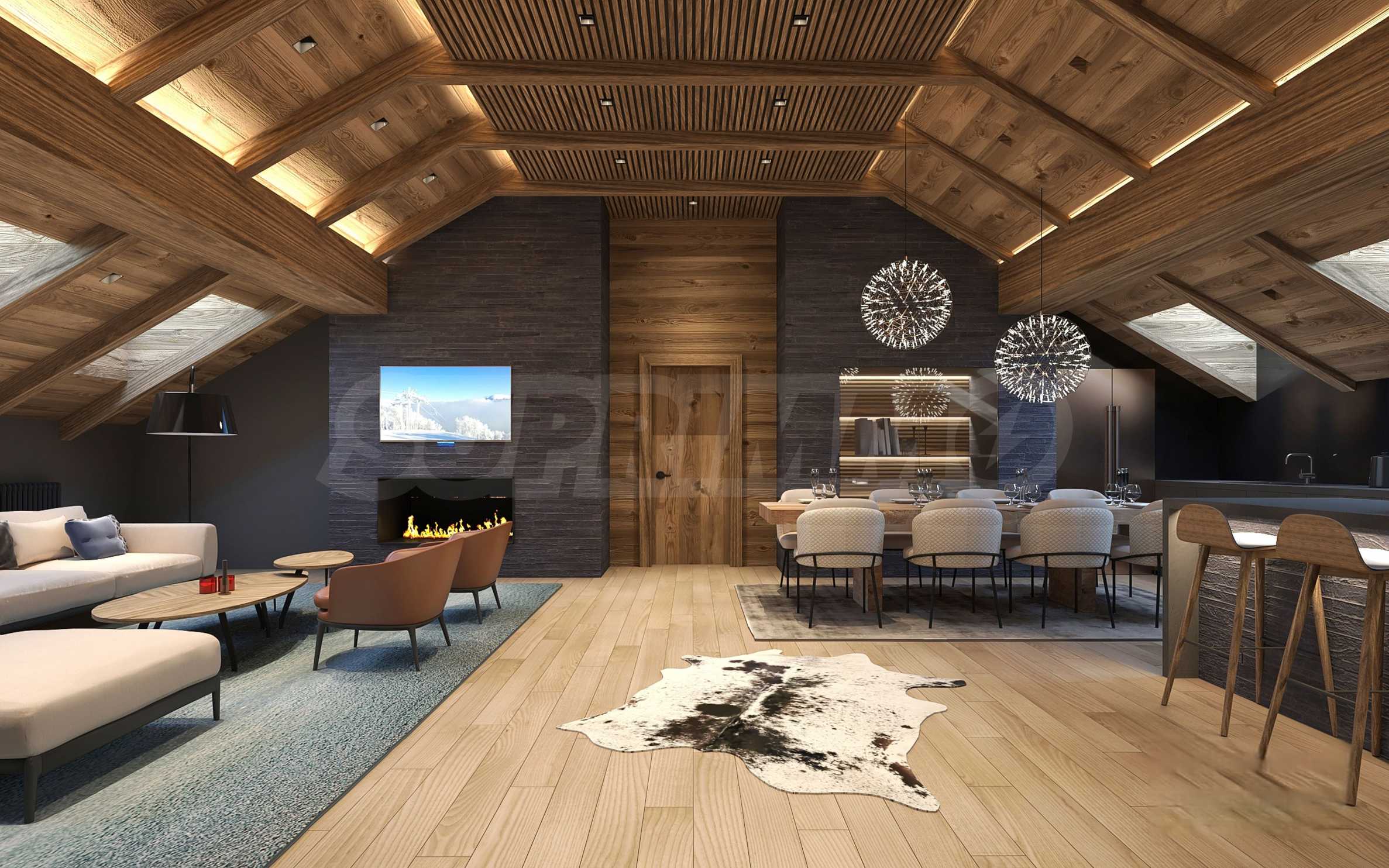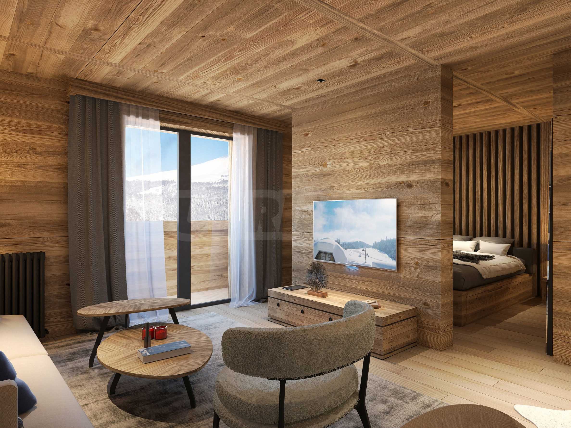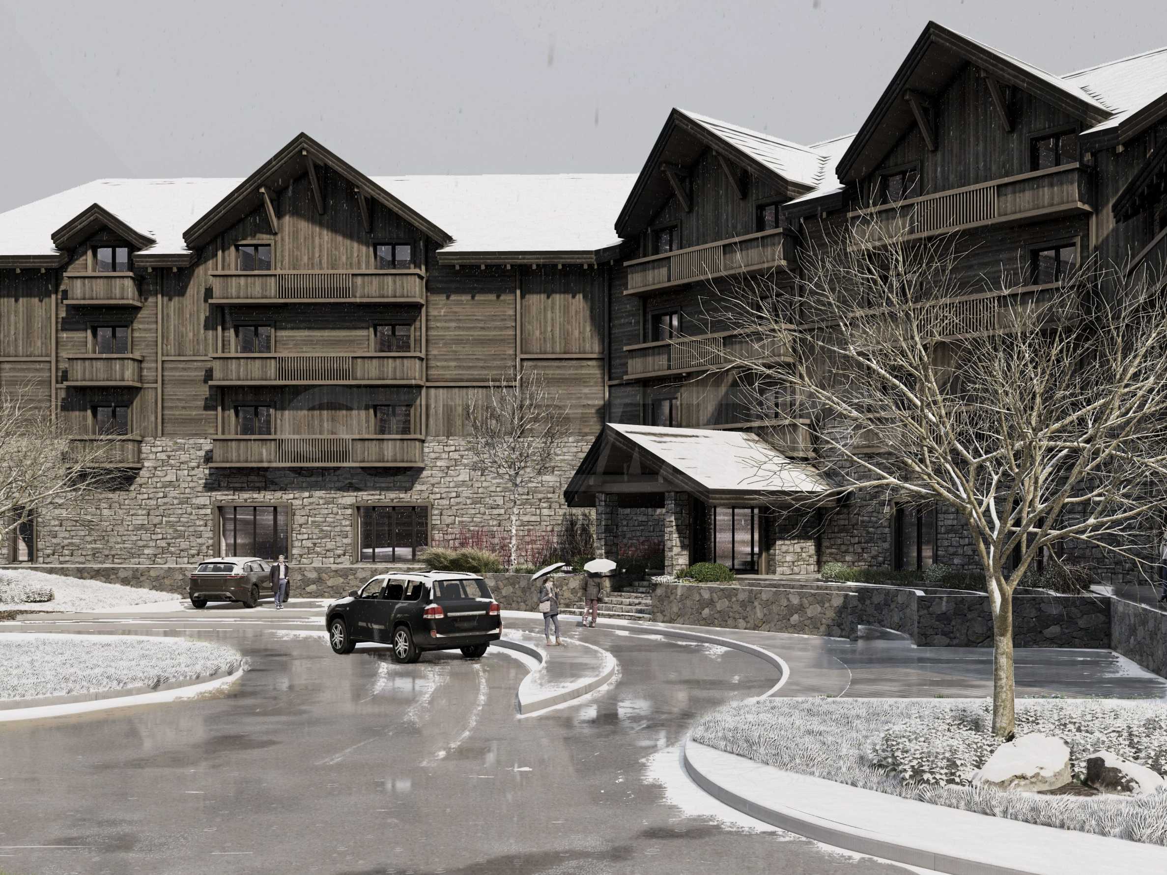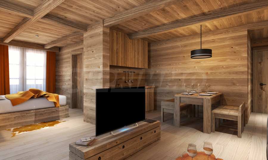 Рядом с гостиничными резиденциями также будут располагаться аккуратные здания, образующие зону шале, строительство которых ведется в два этапа.