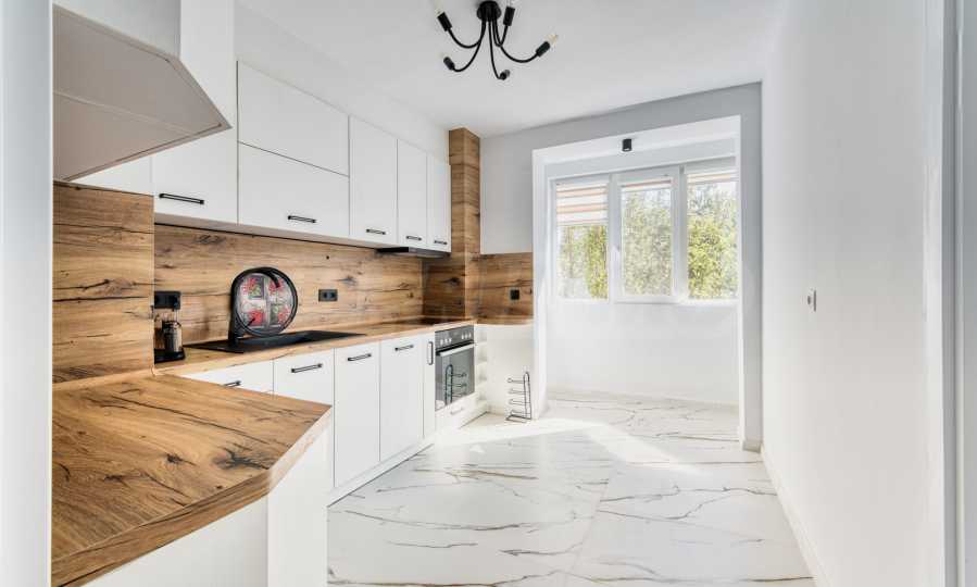 Функциональная отдельная кухня предлагает отличное пространство, что делает эти апартаменты идеальными для семей или людей, которым нужно больше пространства;