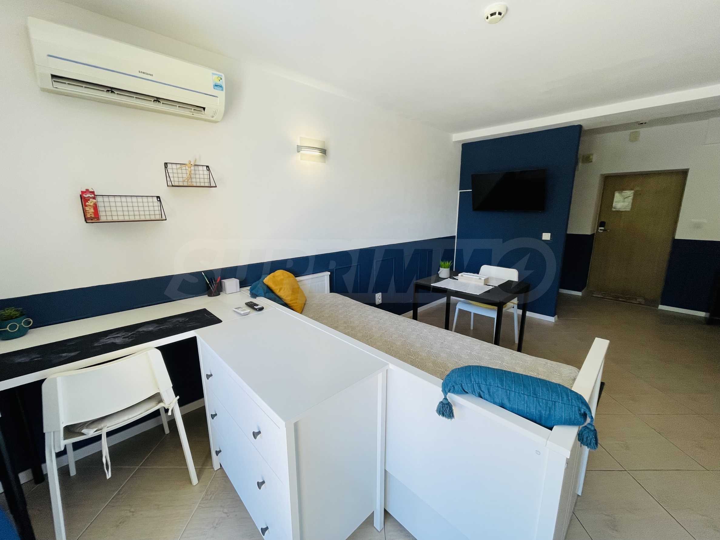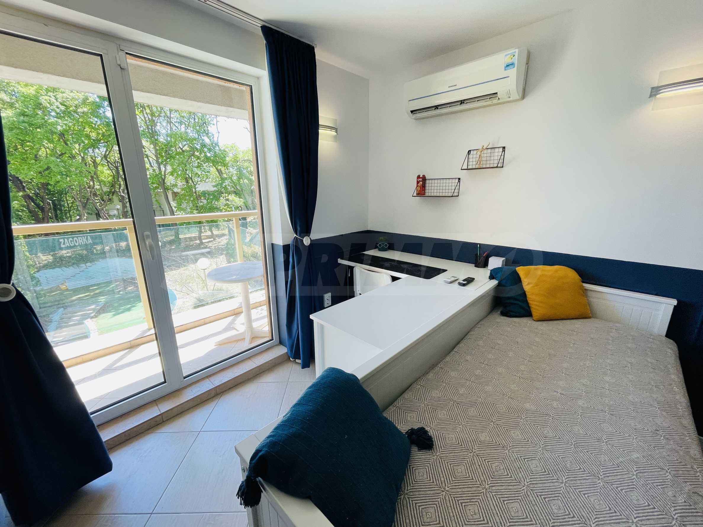 Представляем в аренду уютную и практичную студию в закрытом комплексе с бассейном, на курорте. Золотые пески. Удобное расположение в самом центре курорта, рядом с множеством уютных ресторанов и баров, всего в 20 минутах ходьбы от пляжа.