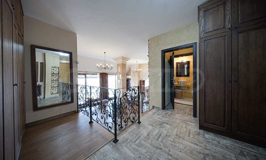 Высота потолков в трех спальнях и кабинете — 2,70 м. Полы в доме выполнены из массива паркета, натурального камня и гранитной плитки.