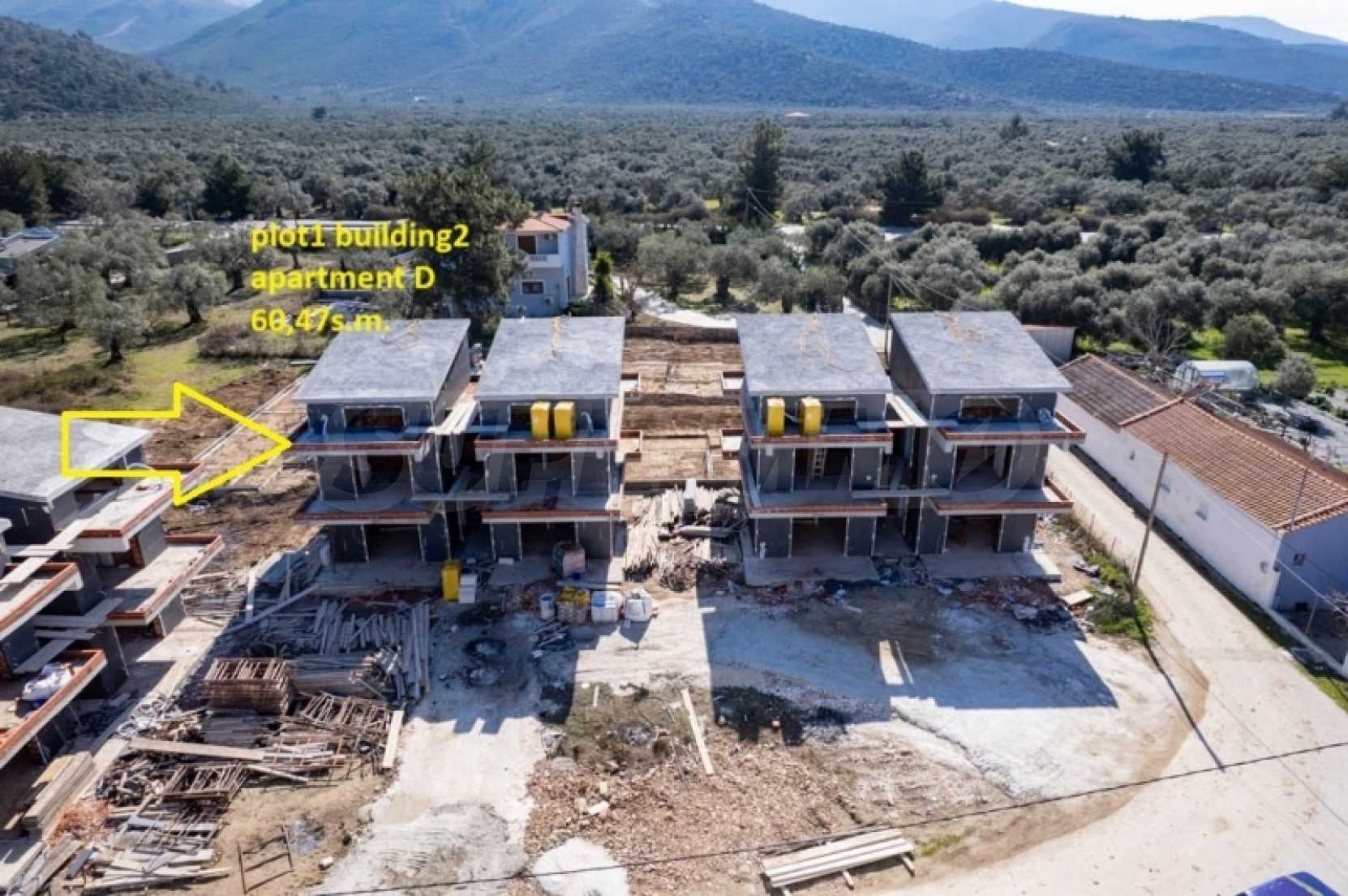 Всего в 130 метрах от прекрасного пляжа Скала Принос. Квартира стоит 60,47 кв. метров.