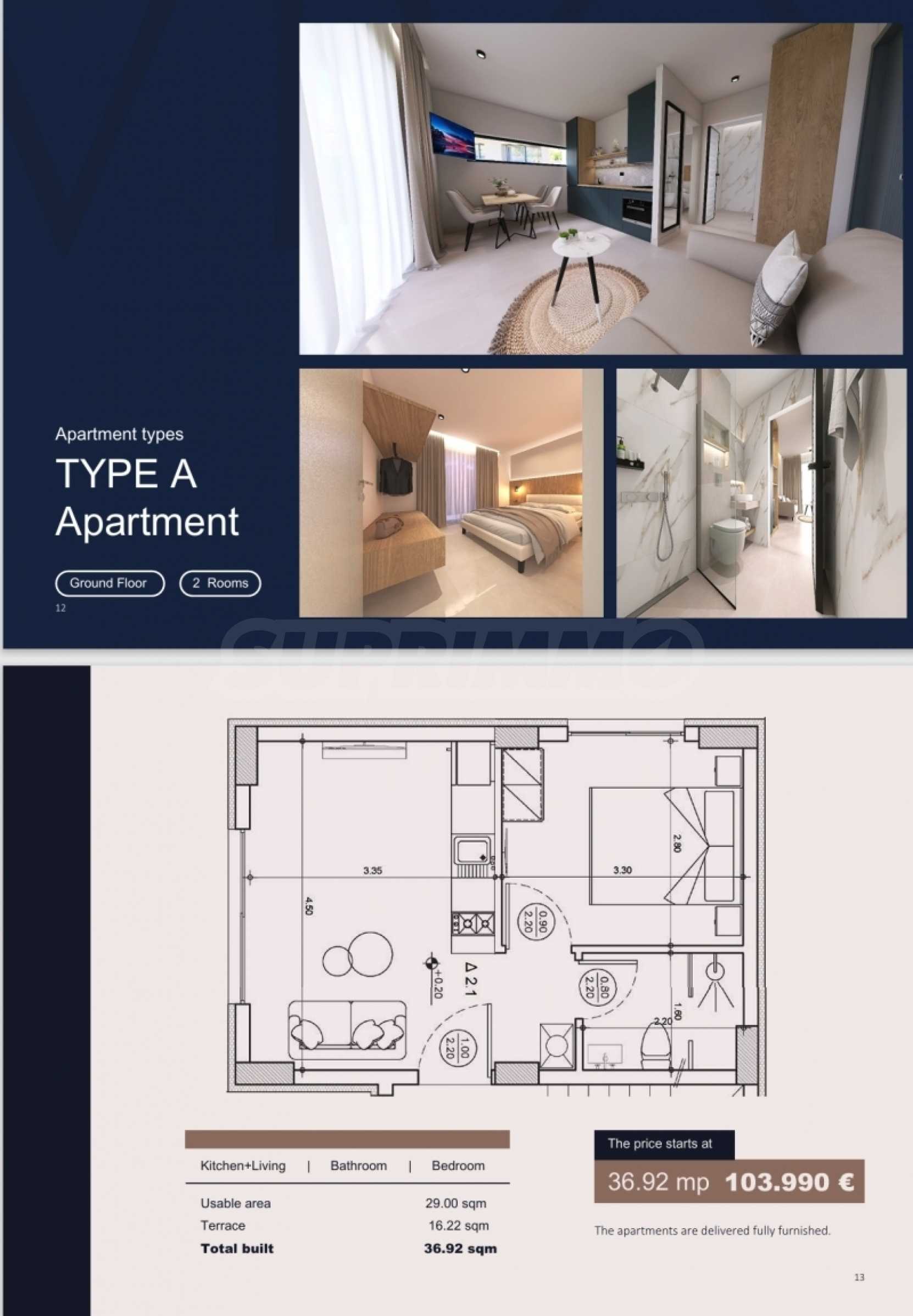Откройте для себя незабываемый отдых или постоянное проживание в этих полностью оборудованных апартаментах на первом этаже, всего в 130 метрах от прекрасного пляжа Скала Принос. Апартаменты имеют 36,92 кв. м. внутреннего пространства с 1 спальней, 1 ванной комнатой, гостиной с кухней и дополнительной террасой площадью 16,22 кв. м., что идеально подходит для моментов релаксации и развлечений на свежем воздухе. Апартаменты будут полностью оборудованы мебелью и электроприборами (кроме матраса и телевизора). Они расположены в изысканном комплексе из 12 апартаментов, предлагающем идеальные условия проживания с доступом к общему бассейну, который обеспечит вам прохладу и расслабление в течение всего лета. Апартаменты оборудованы всем необходимым для комфортного и современного проживания, а их расположение в нескольких минутах ходьбы от магазинов, ресторанов и моря делает их идеальными для любителей пляжа и спокойствия. Апартаменты будут сданы в начале ИЮНЯ 2025 ГОДА. Для показа недвижимости необходимо предъявить удостоверение личности.